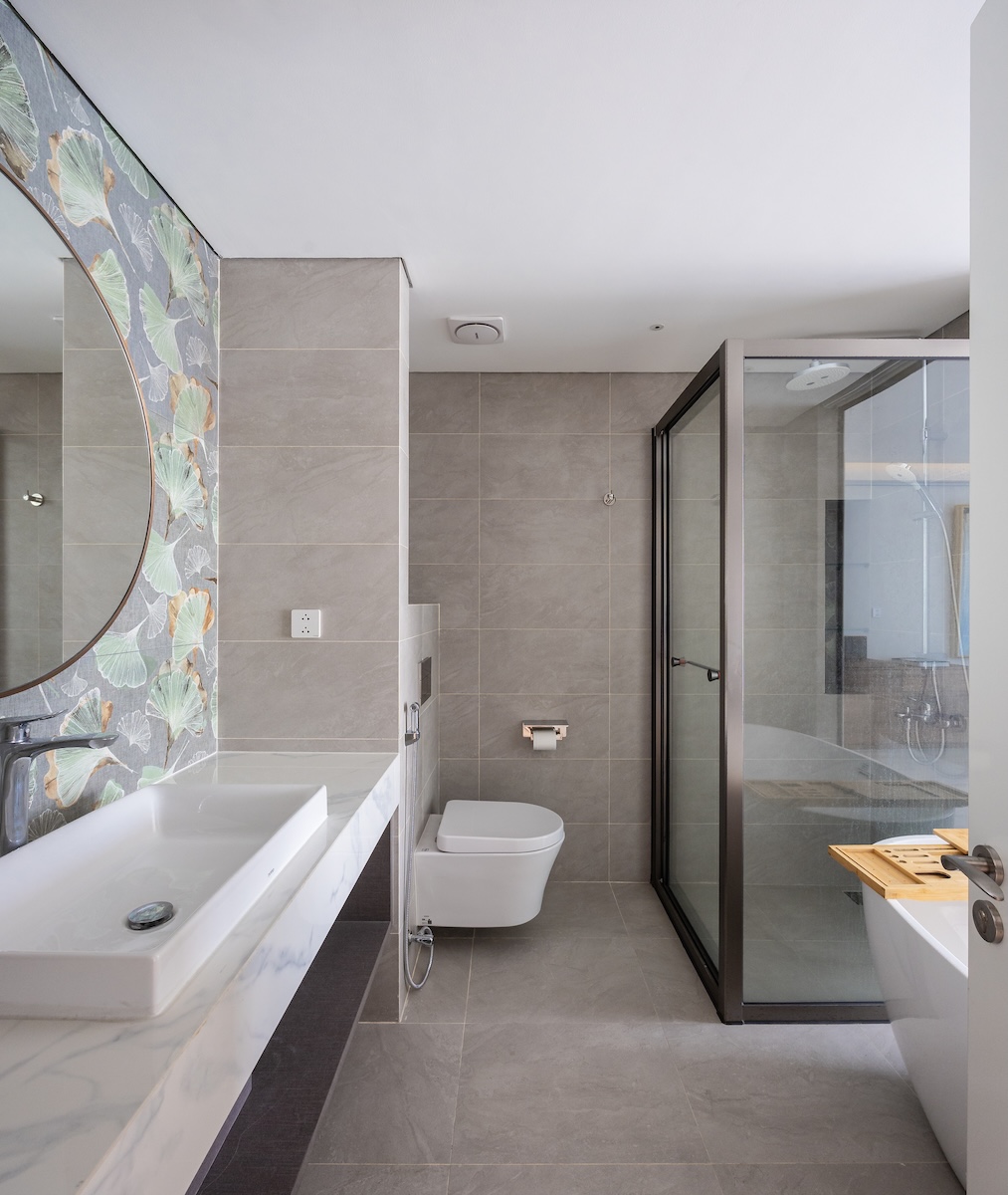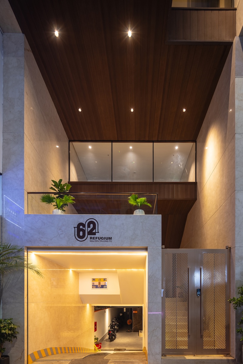 Vật liệu thô mộc và công nghệ bền vững Sự sang trọng của 62 Refugium nằm ở xúc giác chân thực từ đá tự nhiên, gỗ thịt, Terrazzo và tường hiệu ứng. Kết hợp cùng hệ thống điều hòa trung tâm và chiếu sáng thông minh, công trình mang lại trải nghiệm sống mộc mạc nhưng tiện nghi và thân thiện với môi trường.