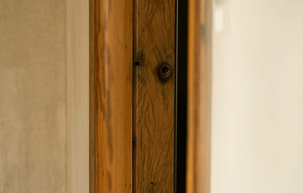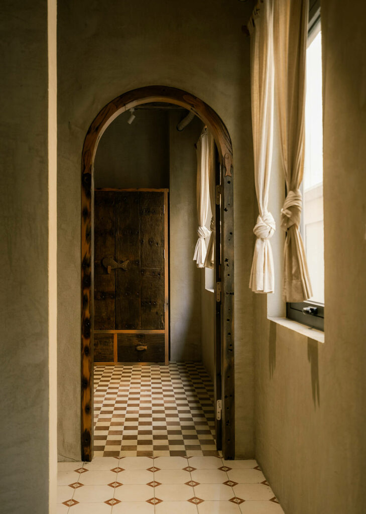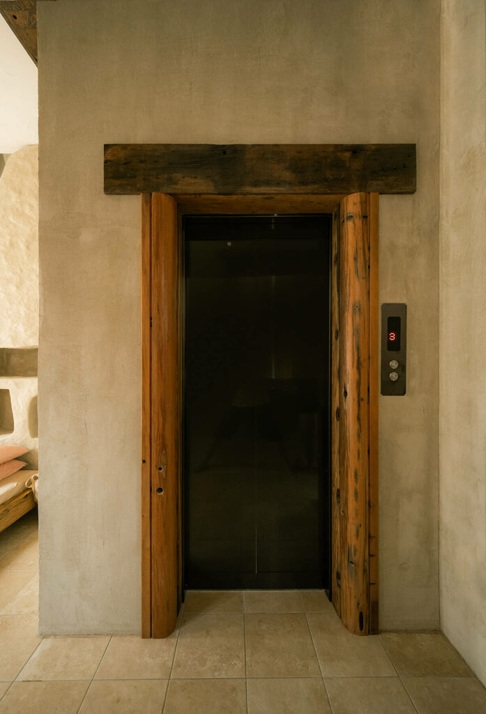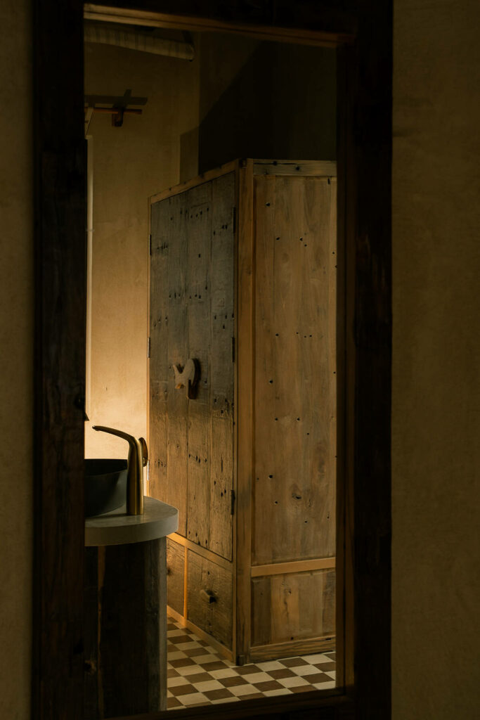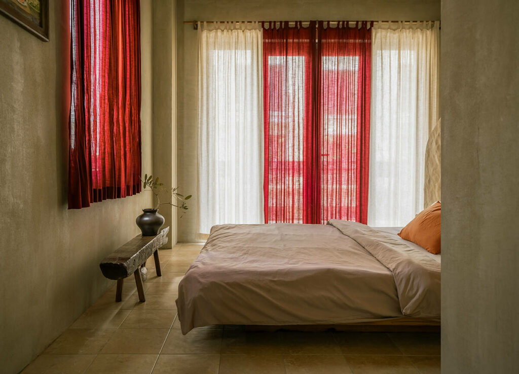 Không dừng lại ở vỏ kiến trúc, phần nội thất tiếp tục kể một chương khác của công trình. Gỗ Táu được tái chế từ những con tàu cũ, trở thành chất liệu chính cho hầu hết vật dụng. Đây vừa là giải pháp “xanh”, mà là sự tái sinh có chủ đích: những vết xước, dấu đinh hay thớ gỗ già đều là một phần của ký ức vật liệu, mang đến chiều sâu lịch sử cho một không gian sống đương đại. Kết hợp cùng vải lanh thủ công nhuộm tự nhiên và ánh sáng hắt từ những chiếc đèn được chế tác riêng, tổng thể nội thất tạo ra một trạng thái xúc cảm ấm cúng và thật sự yên tĩnh.