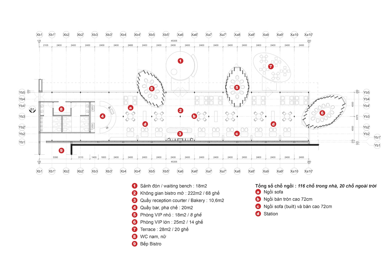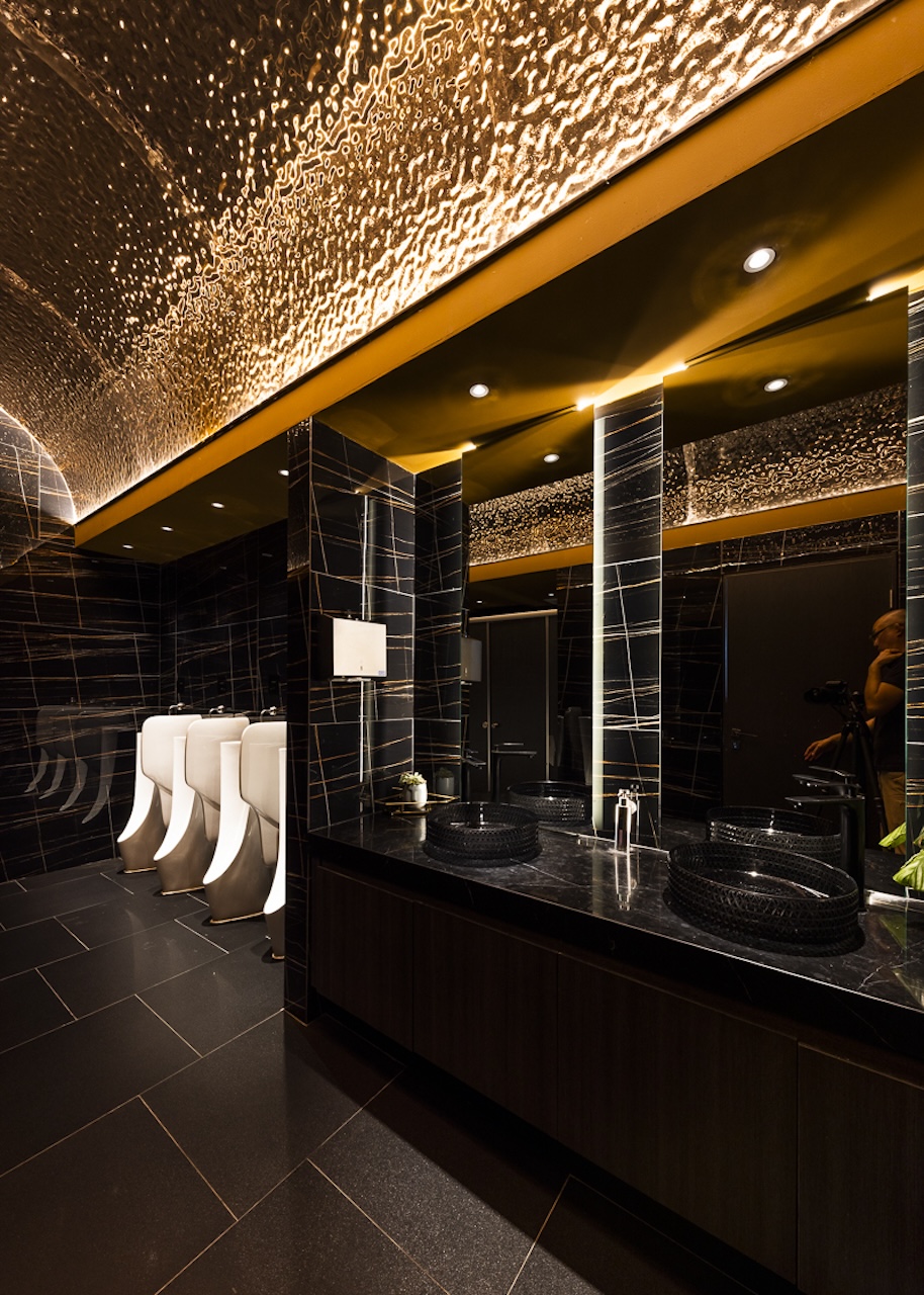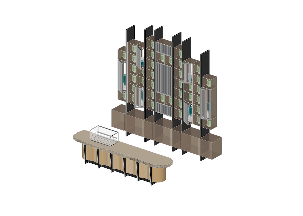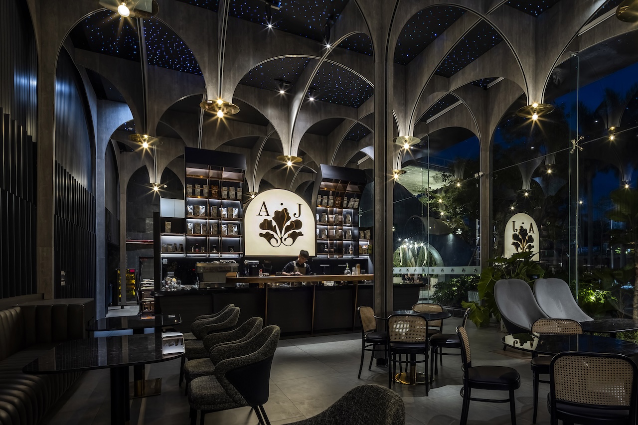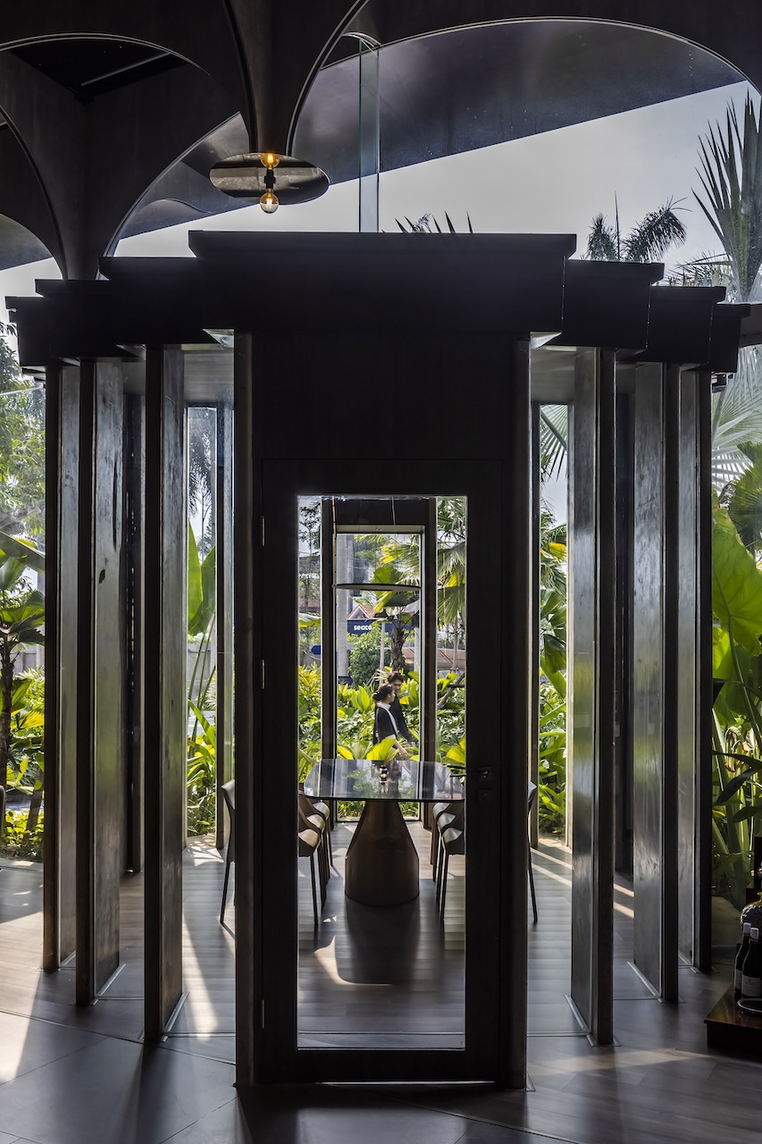 Sự giàu có về không gian của A.Jardin còn được củng cố bởi sự hiện diện của ba khối chức năng: phòng VIP, quầy Bar và khu vực Restroom. Mỗi khối tích đều được thiết kế như một thực thể điêu khắc riêng biệt, gia tăng tính trải nghiệm và chiều sâu cho tổng thể mặt bằng. Dù sử dụng vật liệu công nghiệp chiếm tỷ trọng lớn, nhưng thông qua sự tính toán chi tiết và bàn tay khéo léo của thợ thủ công bản địa, mỗi điểm tiếp xúc đều mang lại cảm giác cao cấp và tinh xảo.