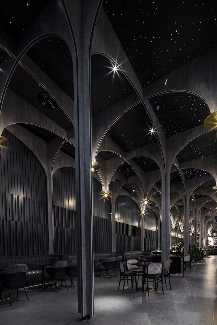 Điểm nhấn kiến trúc của dự án là việc tạo lập một cấu trúc nội thất phỏng sinh (biomorphism) từ những vật liệu công nghiệp thuần túy.