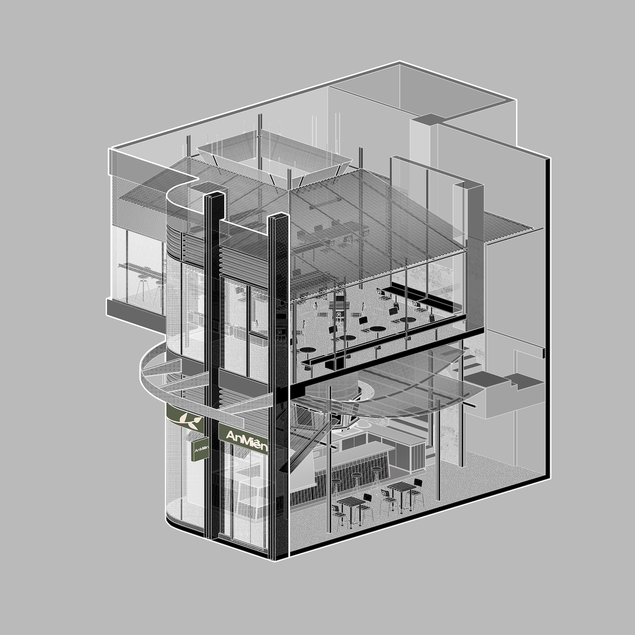 Công trình vì vậy là một nỗ lực tìm kiếm sự cân bằng: giữa thô và tinh, giữa cứng và mềm, giữa công nghiệp và cảm xúc. Từ những vật liệu tưởng chừng khô cứng, chúng tôi mong muốn tạo nên những chất cảm hấp dẫn, gần gũi và đủ tinh tế để người sử dụng có thể cảm nhận được chiều sâu của không gian theo cách rất riêng.