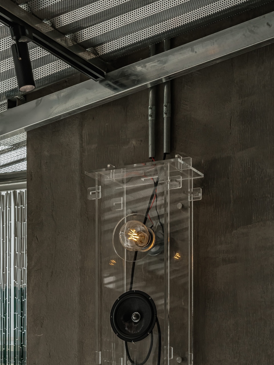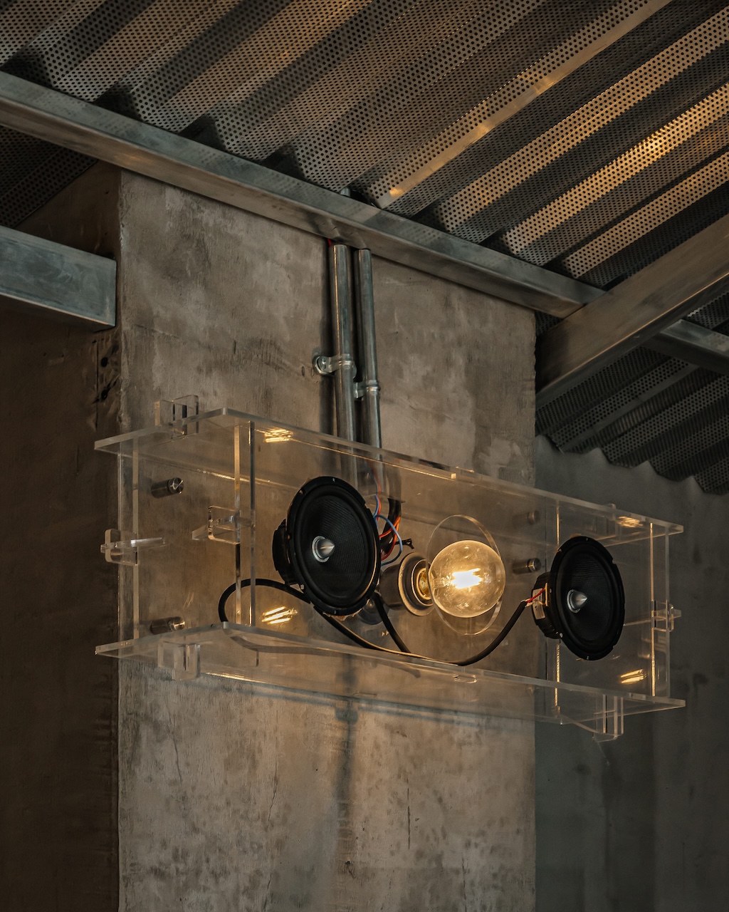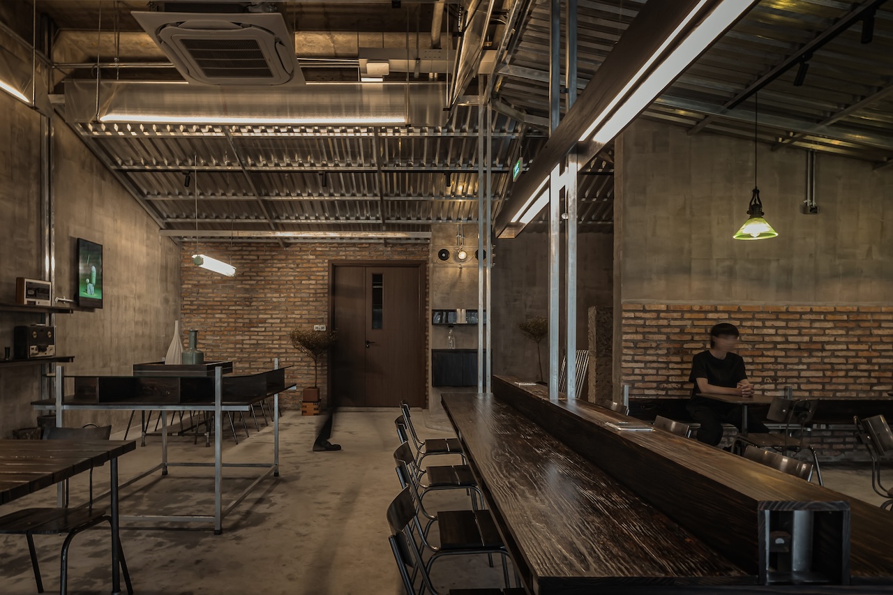 Công trình được tiếp cận như một sự thử nghiệm về chất cảm của các vật liệu mang tính công nghiệp và thô mộc. Phương án thiết kế được phát triển từ những cảm nhận cá nhân của chúng tôi đối với bê tông, sắt, thép và gỗ — những vật liệu quen thuộc, thường gắn với cảm giác nặng, cứng và khô. Thay vì tìm cách che giấu hay làm mềm chúng bằng các lớp hoàn thiện, công trình lựa chọn việc bộc lộ trực tiếp chất liệu, để các bề mặt, vết ghép và dấu vết thi công trở thành một phần của trải nghiệm không gian.