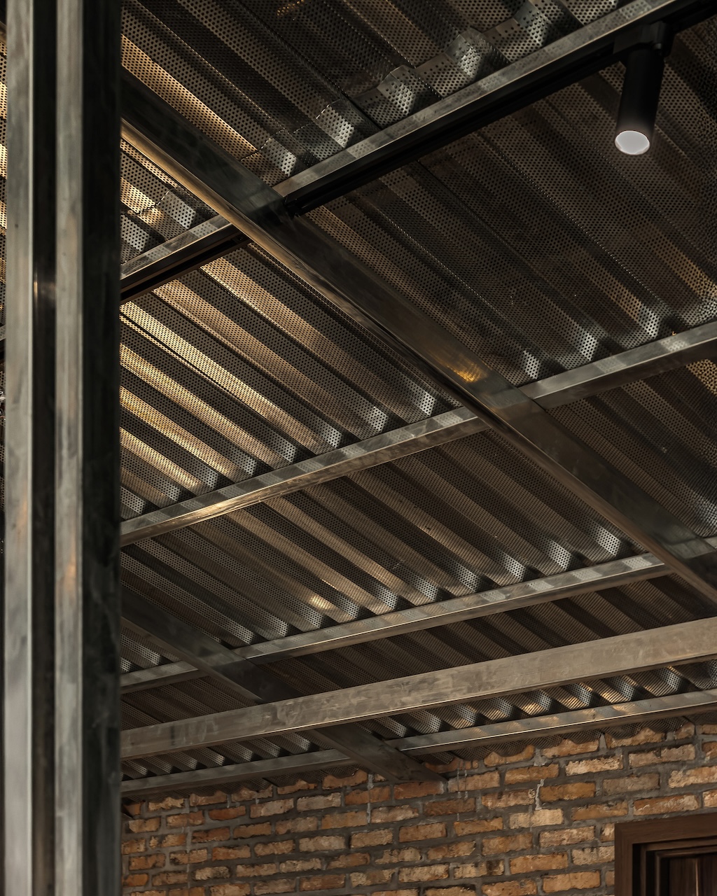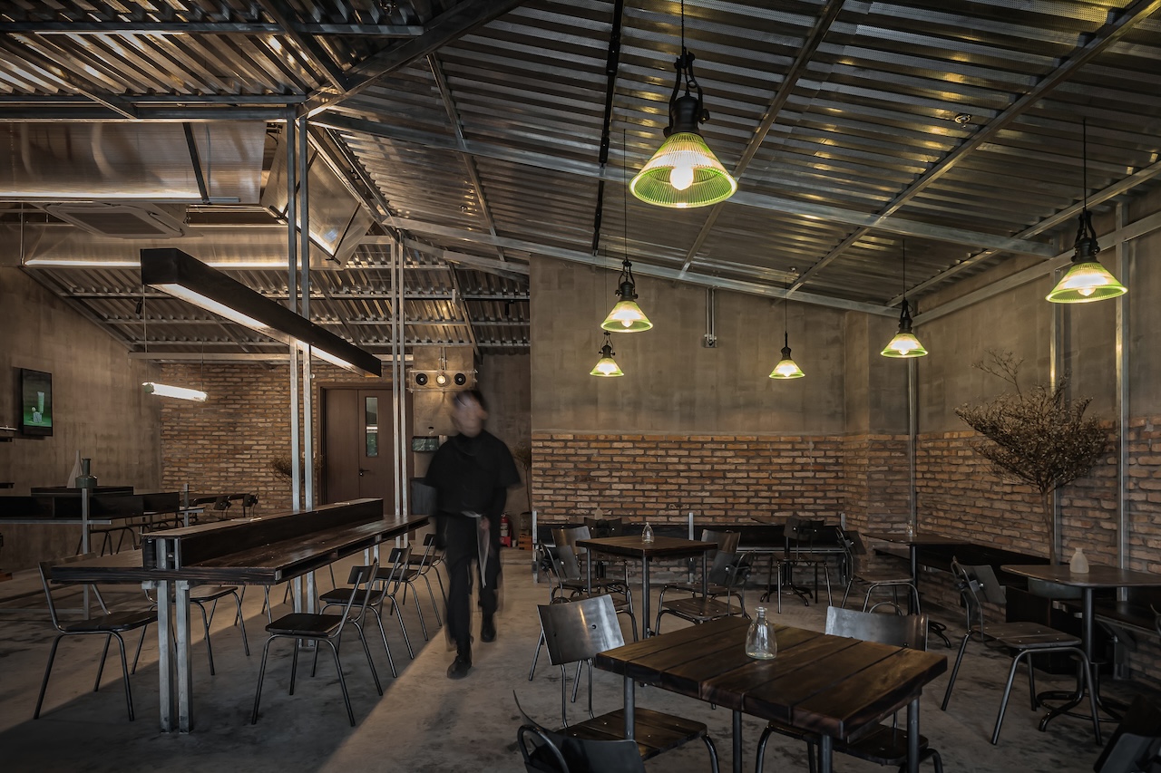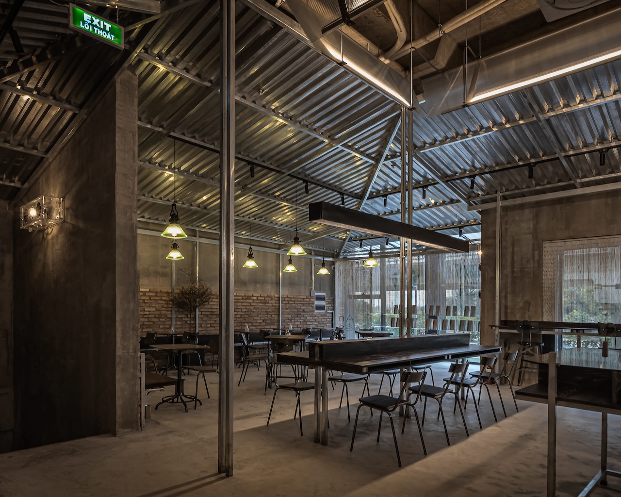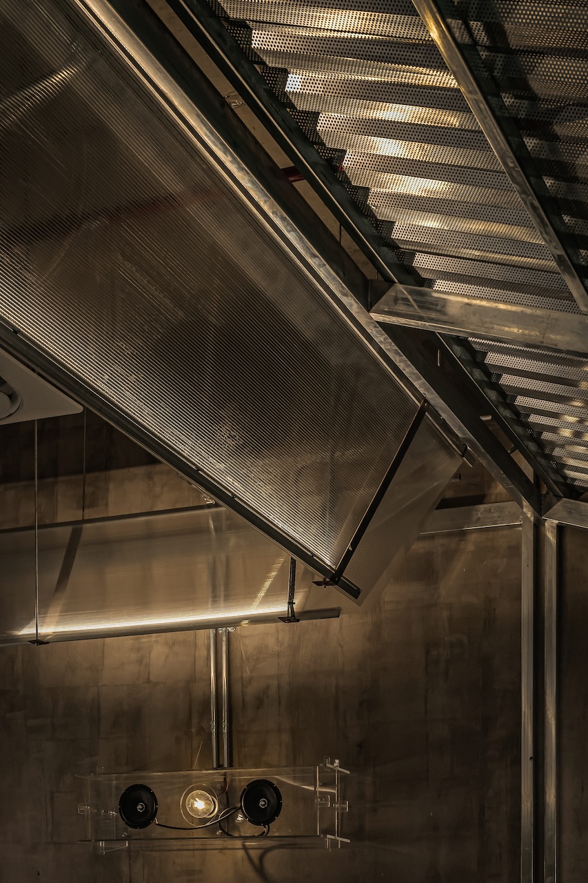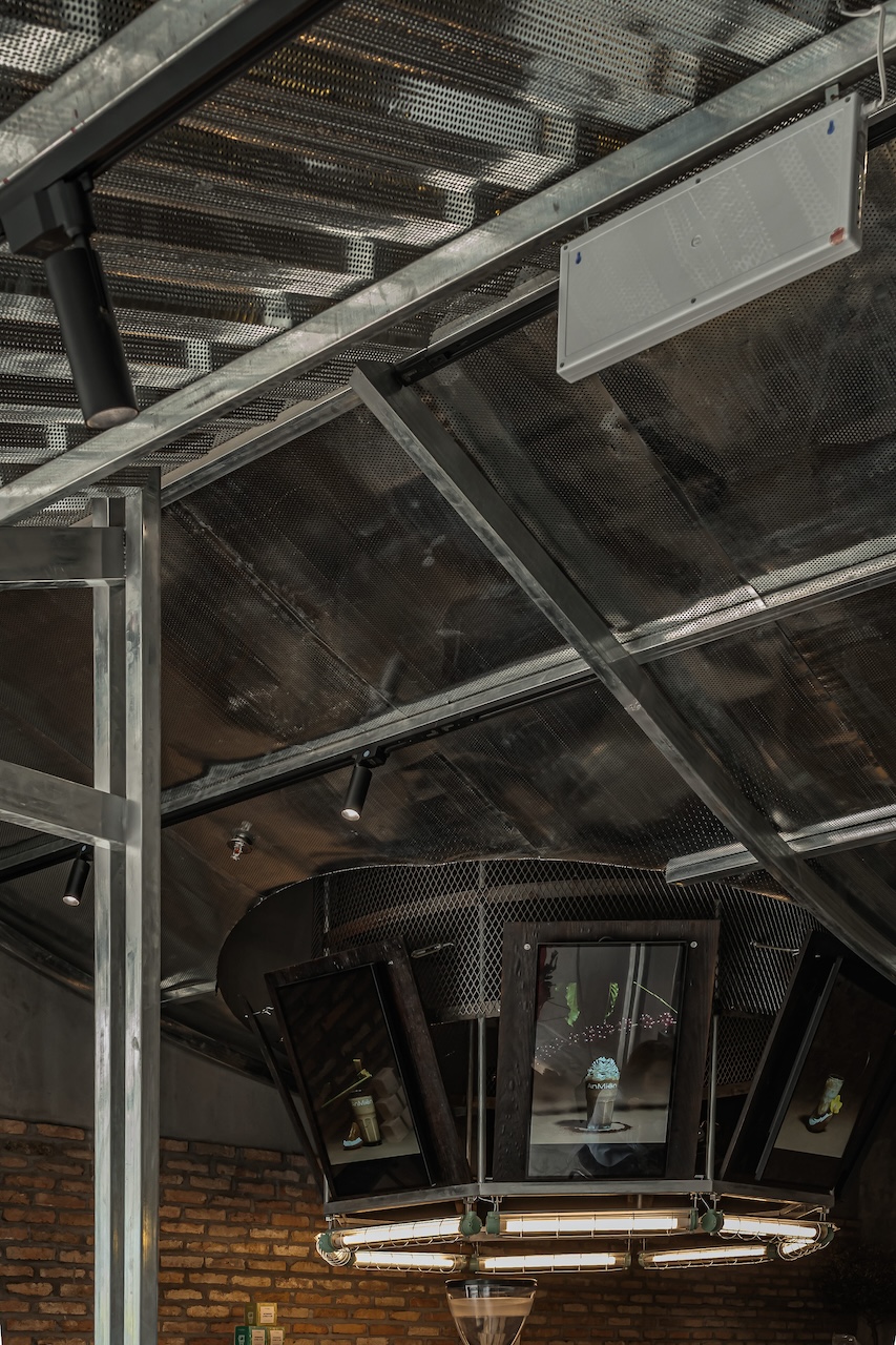 Trong đó, tôn kẽm được sử dụng như một ngôn ngữ vật liệu chủ đạo. Với khả năng phản chiếu ánh sáng không hoàn toàn, bề mặt tôn tạo ra những lớp ánh sáng lấp lửng, biến đổi theo thời điểm trong ngày và theo chuyển động của người sử dụng. Những phản xạ này giúp không gian trở nên sinh động hơn, đồng thời làm giảm đi cảm giác nặng nề vốn có của các vật liệu công nghiệp.