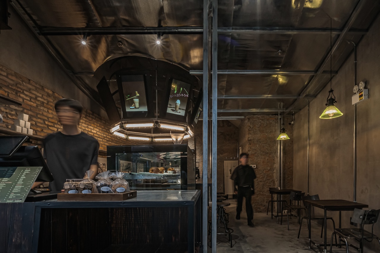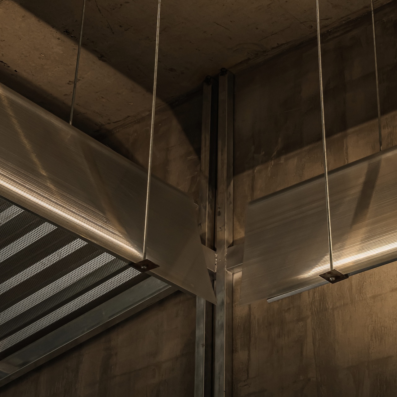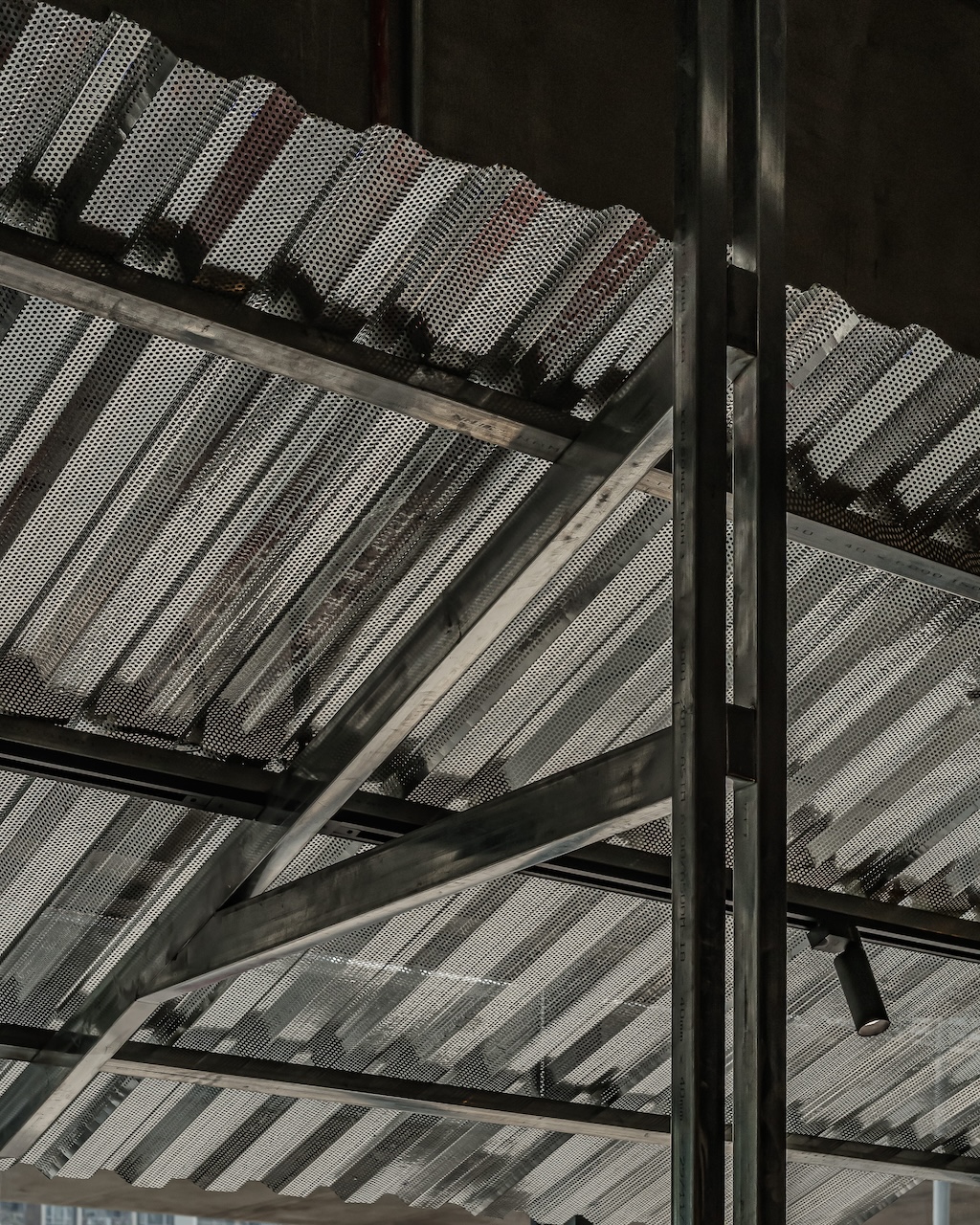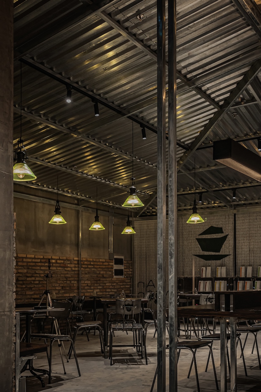 Trong đó, tôn kẽm được sử dụng như một ngôn ngữ vật liệu chủ đạo. Với khả năng phản chiếu ánh sáng không hoàn toàn, bề mặt tôn tạo ra những lớp ánh sáng lấp lửng, biến đổi theo thời điểm trong ngày và theo chuyển động của người sử dụng. Những phản xạ này giúp không gian trở nên sinh động hơn, đồng thời làm giảm đi cảm giác nặng nề vốn có của các vật liệu công nghiệp.