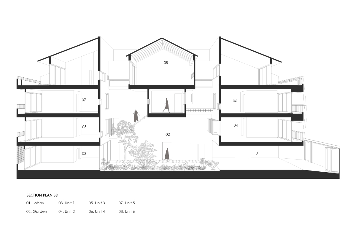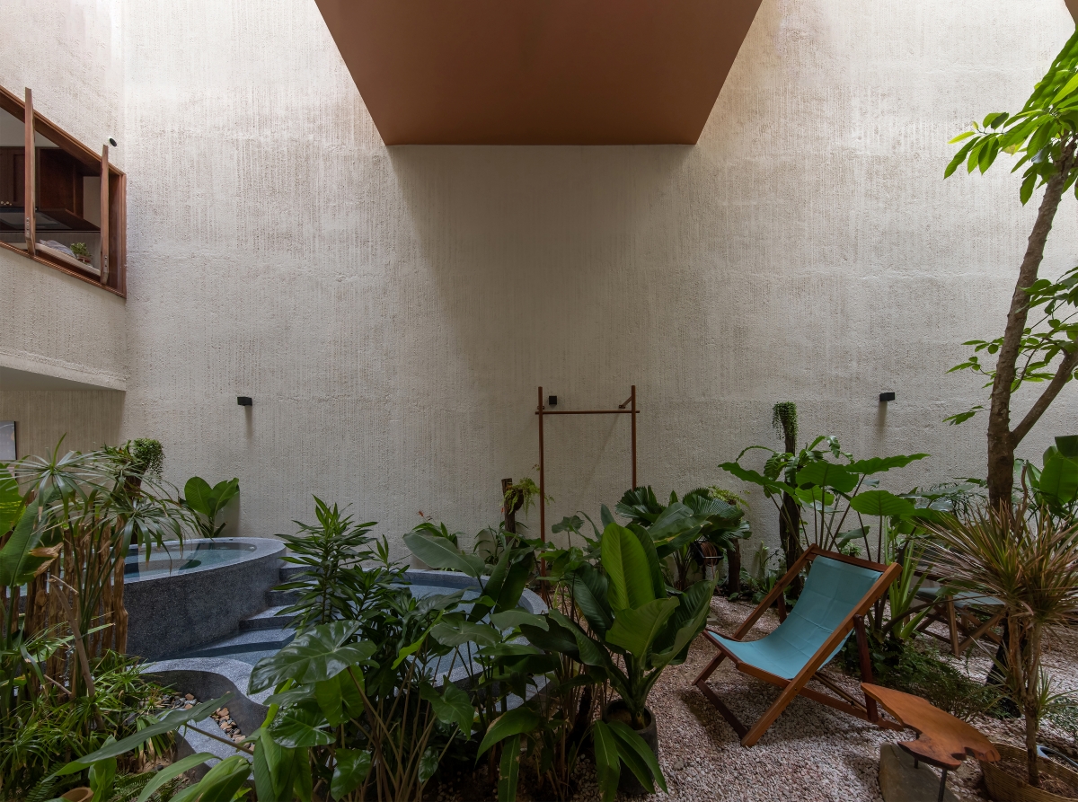 Lấy cảm hứng từ bản chất của Kiến trúc nhiệt đới truyền thống, công trình đã tích hợp các không gian chuyển tiếp làm mờ ranh giới giữa trong nhà và ngoài trời. Về cốt lõi, thiết kế xoay quanh một sân trong, một ốc đảo xanh được bao quanh bởi các không gian chức năng hướng đến cây xanh tươi tốt.