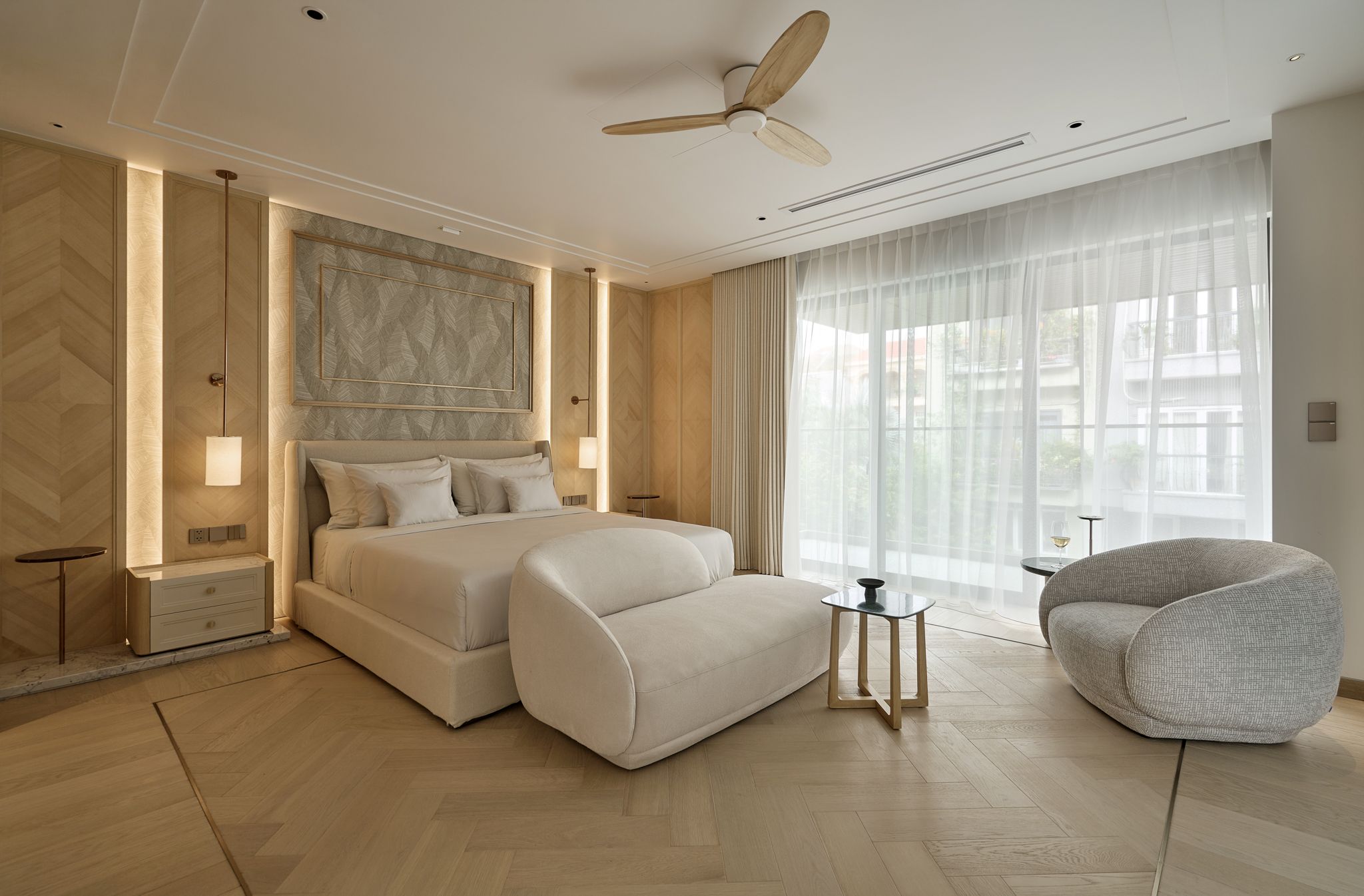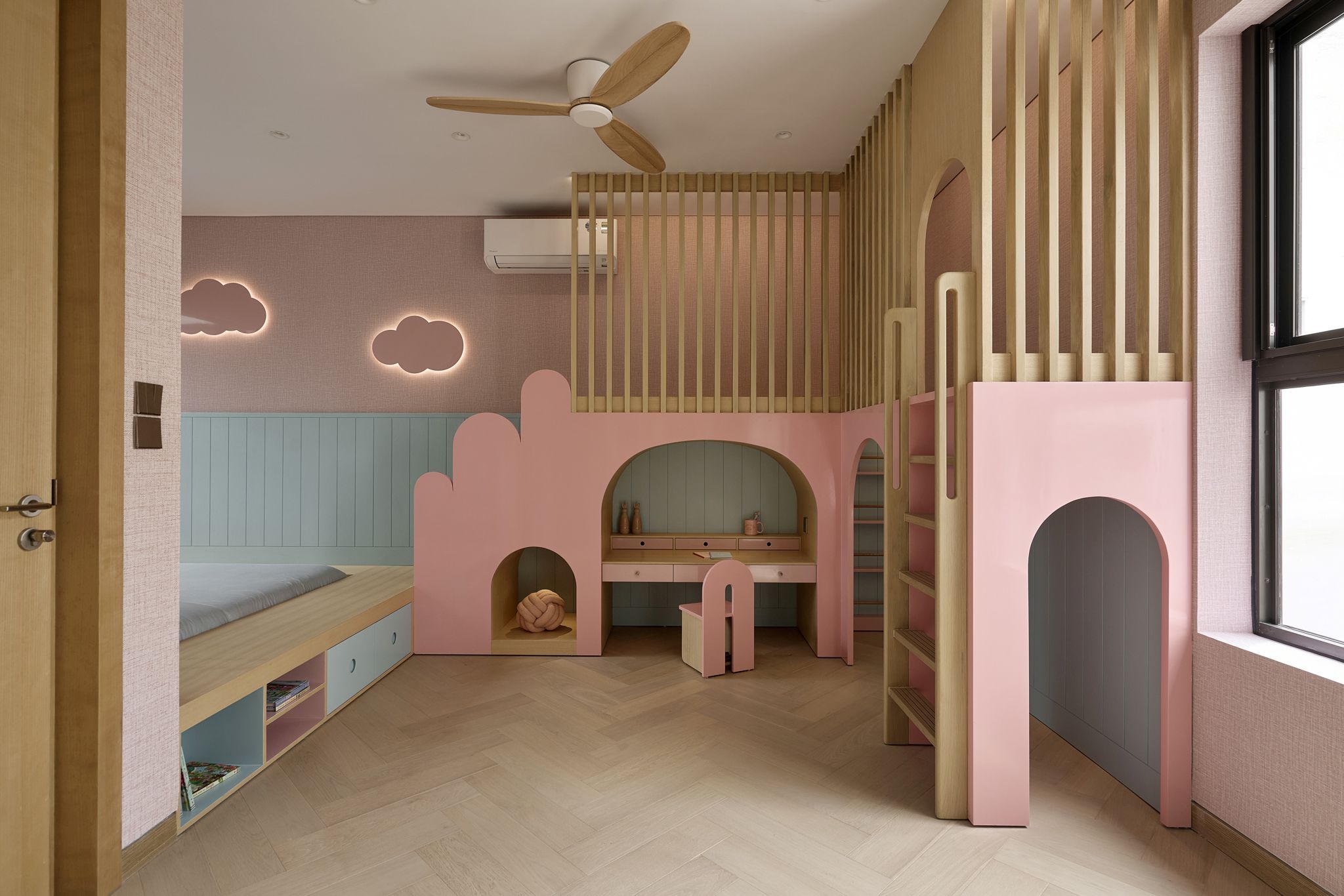 Phòng ngủ chính mang vẻ tinh tế của một phòng suite khách sạn boutique. Tông màu trung tính của gỗ làm nổi bật chất liệu và kết cấu tự nhiên. Phòng ngủ màu hồng pastel của Candy được tích hợp đầy đủ các tiện ích vui chơi và sáng tạo phù hợp với độ tuổi bé. Phòng gym và sauna tại tầng cao nhất ngập tràn ánh sáng tự nhiên, biến việc tập luyện thành niềm vui chăm sóc bản thân.