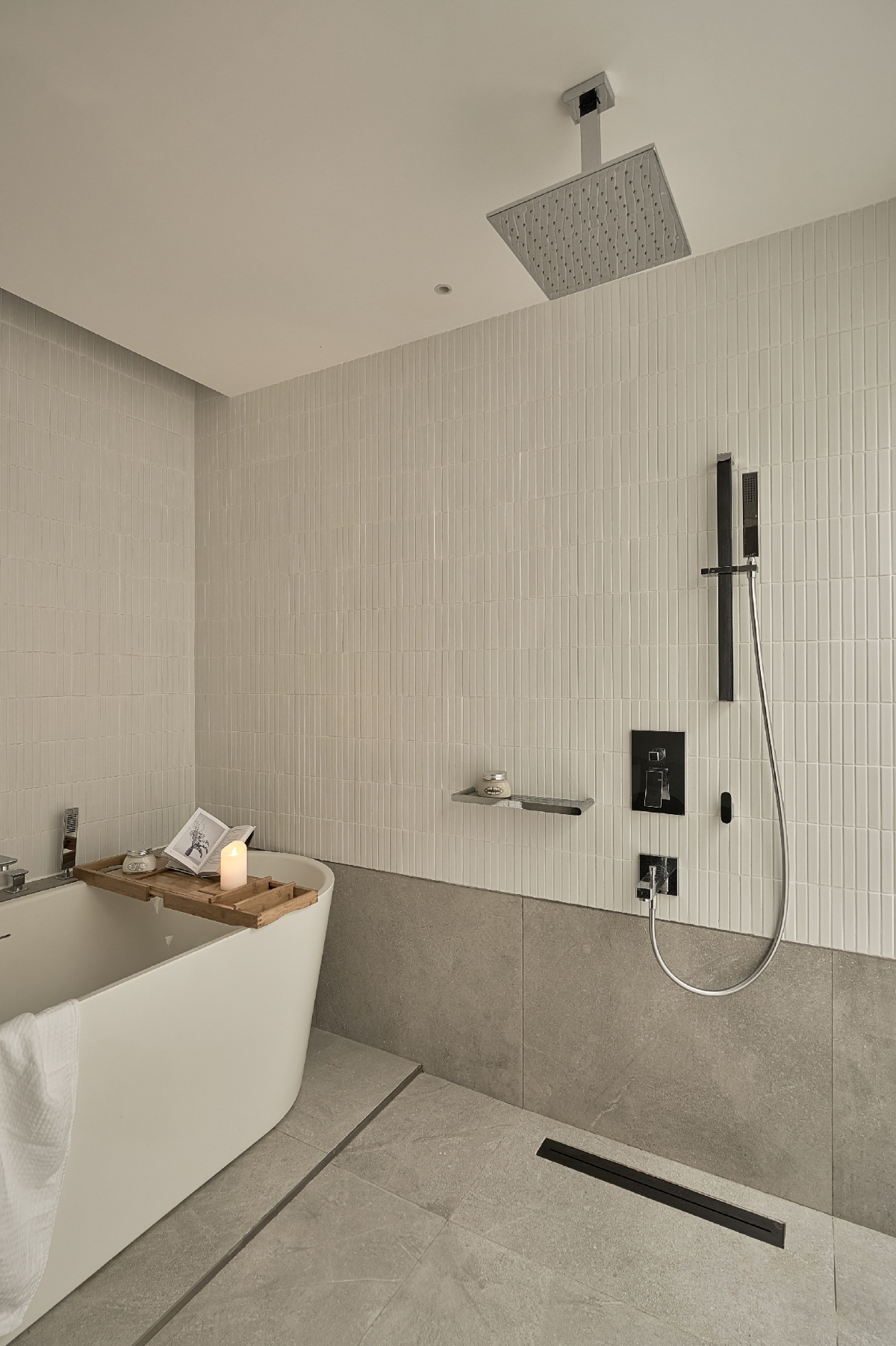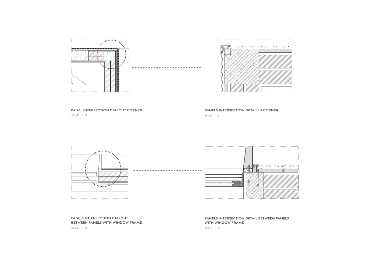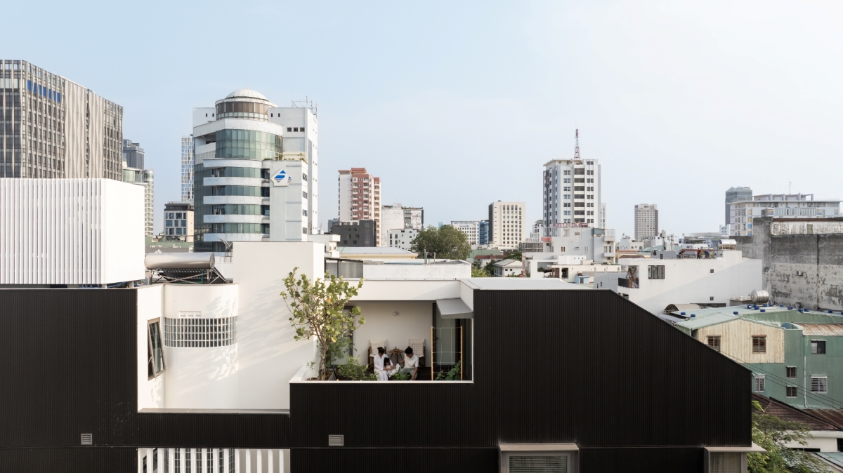 Ngôi nhà có mặt đứng chính hướng Tây – hướng chịu tác động lớn của bức xạ nhiệt trong điều kiện khí hậu Việt Nam. Do đó, các giải pháp chống nóng và chống thấm được ưu tiên hàng đầu. Công trình sử dụng hệ tấm ốp Nichiha đến từ Nhật Bản, trở thành một trong những công trình đầu tiên tại Việt Nam ứng dụng vật liệu này. Với cấu tạo đặc biệt, hệ ốp giúp bảo vệ bề mặt tường khỏi tác động của thời tiết, giảm bức xạ nhiệt, đồng thời tạo lớp không khí đệm phía sau, nâng cao hiệu quả cách nhiệt và đảm bảo tiện nghi bền vững cho ngôi nhà theo thời gian.