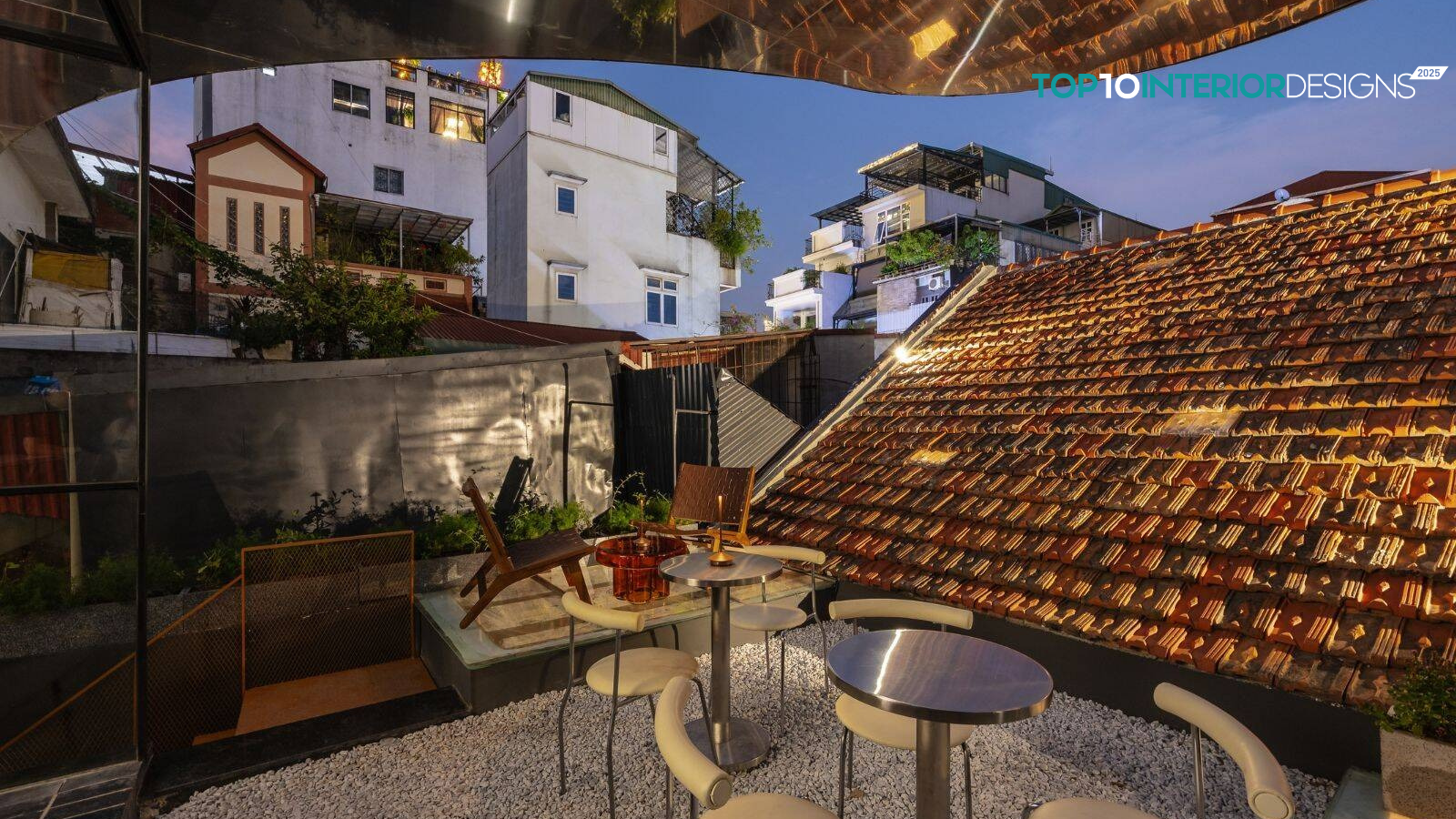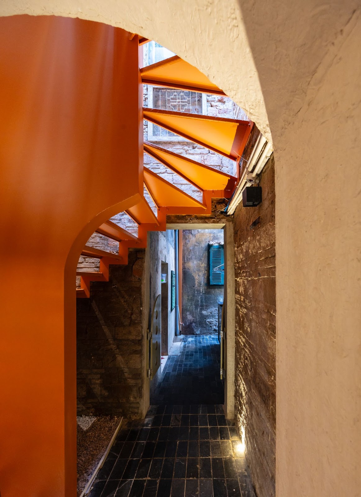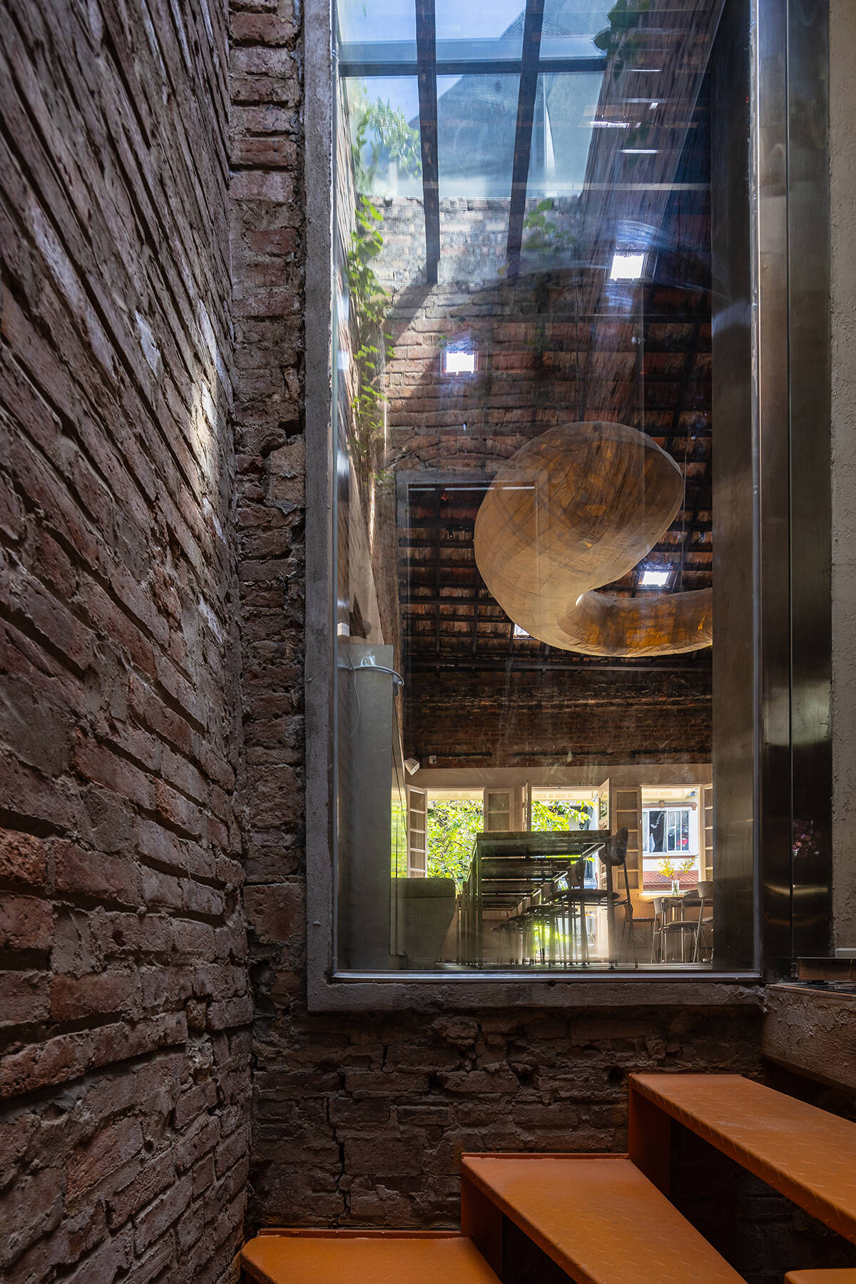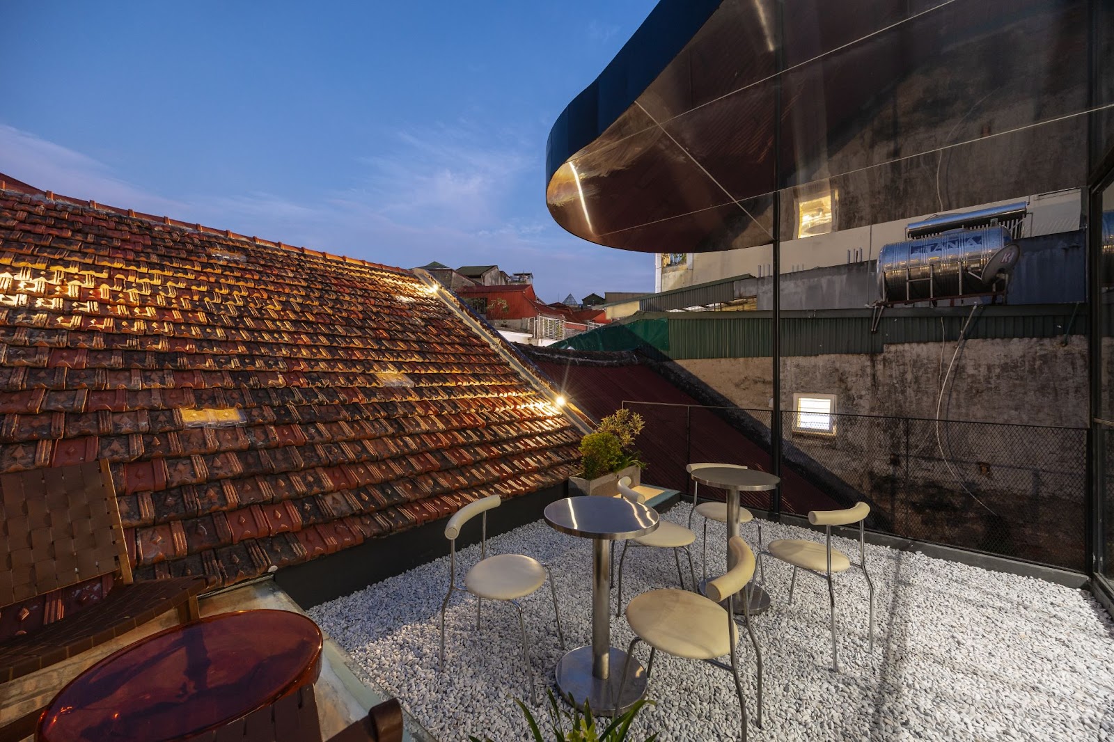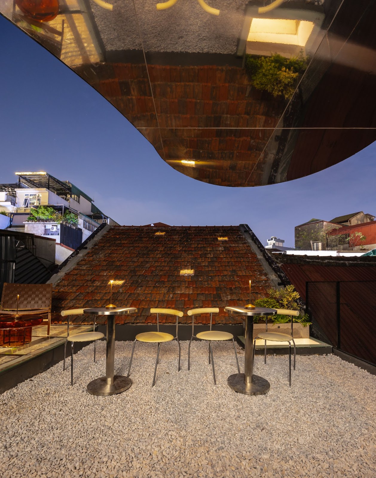 Quầy bar nhỏ ẩn mình dưới mái ngói cổ trở thành điểm đến đầy mê hoặc. Những viên ngói lợp mái ban đầu được phục hồi và thay thế bằng những viên ngói mới được lựa chọn cẩn thận để hòa hợp với những viên ngói cũ, giữ nguyên cảm giác hoài cổ của tòa nhà.