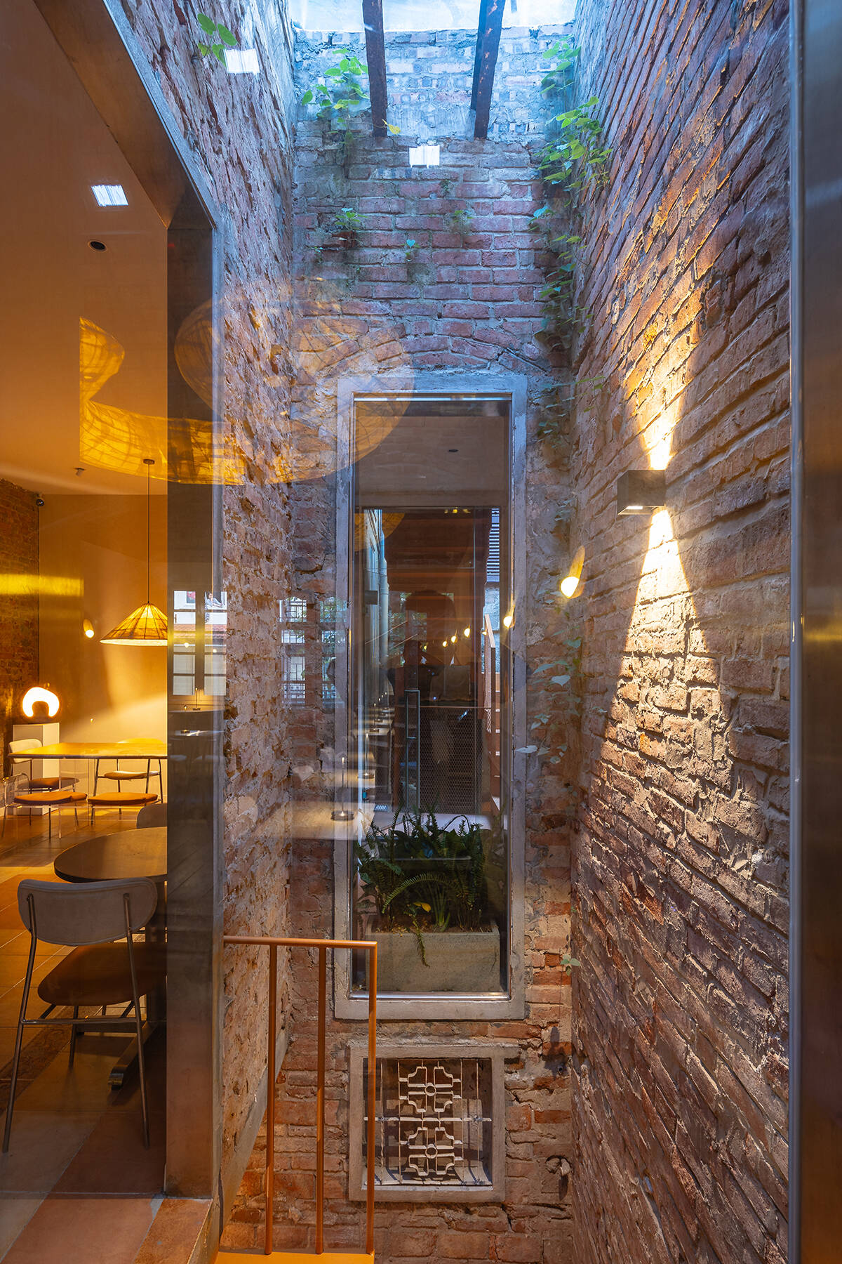 Hơn một thế kỷ tồn tại, ngôi nhà trên phố hàng Da đã trải qua bao thăng trầm từ những biến động lịch sử đến nhiều lần chuyển giao quyền sở hữu, tòa nhà đã xuống cấp. Một con hẻm hẹp chạy qua trung tâm tầng trệt, chỉ rộng khoảng 60cm, chia mặt tiền của tòa nhà thành hai phần riêng biệt. Do tòa nhà thuộc quyền sở hữu chung nên con hẻm này không thể bị phá bỏ, gây ra thách thức trong việc kết nối các không gian bên trong và tạo điểm nhấn kiến trúc. Thế nhưng, chính những “vết sẹo” ấy lại trở thành cảm hứng để kiến tạo nên một Cultra Taproom mới đầy tinh tế.