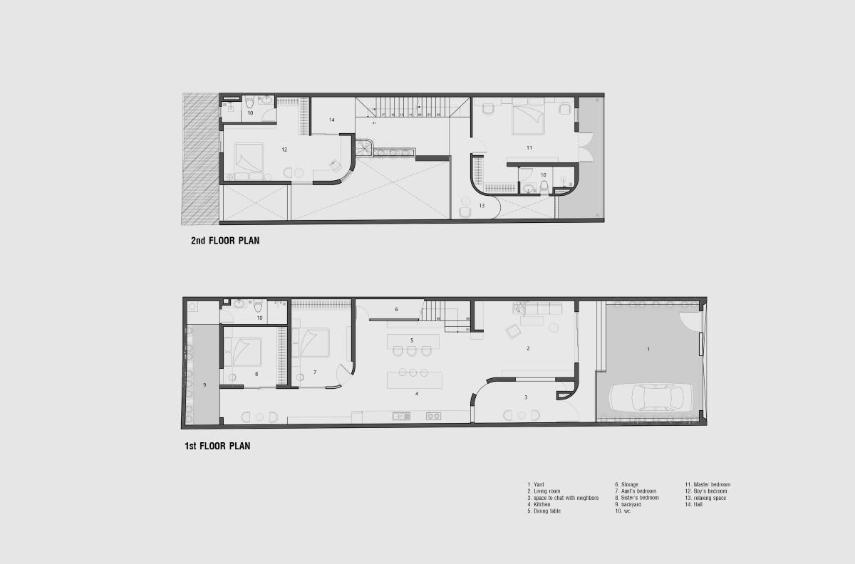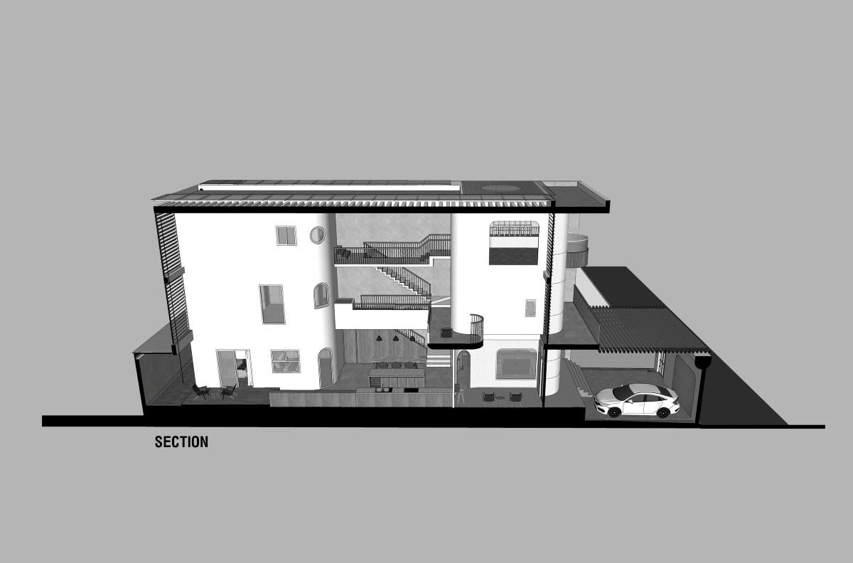 Ngôi nhà được xây dựng tại TP. Hồ Chí Minh, với thiết kế cho gia đình lớn có ba thế hệ. Tầng trệt bố trí hai phòng ngủ liền kề cho các chị em gái lớn tuổi của gia chủ – những người sẽ sống cùng, chăm sóc lẫn nhau. Tầng trên là ba phòng ngủ dành cho vợ chồng và con cái. Sự phân chia công năng vừa hợp lý thể hiện tinh thần gắn bó, đoàn kết trong không gian sống gia đình.