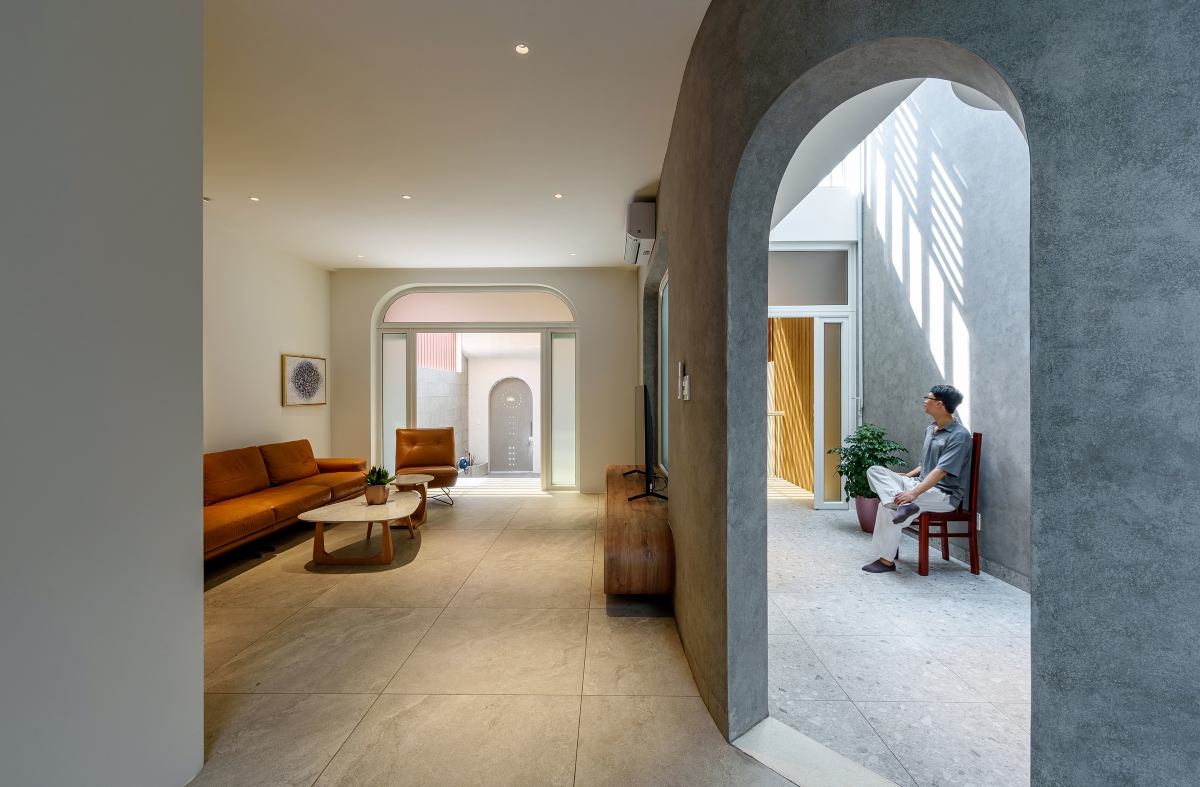 Sau nhiều năm sinh sống trong căn hộ cao tầng của một chung cư cao cấp, gia chủ của Dinh House – một người đã bước qua tuổi trung niên – lựa chọn rời bỏ sự tiện nghi vốn quen thuộc để trở về khu phố cũ nơi từng gắn bó thời trẻ. Ở ngưỡng cửa của tuổi già, giá trị của sự kết nối – với gia đình, với hàng xóm – trở nên quan trọng hơn bao giờ hết. Dinh House ra đời như một hiện thân cho mong muốn đó: một không gian sống yên bình, chan hòa ánh sáng, nơi con người được sống trọn vẹn với hiện tại, được chiêm nghiệm và sẻ chia bên người thân yêu.