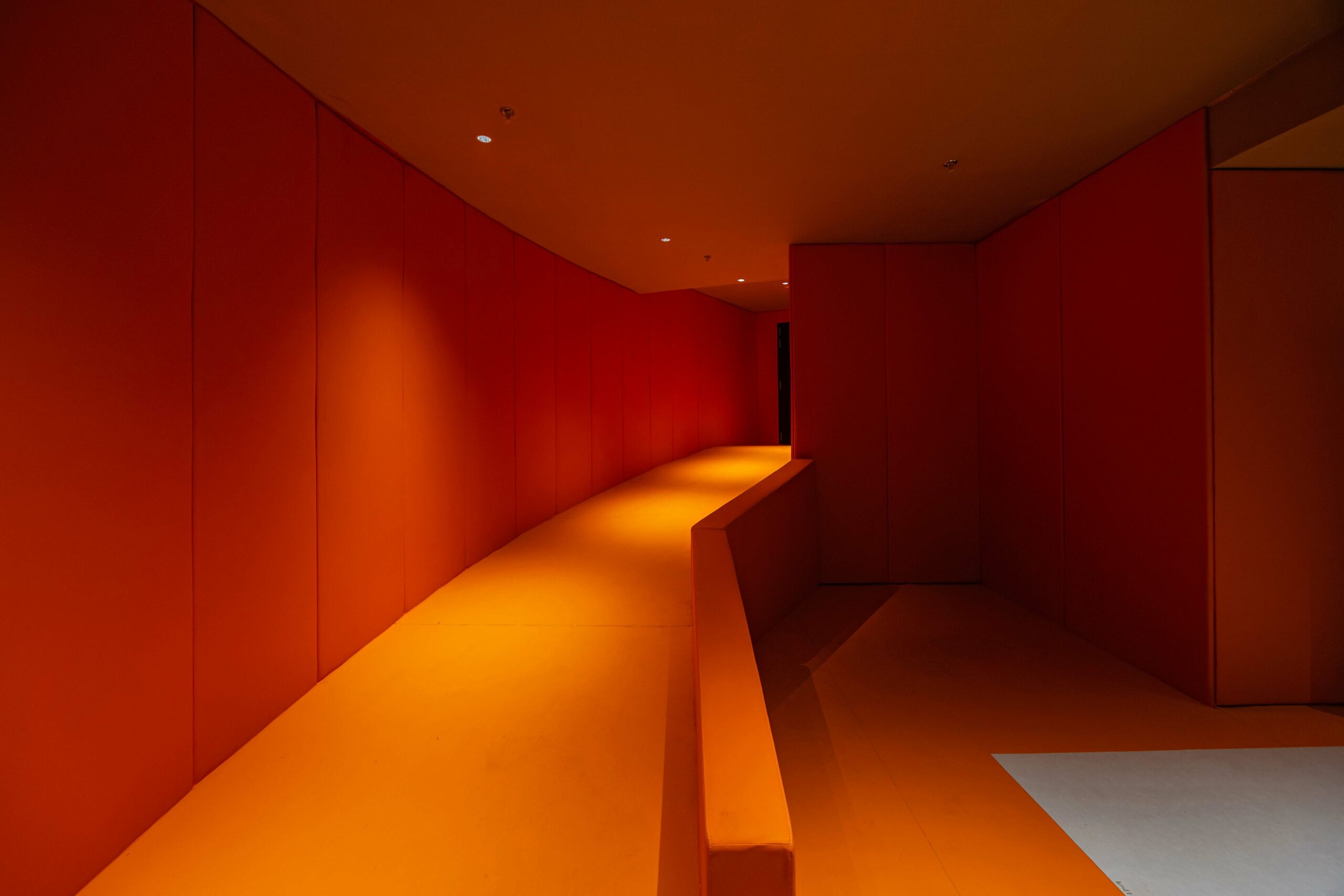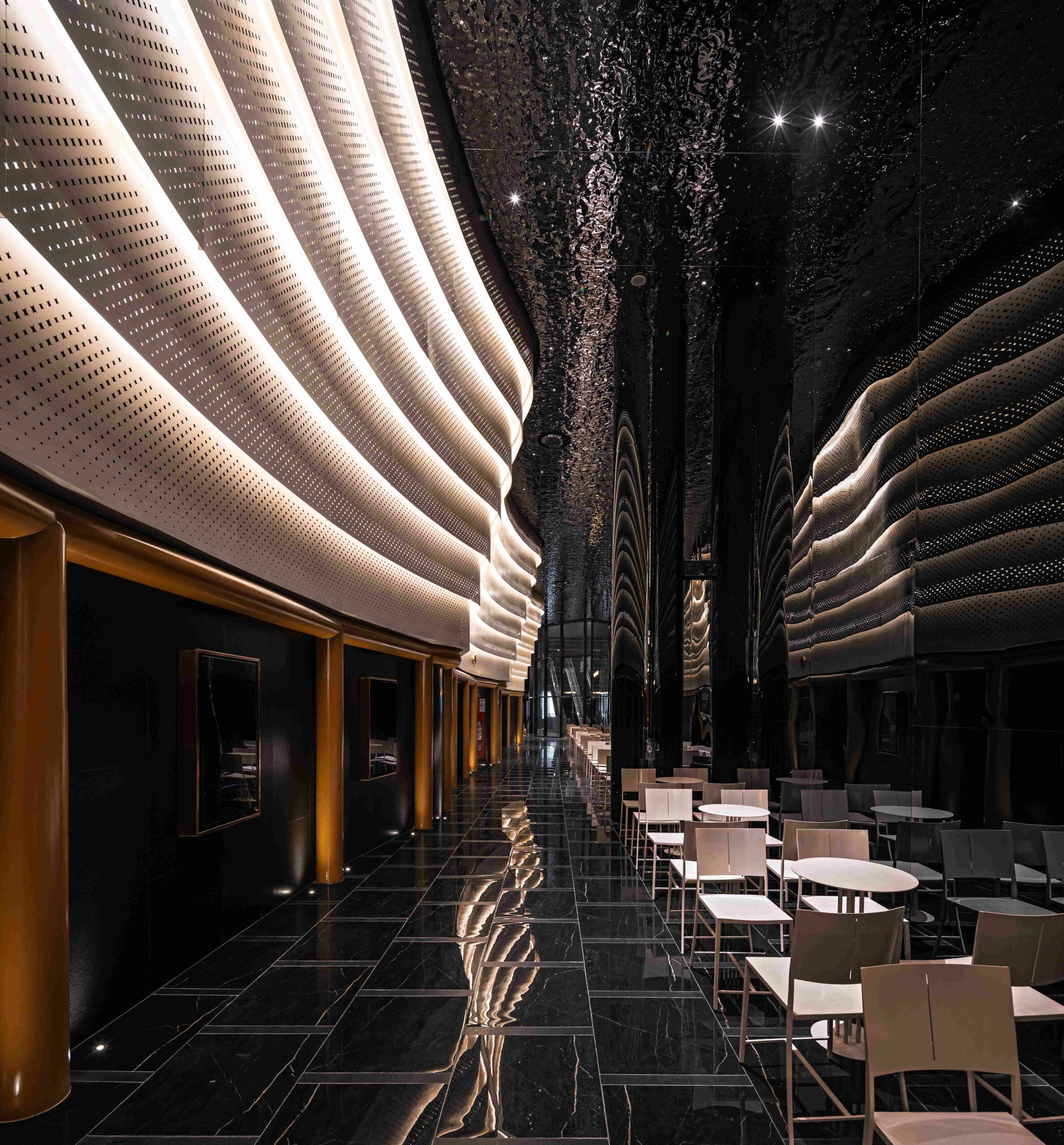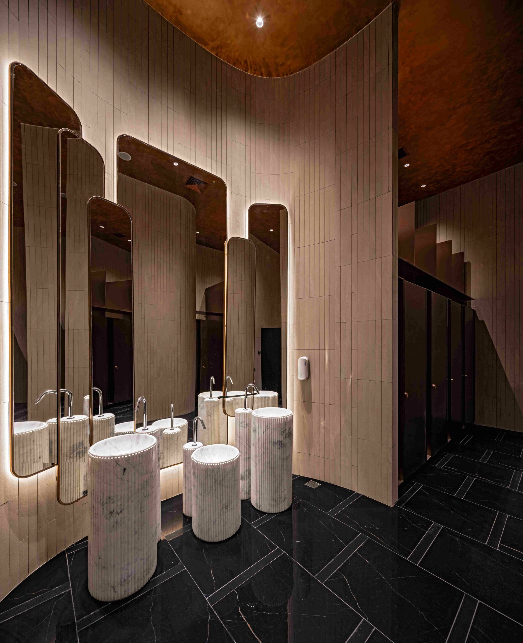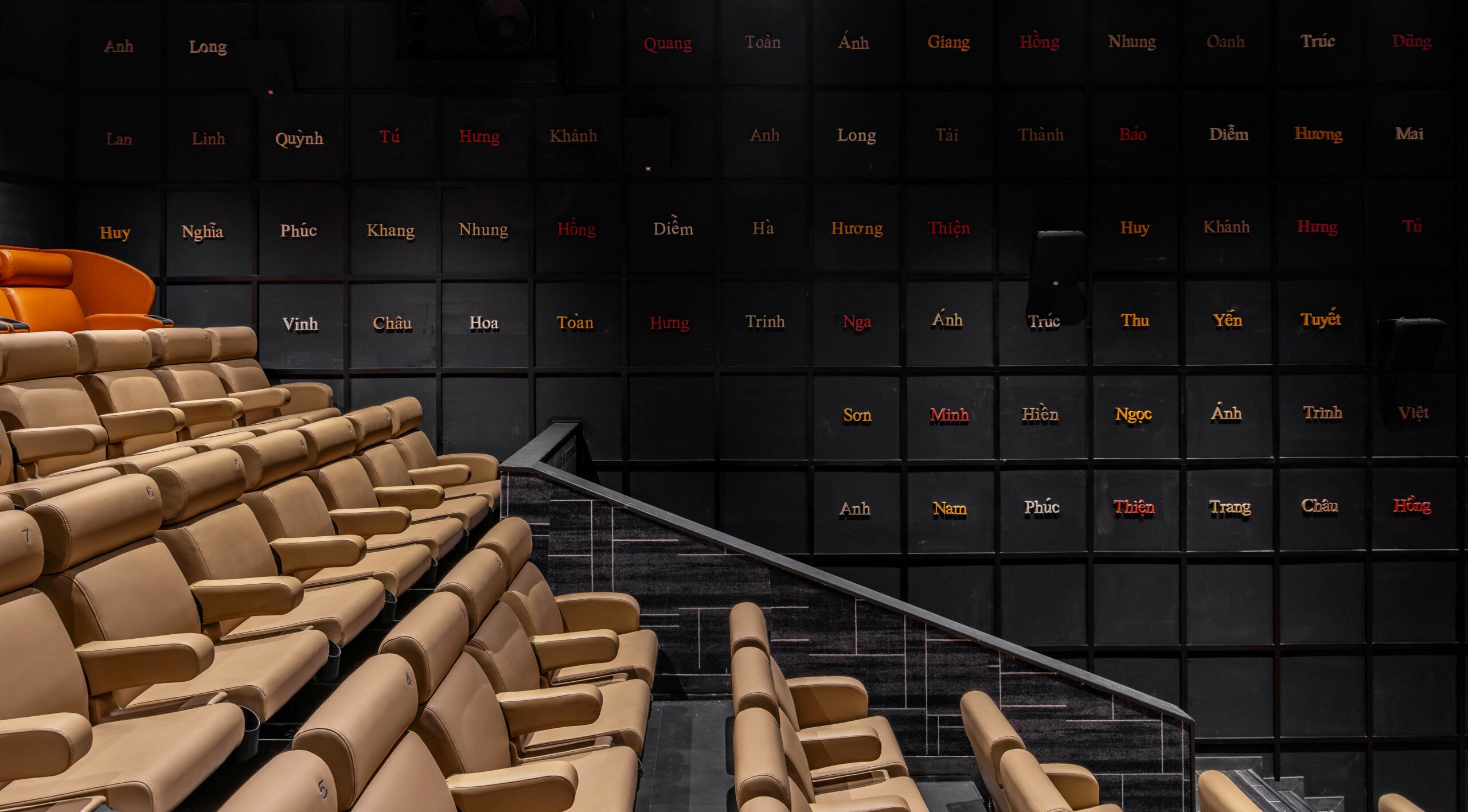 Ý tưởng thiết kế nội thất rạp chiếu phim được xây dựng từ hình ảnh và ngôn ngữ của ngành in typo, một lựa chọn mang tính biểu tượng, giúp kết nối không gian mới với lịch sử địa điểm. Thay vì tái hiện trực tiếp hình ảnh nhà máy cũ, nhóm thiết kế chắt lọc những yếu tố cốt lõi của hoạt động in ấn và chuyển hóa chúng thành ngôn ngữ không gian đương đại.