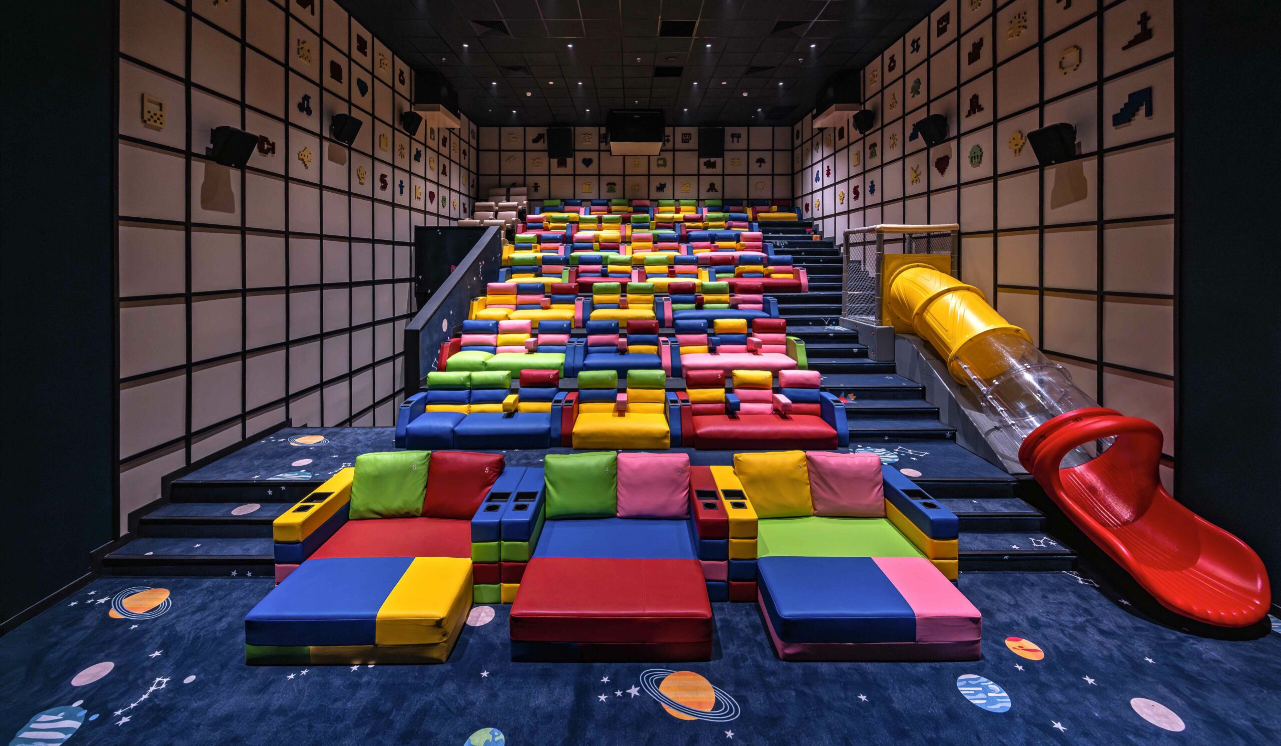 - Cine de Kids và Cine de Play là phòng chiếu và khu chơi dành riêng cho gia đình đặc biệt hướng tới trẻ em. Với màu sắc rực rỡ, kích thước ghế nhỏ, có ghế ngồi 3 chỗ để bố mẹ có thể cùng ngồi với con. Trong phòng chiếu có hệ thống đồ chơi vận động dành cho các bạn nhỏ. Khu chơi độc lập được thiết kế liên thông với phòng chiếu là nơi các khách hàng nhí được hoà mình vào khu vui chơi trước giờ chiếu phim.