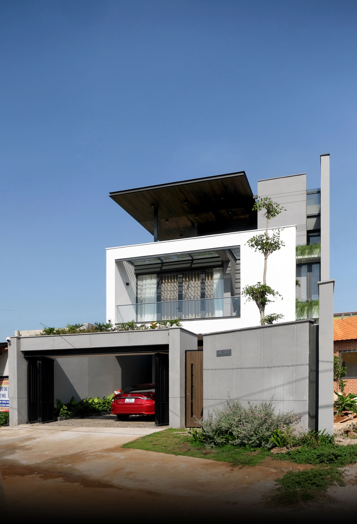 H Villa tọa lạc tại thị trấn Đất Đỏ, Bà Rịa – Vũng Tàu, khu vực mang đặc trưng khí hậu nắng nhiều, gió mạnh và nhịp sống ven biển chậm rãi. Công trình được hình thành từ mong muốn tạo nên một không gian sống hiện đại, tiện nghi nhưng không tách rời thiên nhiên – nơi gia chủ có thể sống chậm, nghỉ ngơi và tái tạo năng lượng trong đời sống thường nhật. Trên nền tảng đó, ngôi nhà được định hình theo tinh thần Tropical Modern, đề cao sự thoáng mở, thích ứng khí hậu và cảm xúc sống bền vững.