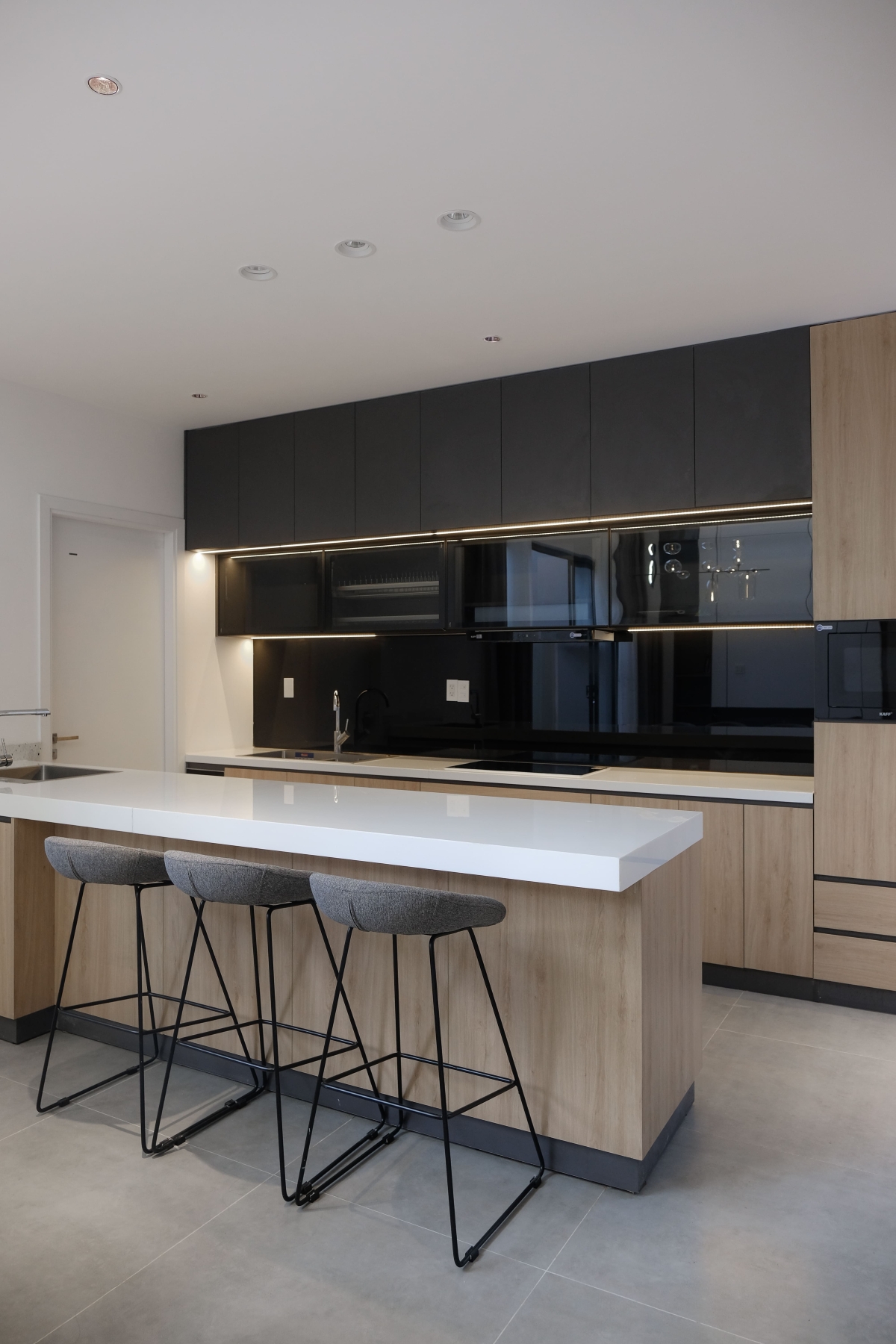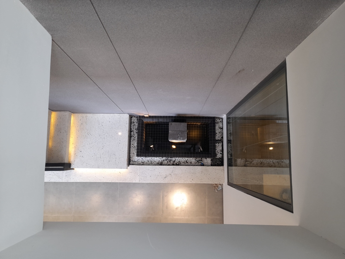Ngôn ngữ vật liệu được lựa chọn theo hướng tự nhiên và tiết chế: gỗ sồi xám phủ dầu, đá mài thô, kính lớn và bảng màu trung tính. Nội thất được thiết kế theo hướng tích hợp, hạn chế chi tiết dư thừa, kết hợp hệ đèn hắt khe và ánh sáng gián tiếp để tạo nên bầu không khí ấm áp, tĩnh tại và thư giãn.