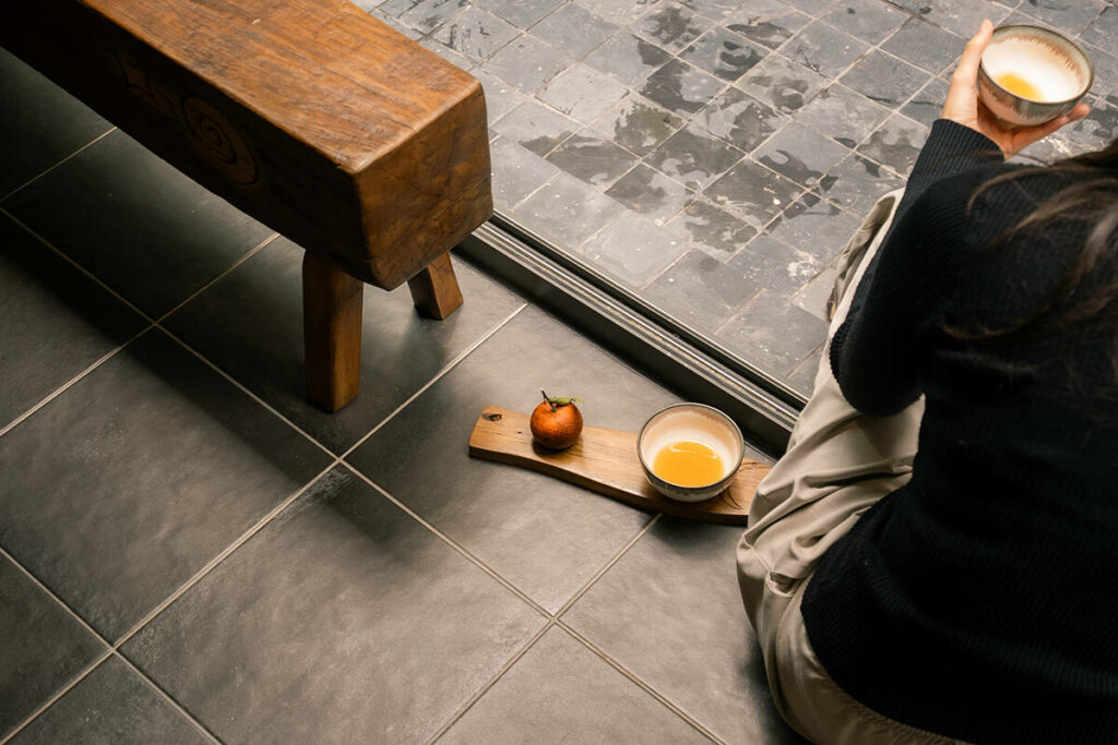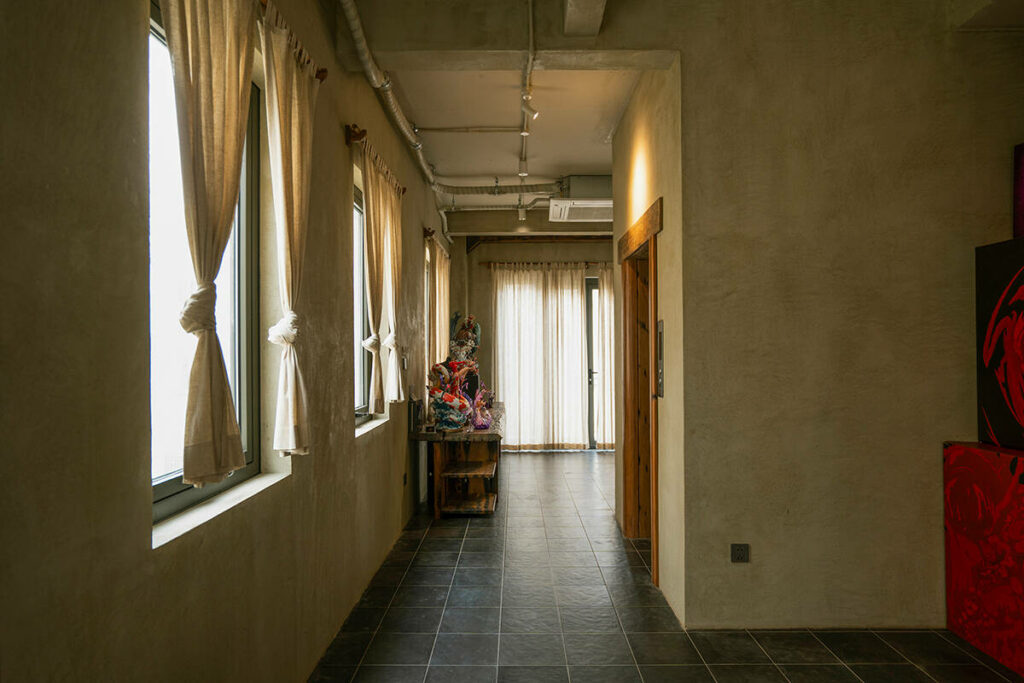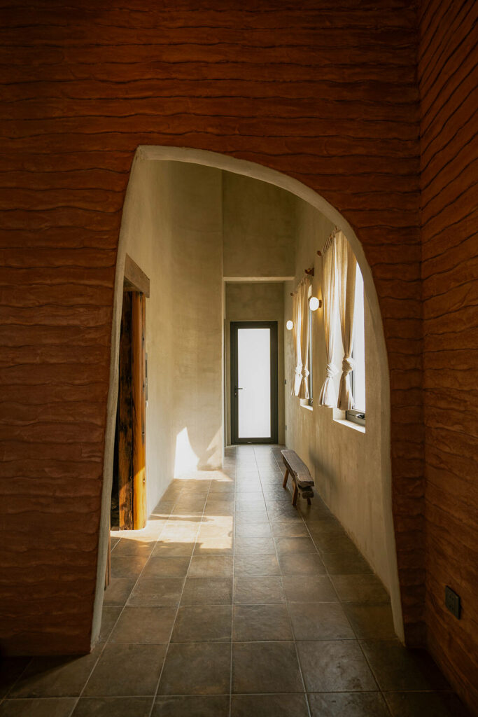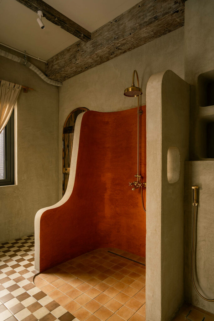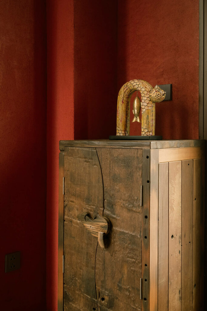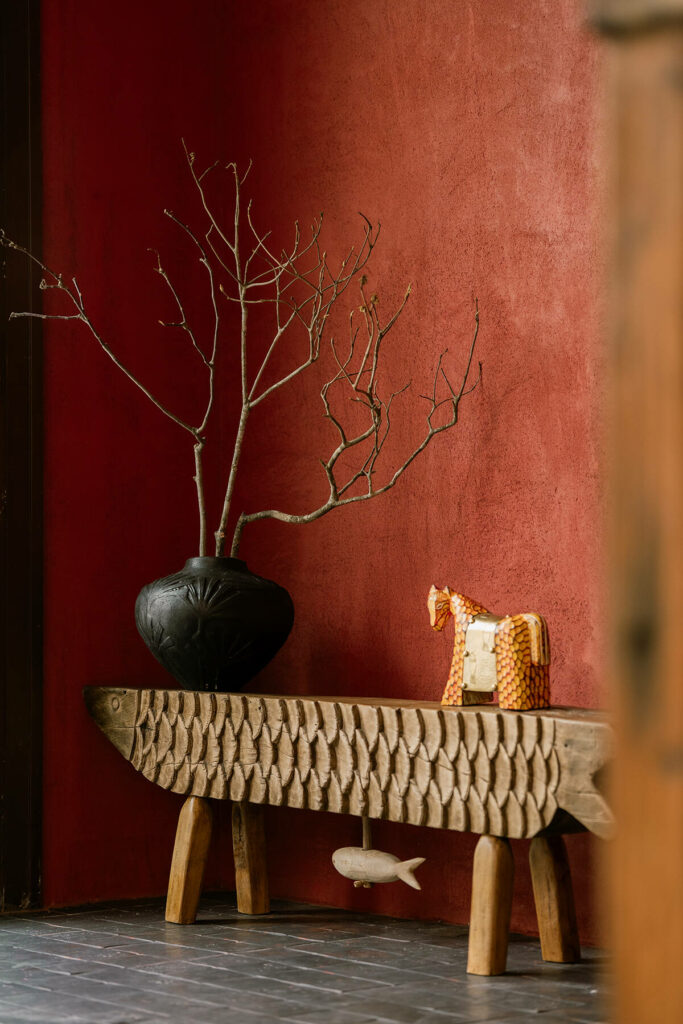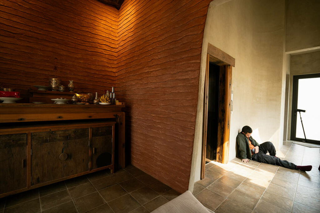 Không dừng lại ở vỏ kiến trúc, phần nội thất tiếp tục kể một chương khác của công trình. Gỗ Táu được tái chế từ những con tàu cũ, trở thành chất liệu chính cho hầu hết vật dụng. Đây vừa là giải pháp “xanh”, mà là sự tái sinh có chủ đích: những vết xước, dấu đinh hay thớ gỗ già đều là một phần của ký ức vật liệu, mang đến chiều sâu lịch sử cho một không gian sống đương đại. Kết hợp cùng vải lanh thủ công nhuộm tự nhiên và ánh sáng hắt từ những chiếc đèn được chế tác riêng, tổng thể nội thất tạo ra một trạng thái xúc cảm ấm cúng và thật sự yên tĩnh.