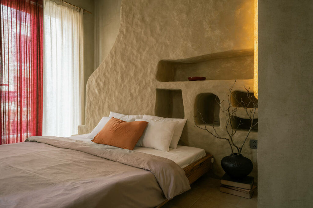 Không gian nghỉ ngơi thô mộc, tinh tế với vải lanh được nhuộm tự nhiên