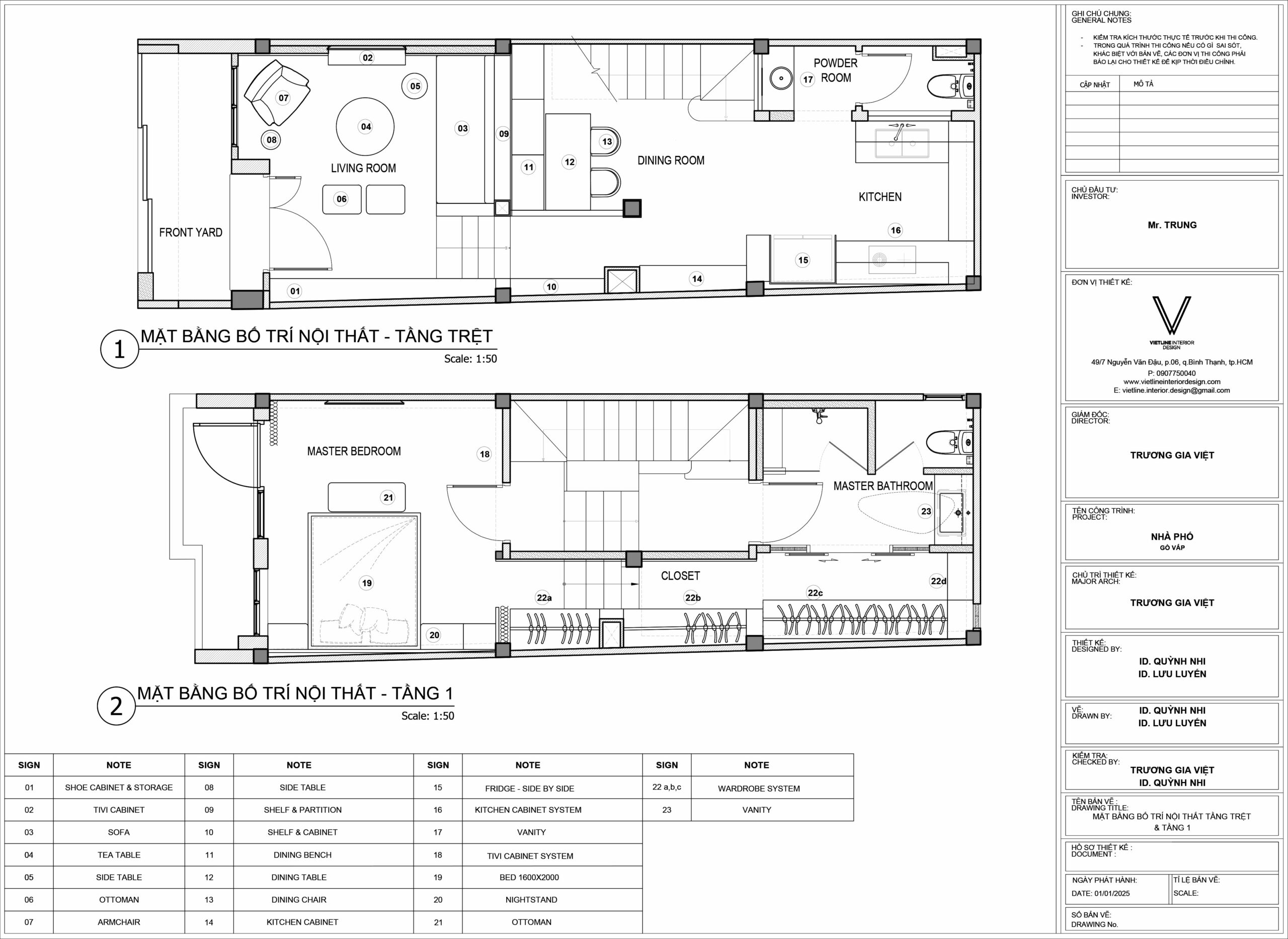 Hệ tủ lớn được sử dụng xuyên suốt, không chỉ để tối ưu lưu trữ mà còn để cân bằng hình khối. Tủ không xem như nội thất rời mà đóng vai trò cấu trúc thị giác: tạo mảng nền vững, cho phép các món nội thất còn lại được thở, giảm sự lộn xộn thường thấy ở nhà phố diện tích nhỏ.