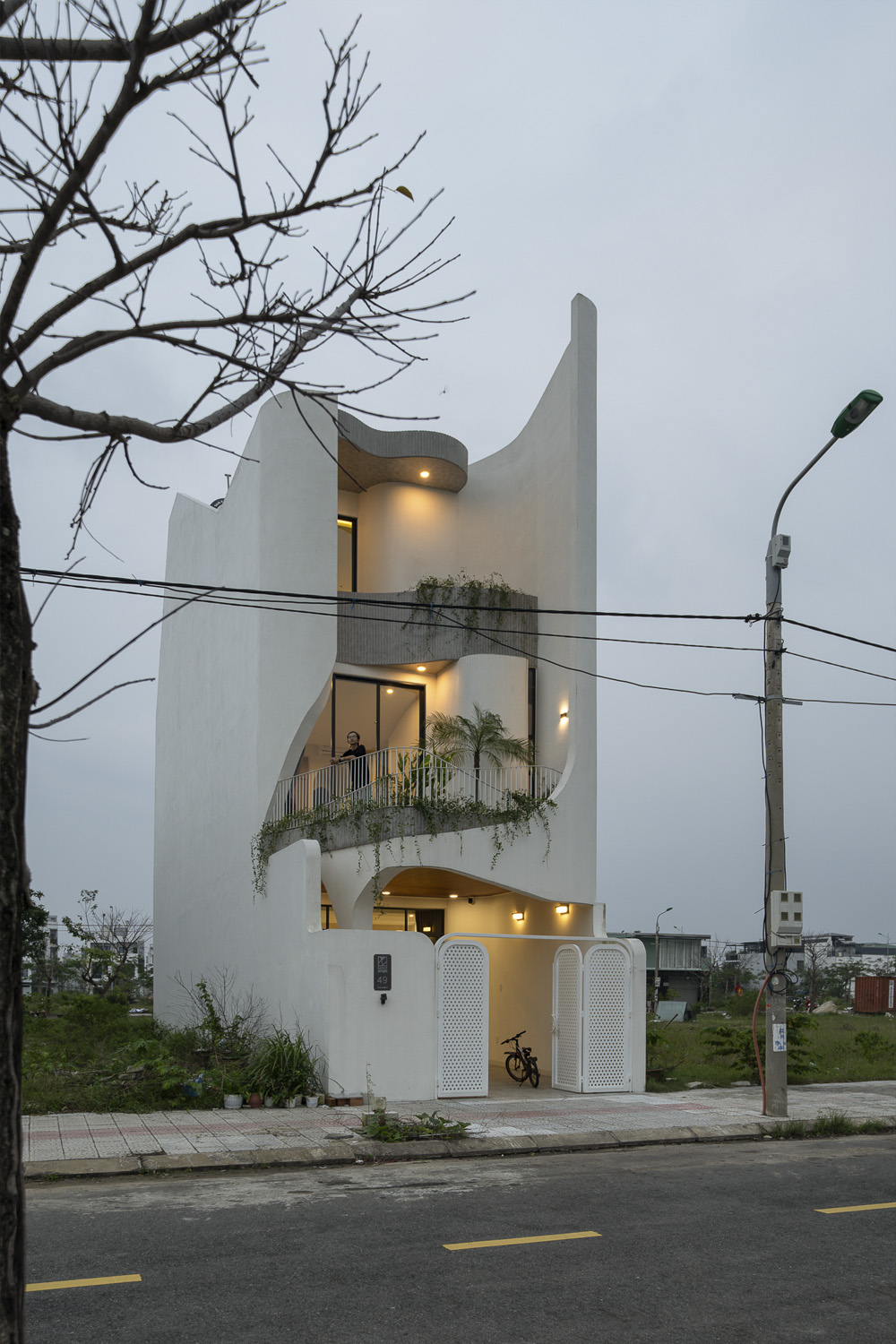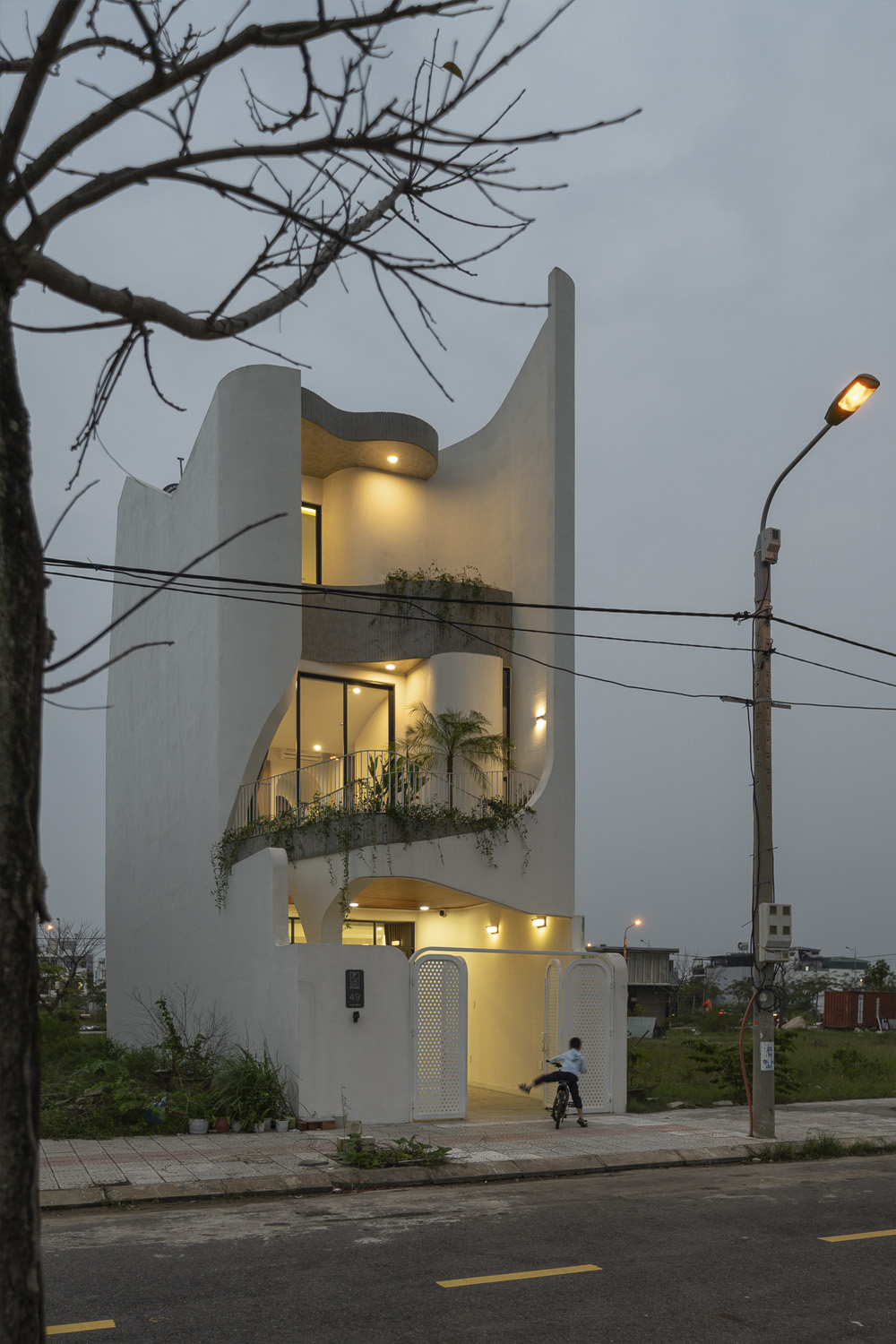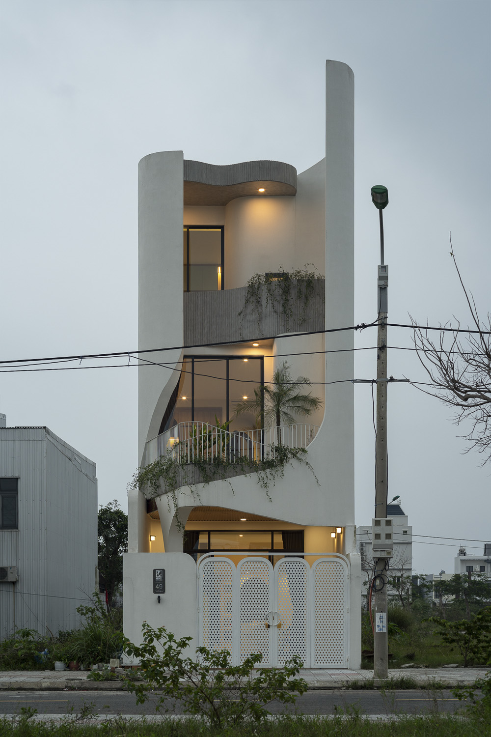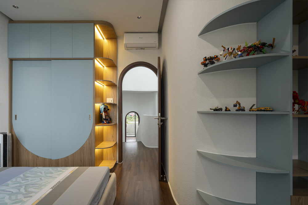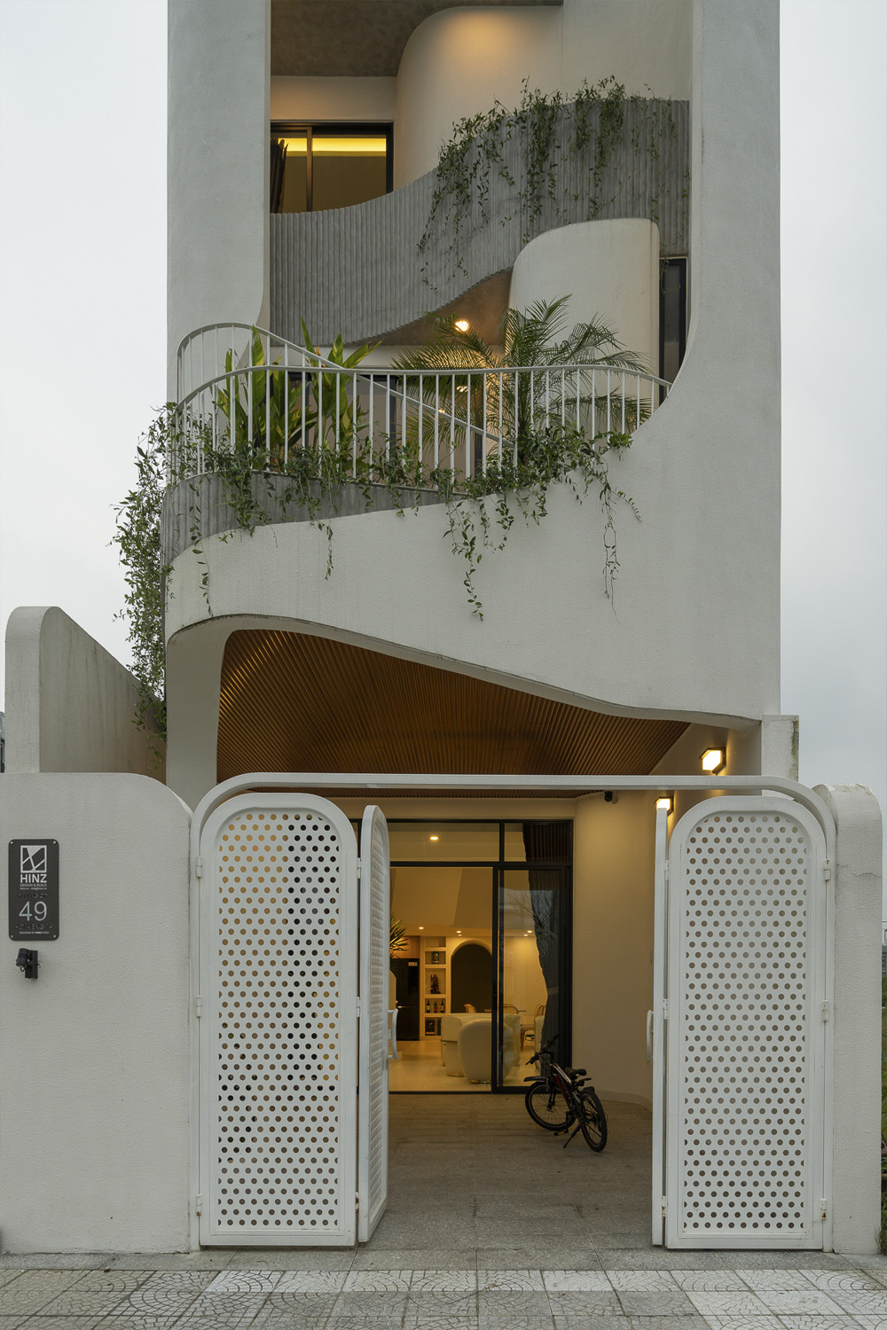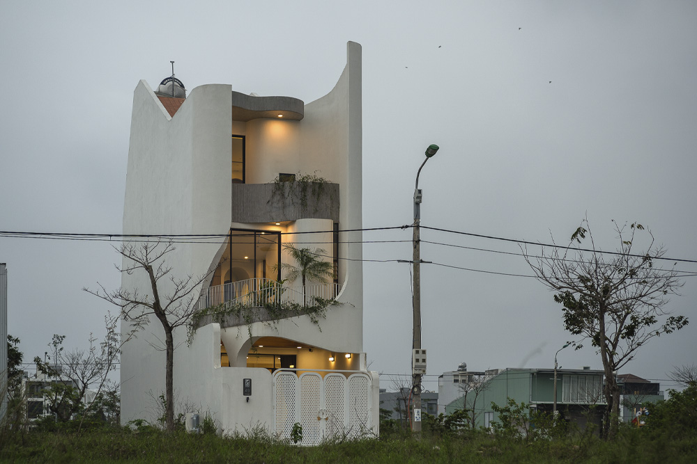 Trên khu đất 5x21m đặc trưng tại Đà Nẵng, công trình HOIKIENG19 được Hinzstudio kiến tạo dựa trên mong muốn của một gia đình trẻ về một không gian sống đơn giản, tiện nghi nhưng phải thực sự thoáng đãng để các thành viên dễ dàng gắn kết trong sinh hoạt hằng ngày. Điểm nhấn thị giác nằm ở những đường cong tinh tế xuất hiện từ lan can, vòm cửa đến trần và mặt tiền, không chỉ làm mềm mại tầm nhìn mà còn đóng vai trò dẫn dắt ánh sáng, mang lại cảm giác rộng mở và tăng thêm chiều sâu không gian trong từng bước chân dịch chuyển.