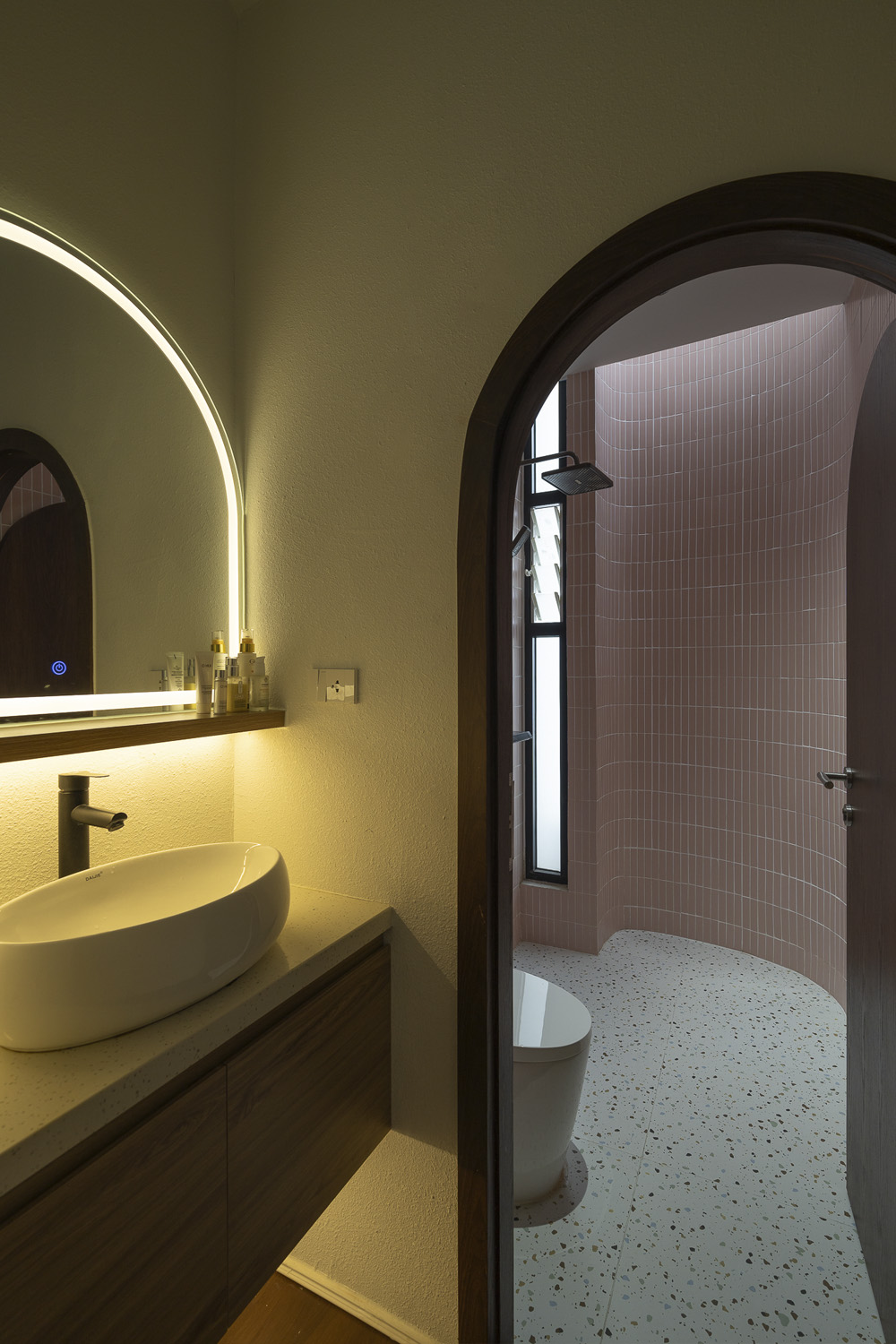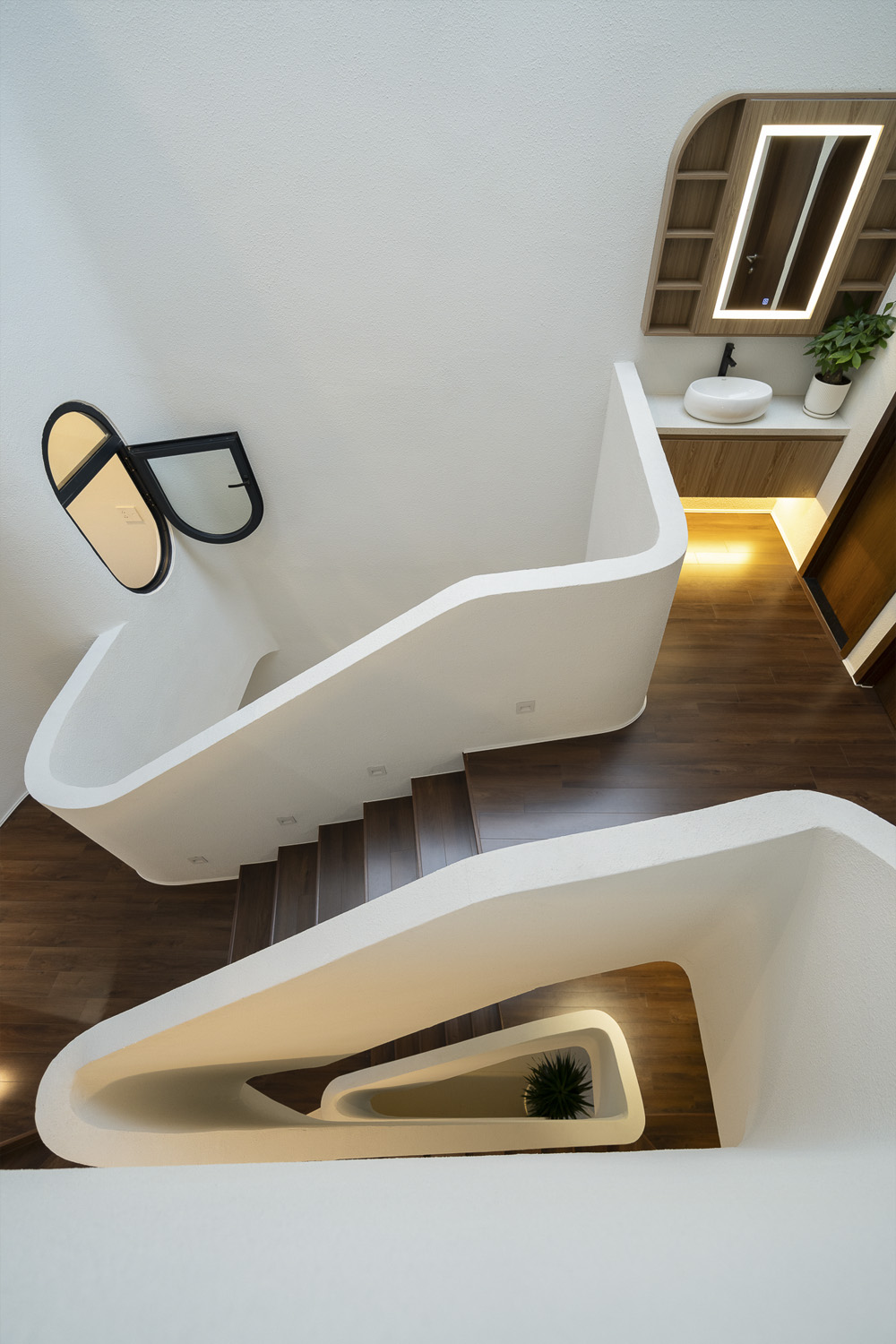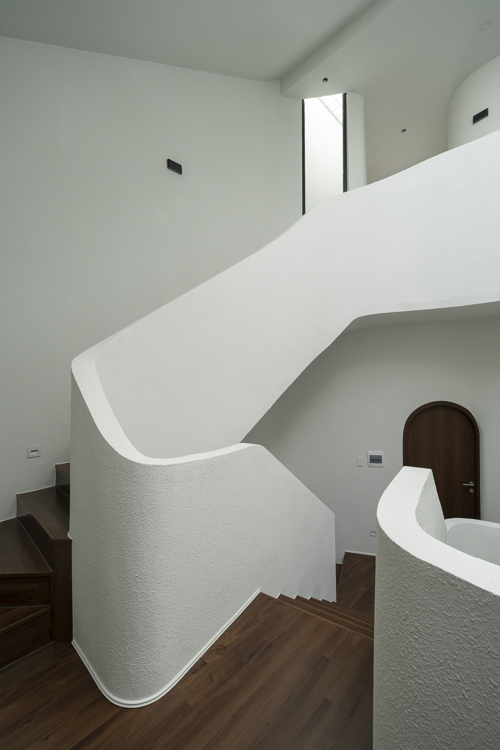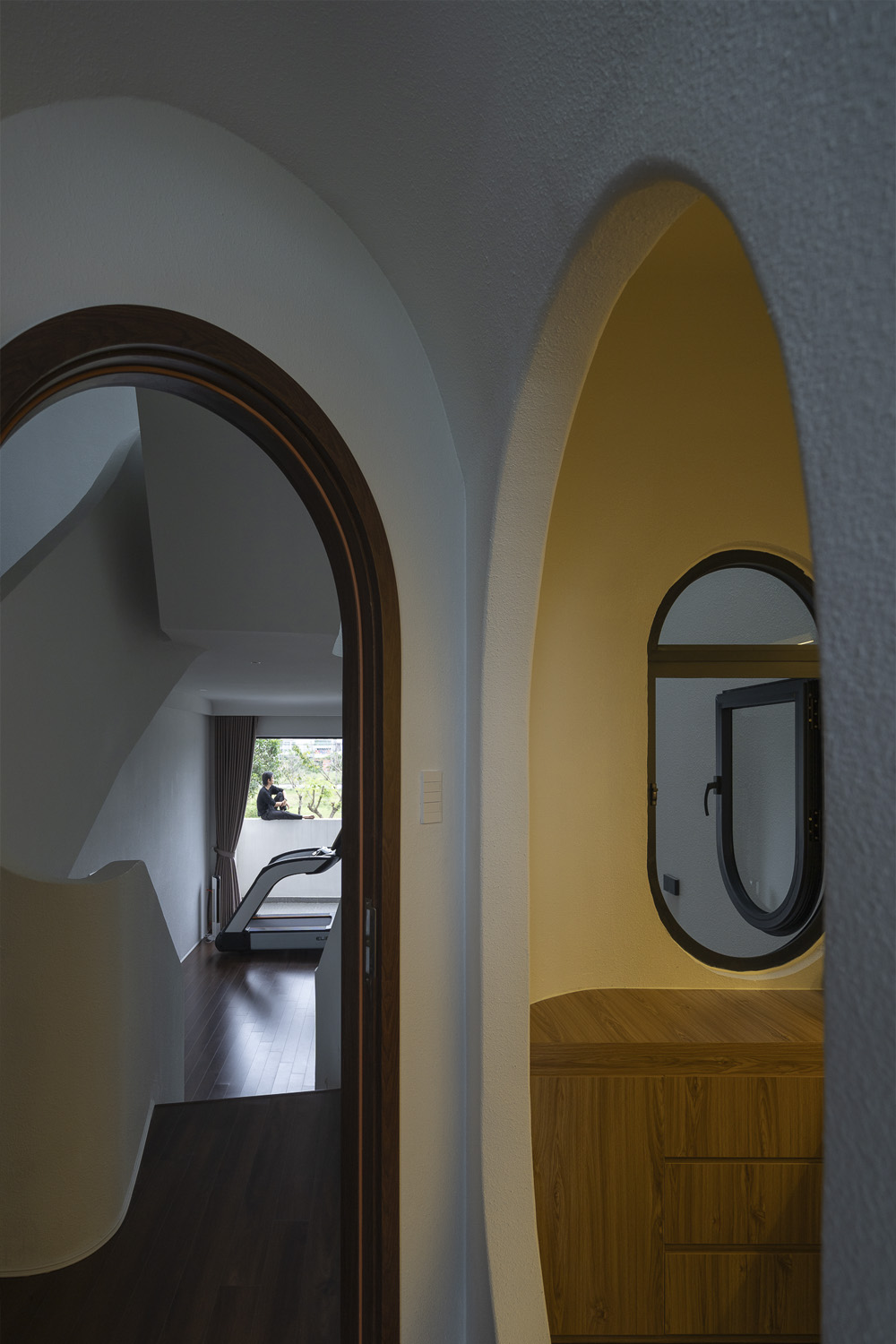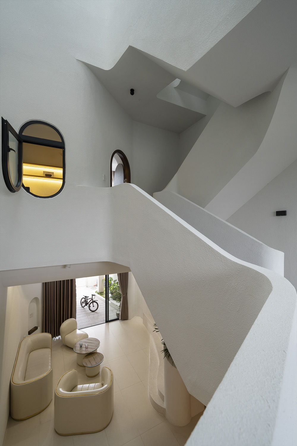 Trên khu đất 5x21m đặc trưng tại Đà Nẵng, công trình HOIKIENG19 được Hinzstudio kiến tạo dựa trên mong muốn của một gia đình trẻ về một không gian sống đơn giản, tiện nghi nhưng phải thực sự thoáng đãng để các thành viên dễ dàng gắn kết trong sinh hoạt hằng ngày. Điểm nhấn thị giác nằm ở những đường cong tinh tế xuất hiện từ lan can, vòm cửa đến trần và mặt tiền, không chỉ làm mềm mại tầm nhìn mà còn đóng vai trò dẫn dắt ánh sáng, mang lại cảm giác rộng mở và tăng thêm chiều sâu không gian trong từng bước chân dịch chuyển.