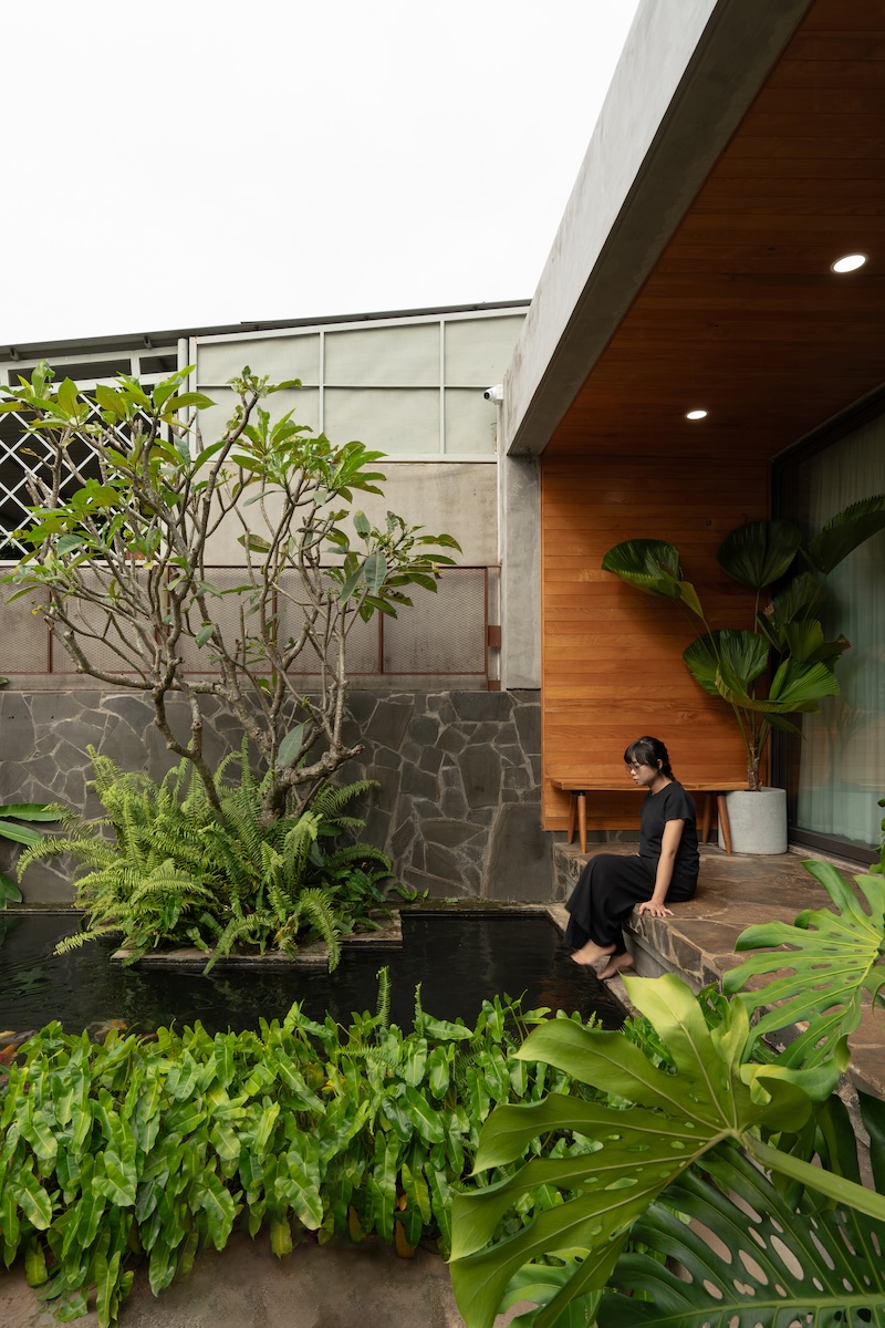 Không gian được tổ chức theo hướng chuyển tiếp mềm mại giữa bên trong và bên ngoài. Nhiều lớp không gian đan xen giữa kiến trúc và cảnh quan giúp xóa nhòa ranh giới giữa nội và ngoại thất, tạo cảm giác như một hành trình chậm rãi xuyên suốt. Các vật liệu cảnh quan cũng được đưa vào bên trong, làm dịu mối quan hệ giữa công trình và môi trường tự nhiên.