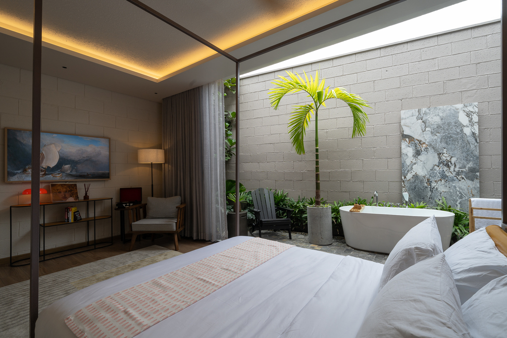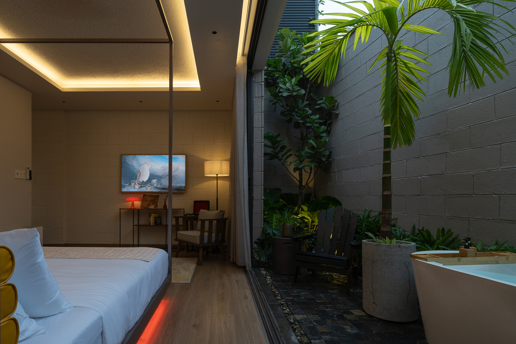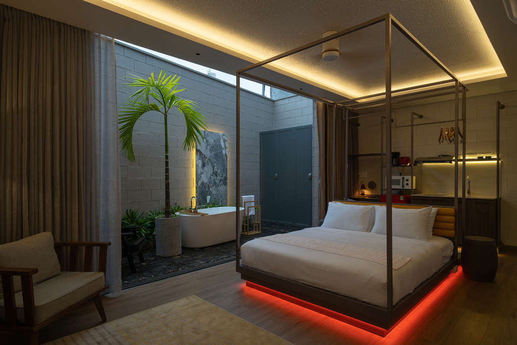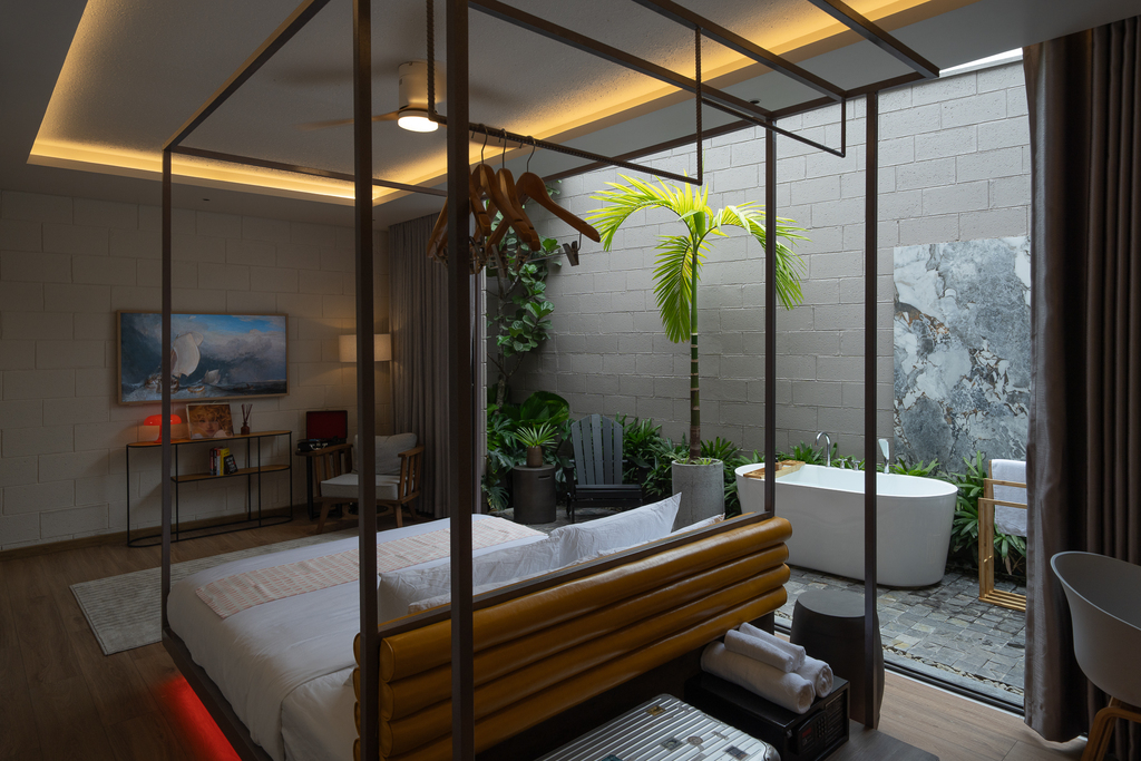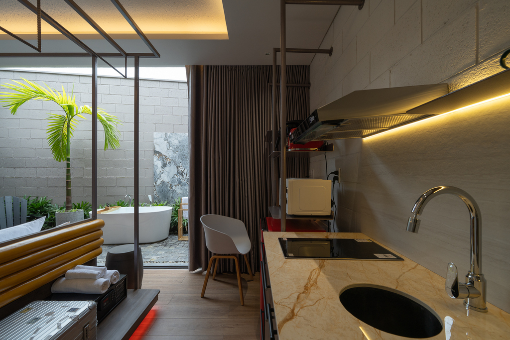 • Một căn hộ studio ẩn phía sau, sở hữu giếng trời, sân vườn và bồn tắm lộ thiên, đảm bảo sự riêng tư tuyệt đối