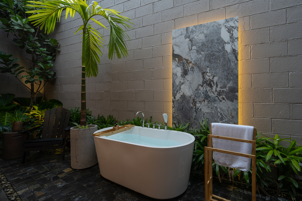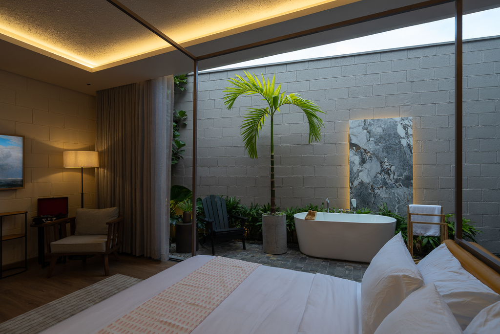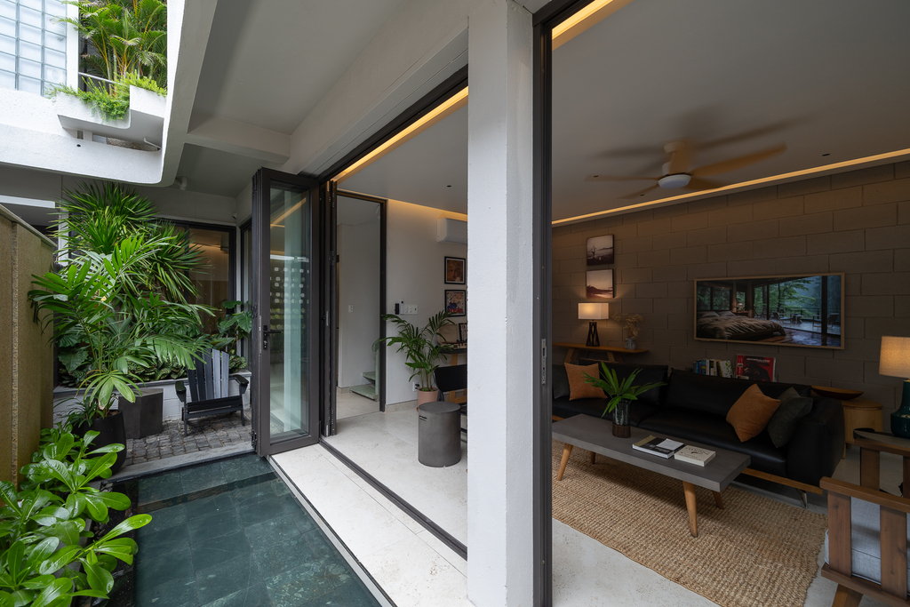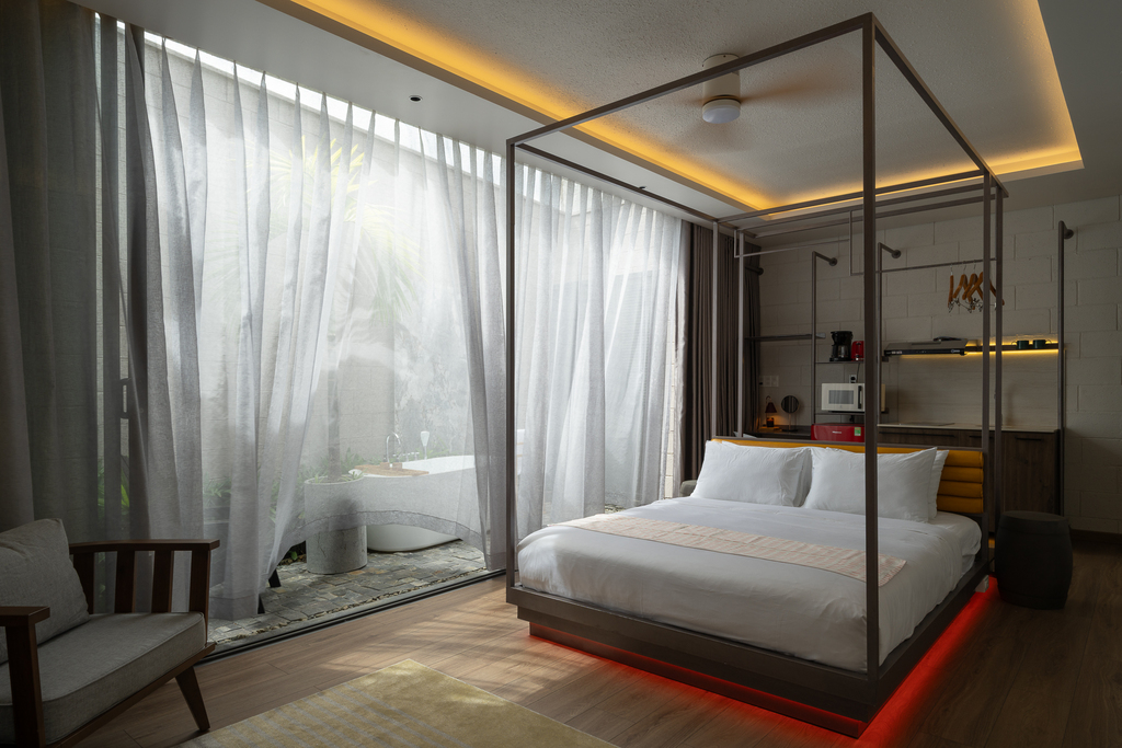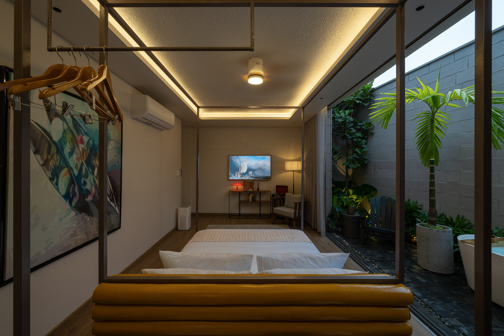 • Một căn hộ studio ẩn phía sau, sở hữu giếng trời, sân vườn và bồn tắm lộ thiên, đảm bảo sự riêng tư tuyệt đối