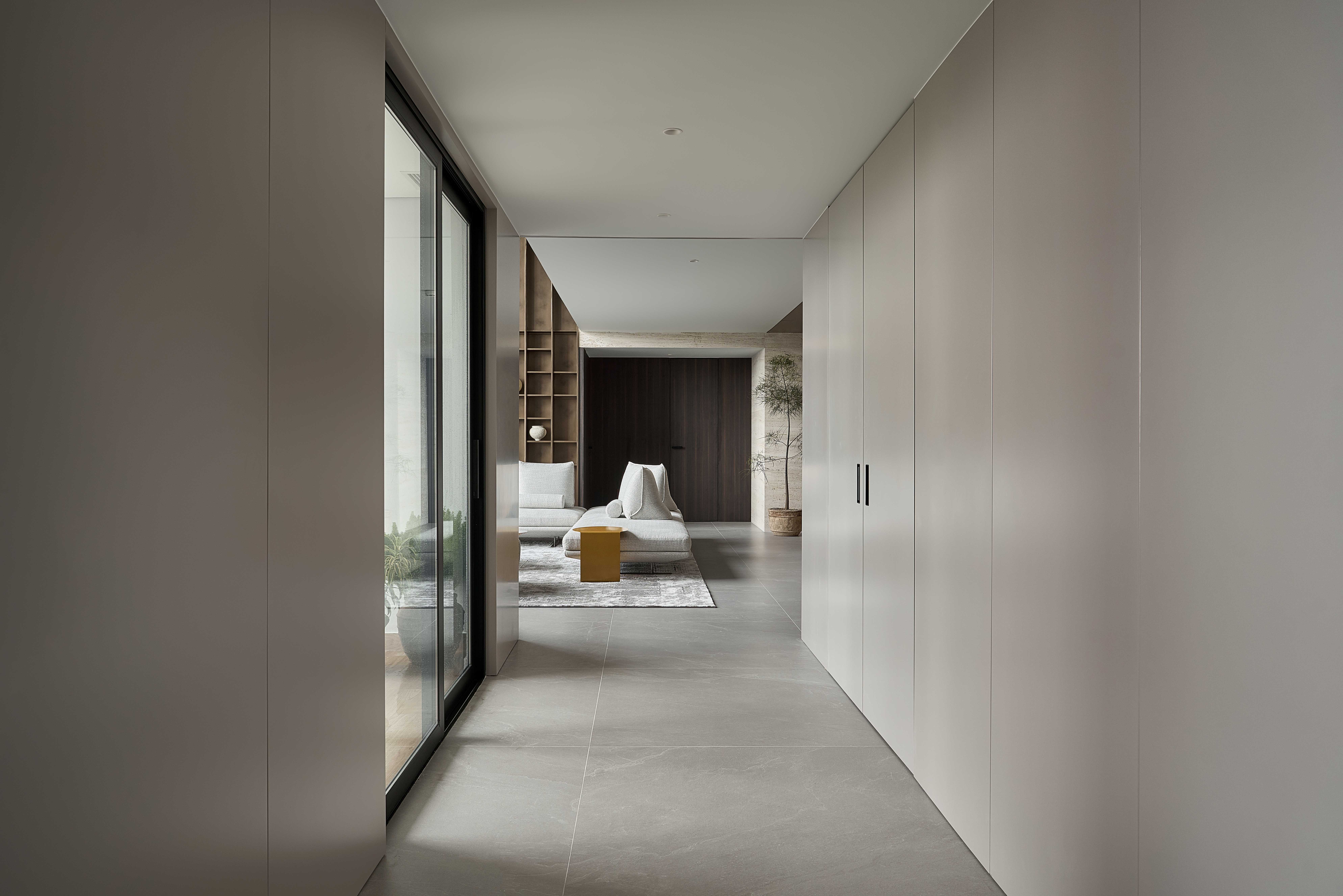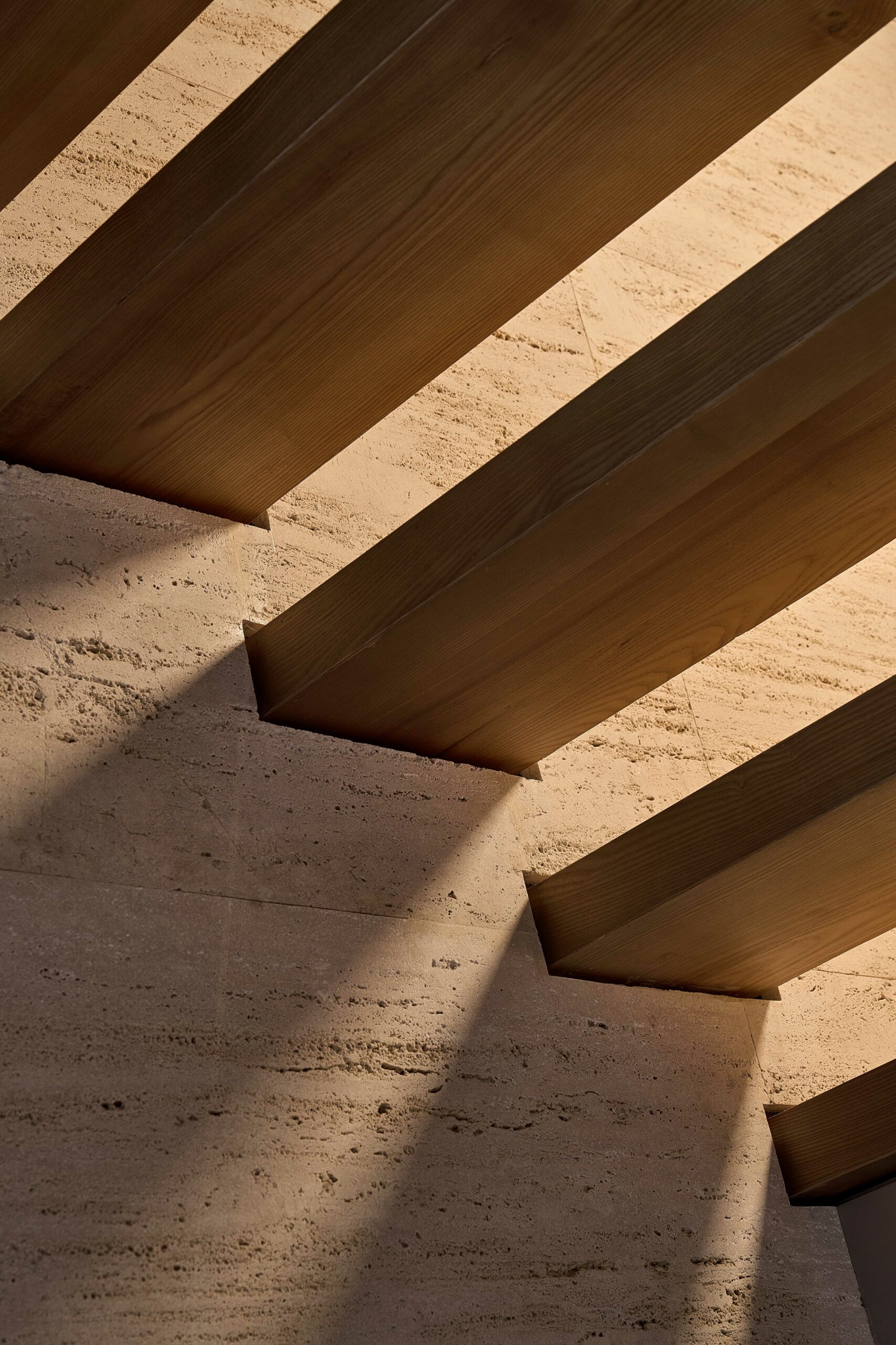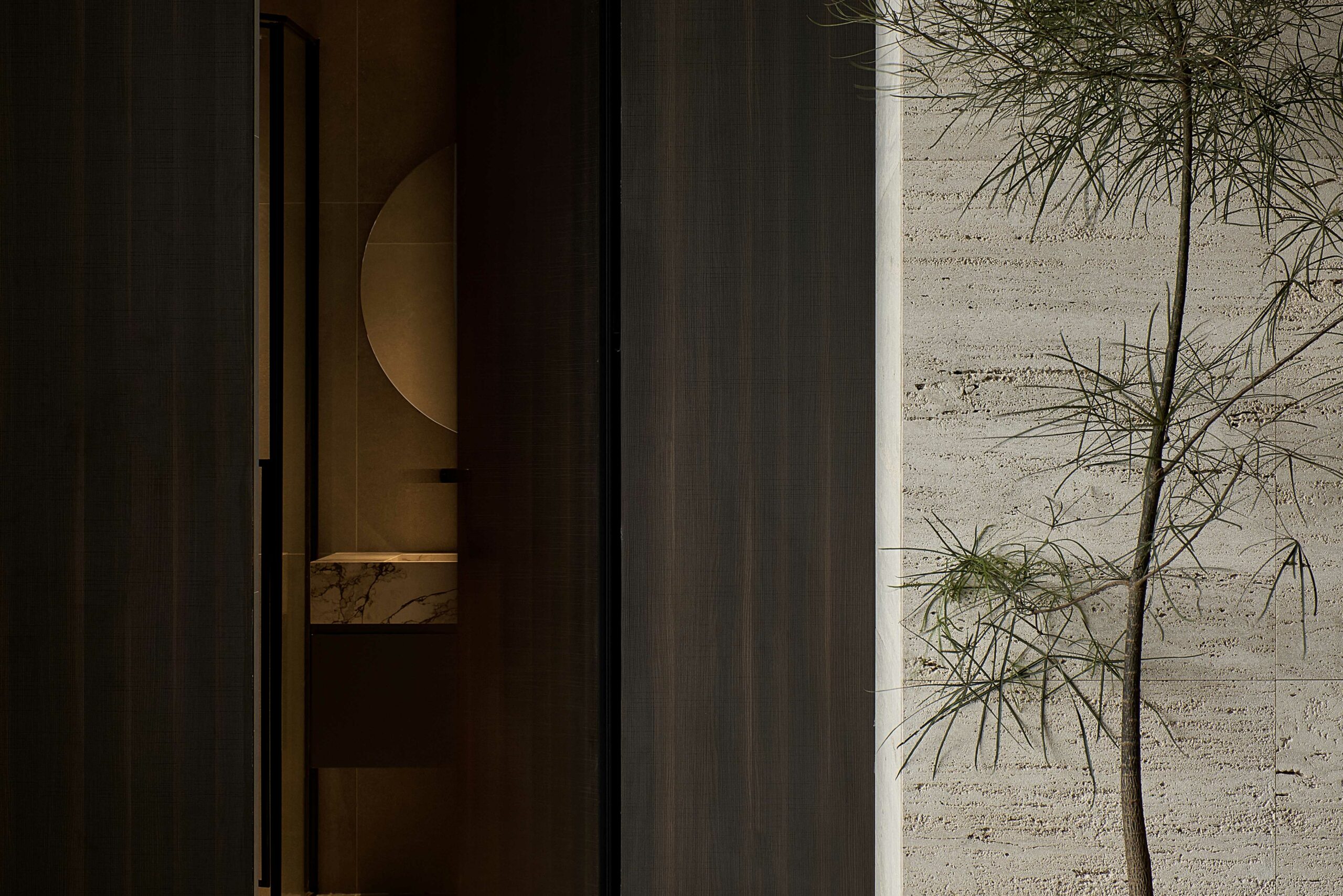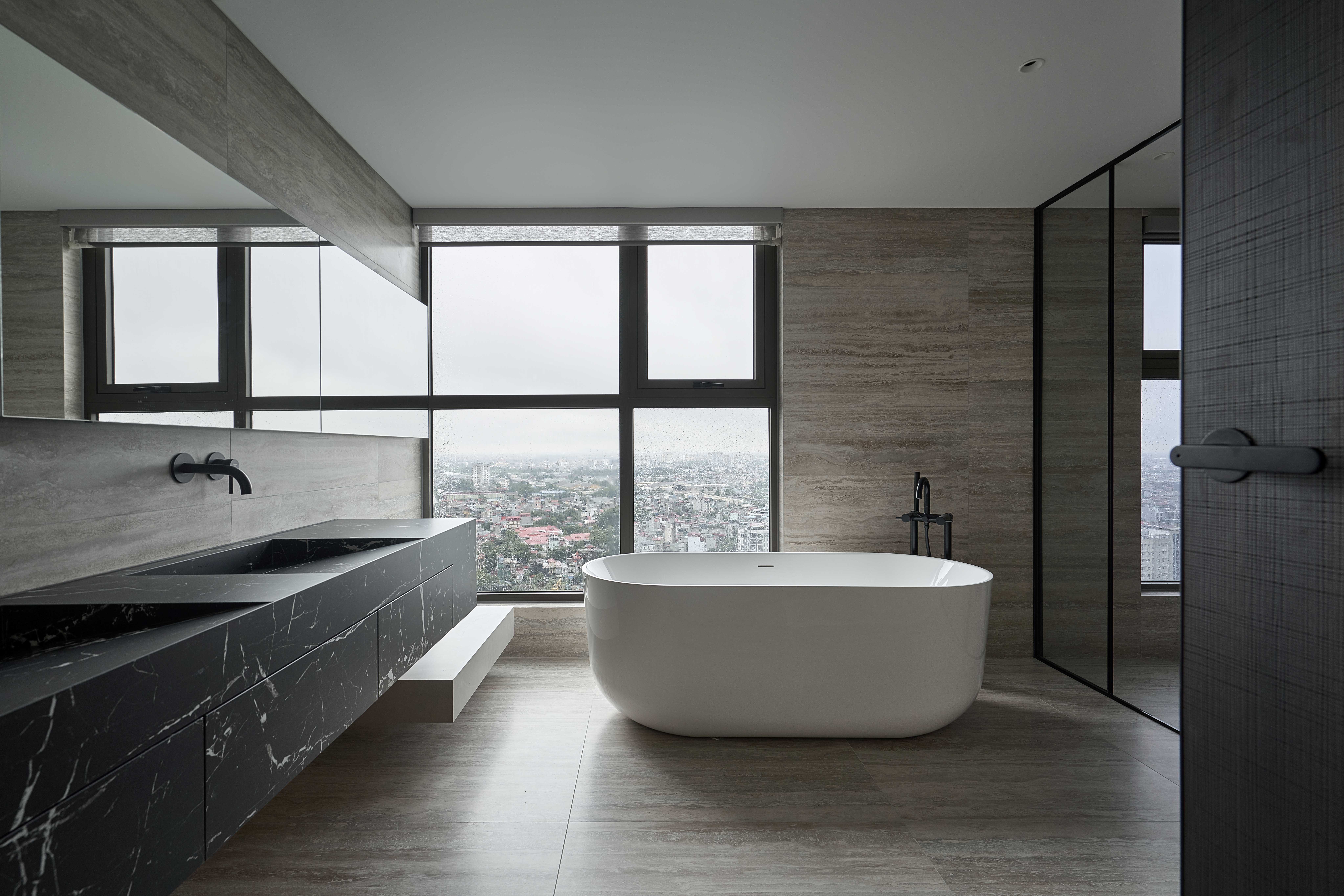 Ngôn ngữ kiến trúc hiện đại được thể hiện rõ rệt qua đường nét mạch lạc, mạnh mẽ. Đá travertine thô mộc kết hợp cùng vật liệu kim loại tạo nên sự tương phản tinh tế nhưng nổi bật. Khai Sơn Penthouse không chỉ là nơi ở, mà còn là biểu hiện của sự cởi mở, sáng tạo và gắn kết gia đình trong một không gian sống trên cao.