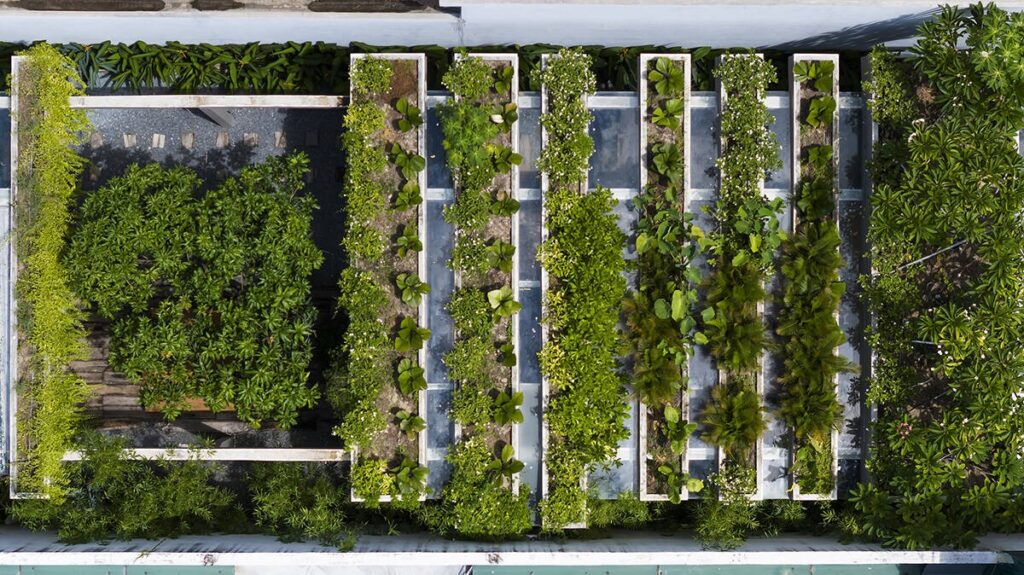 Office for Trees nổi bật với hệ cây xanh được phủ khắp công trình, kết hợp cùng các giải pháp bền vững như thu nước mưa, mái xanh và năng lượng mặt trời