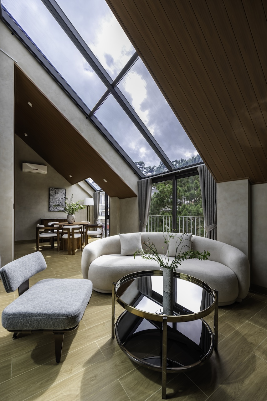 Chi tiết kiến trúc được tiết chế tối đa, mọi yếu tố trang trí đều hướng đến công năng và tính bản địa. Không gian nội thất sẽ trở thành một phông nền trung tính để thiên nhiên Đà Lạt tỏa sáng trong từng góc nhìn.