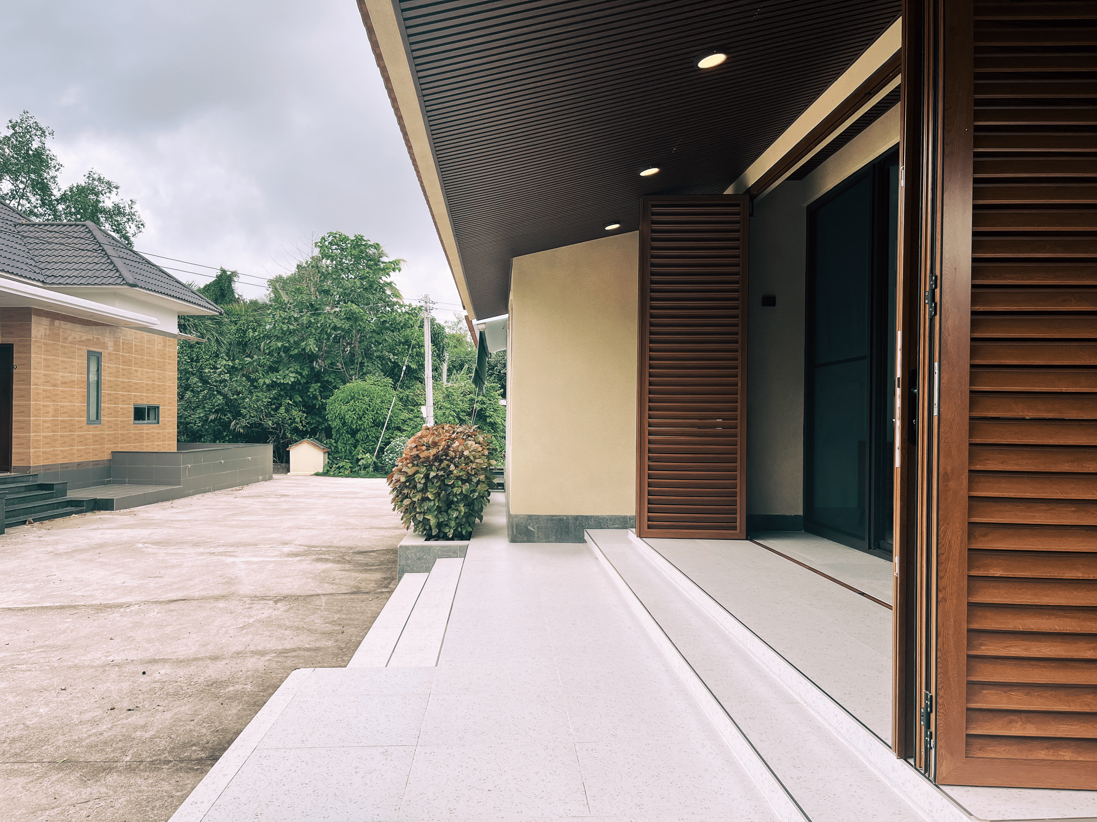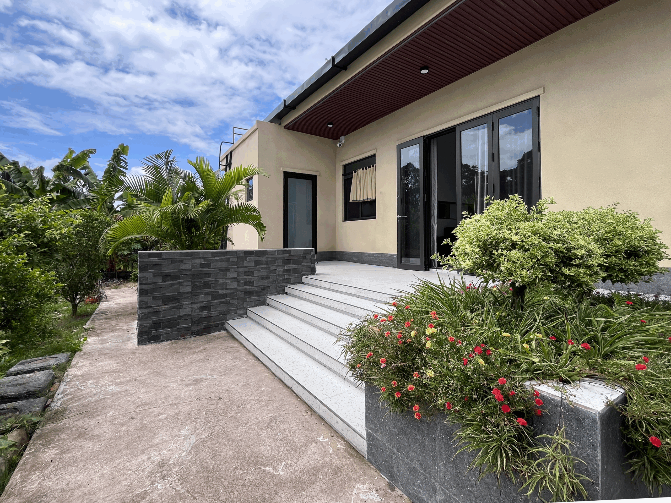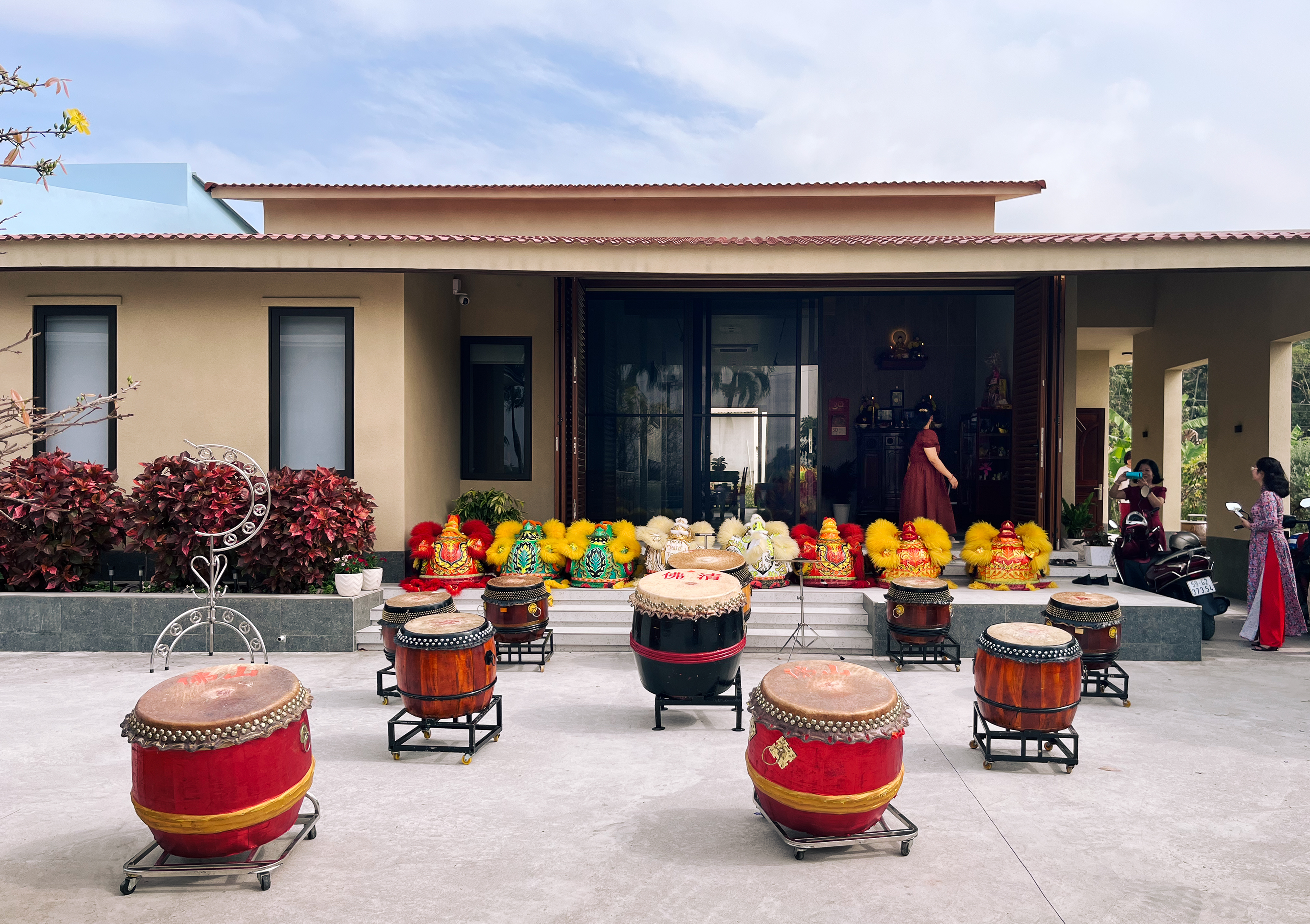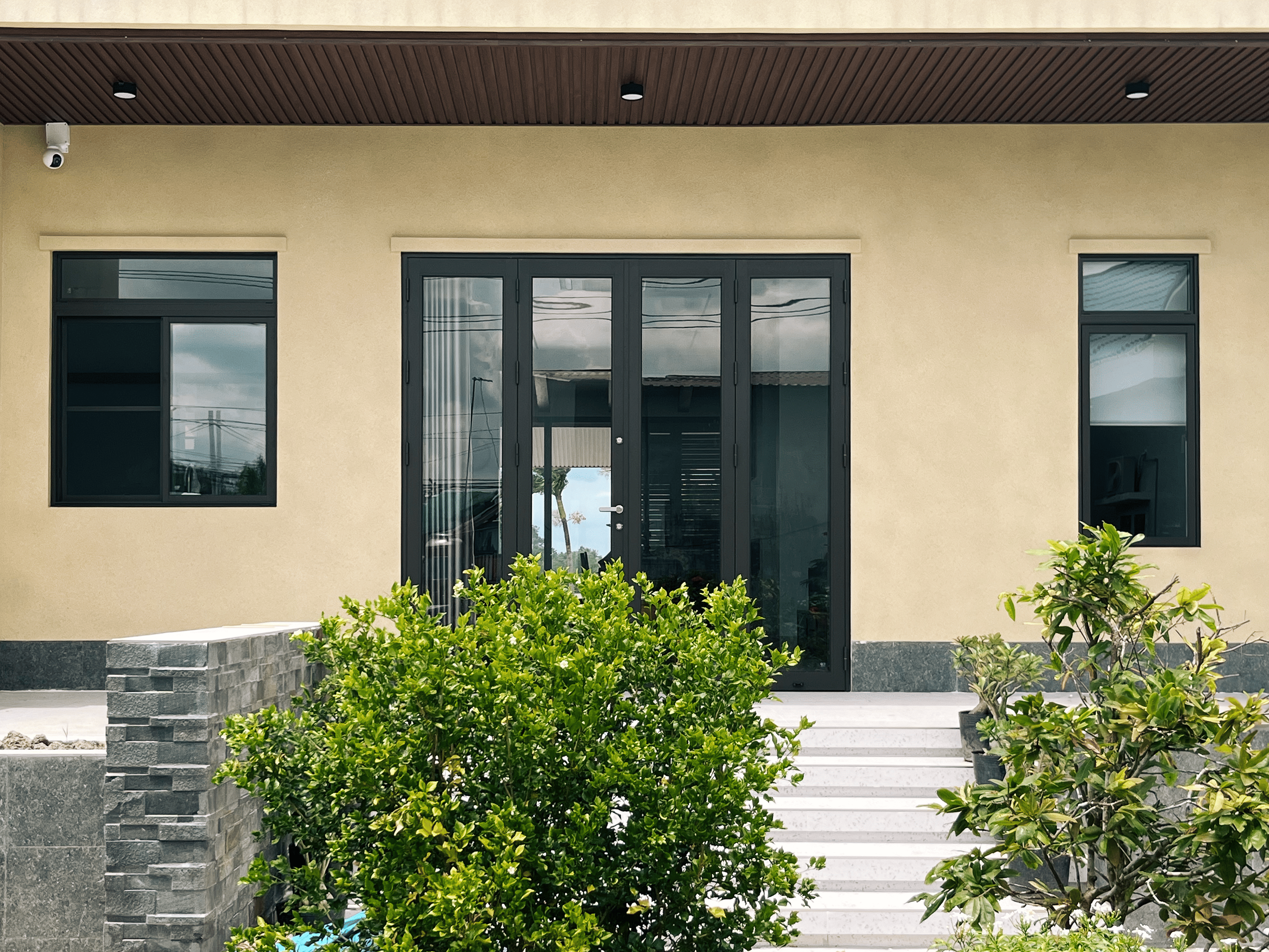 Cảnh quan xanh bao quanh đóng vai trò quan trọng trong việc cải thiện vi khí hậu, giảm bức xạ nhiệt và tạo cảm giác “ẩn mình” giữa vườn cây. Sân trước rộng không chỉ là khoảng lùi cảnh quan mà còn trở thành không gian sinh hoạt chung, nơi diễn ra các hoạt động truyền thống, góp phần gắn kết gia đình và cộng đồng.