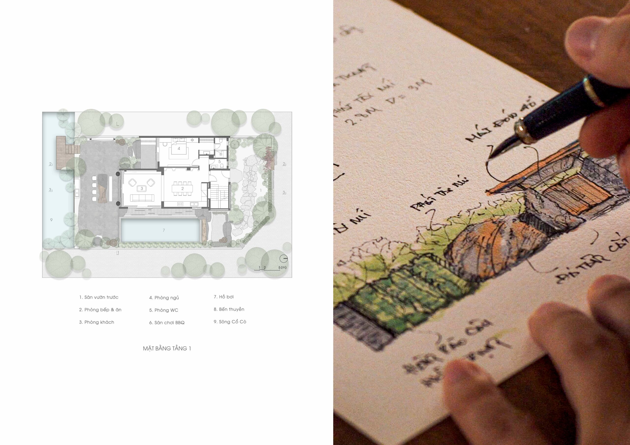 Linh Khuê Villa được hình thành trên nền cảnh quan sông nước đặc trưng của Hội An, nơi dòng kênh xanh và rừng dừa nước tạo nên không gian sống thanh bình, giàu cảm xúc. Công trình hướng đến mô hình nhà ở kết hợp nghỉ dưỡng, đặt con người vào mối quan hệ hài hòa với thiên nhiên, khí hậu và văn hóa bản địa.