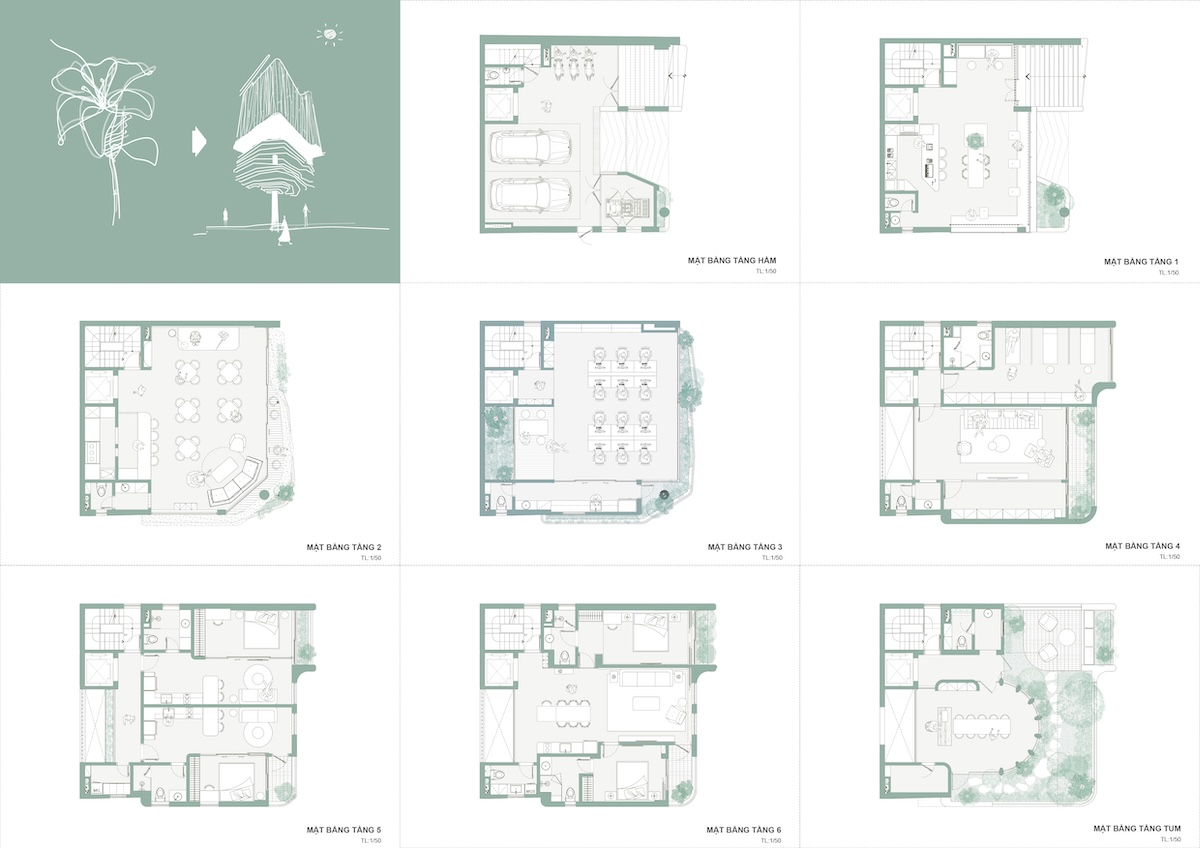 Những phần đẹp đẽ nhất của bông hoa là nụ và cánh, tượng trưng cho sự mềm mại và tinh tế; nhưng chính thân hoa mảnh mai mới là phần âm thầm nâng đỡ toàn bộ cấu trúc. Từ đó, nhóm thiết kế phát triển một hệ cấu trúc trung tâm – nơi một “thân hoa” được tái hiện bằng những đường nét mạnh mẽ, vừa tạo điểm nhấn thị giác vừa đóng vai trò chịu lực chính cho toàn bộ khối bê tông phía trên. Như hình ảnh người phụ nữ kiên cường giữa đô thị, lặng lẽ gánh vác, nhưng vẫn toả sáng bằng vẻ đẹp của sự bền bỉ và niềm tin vào cuộc sống.