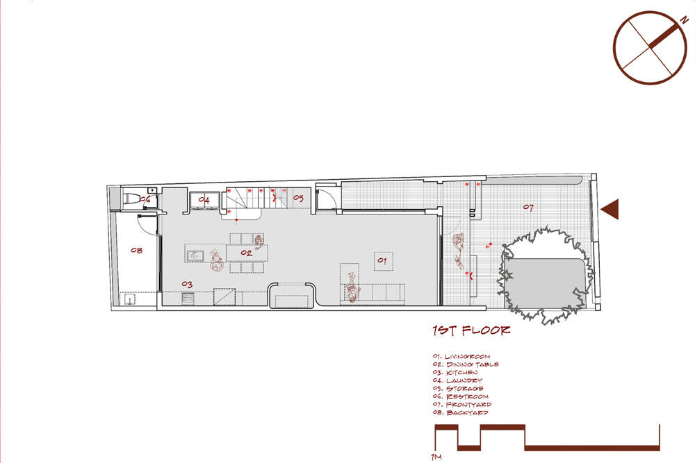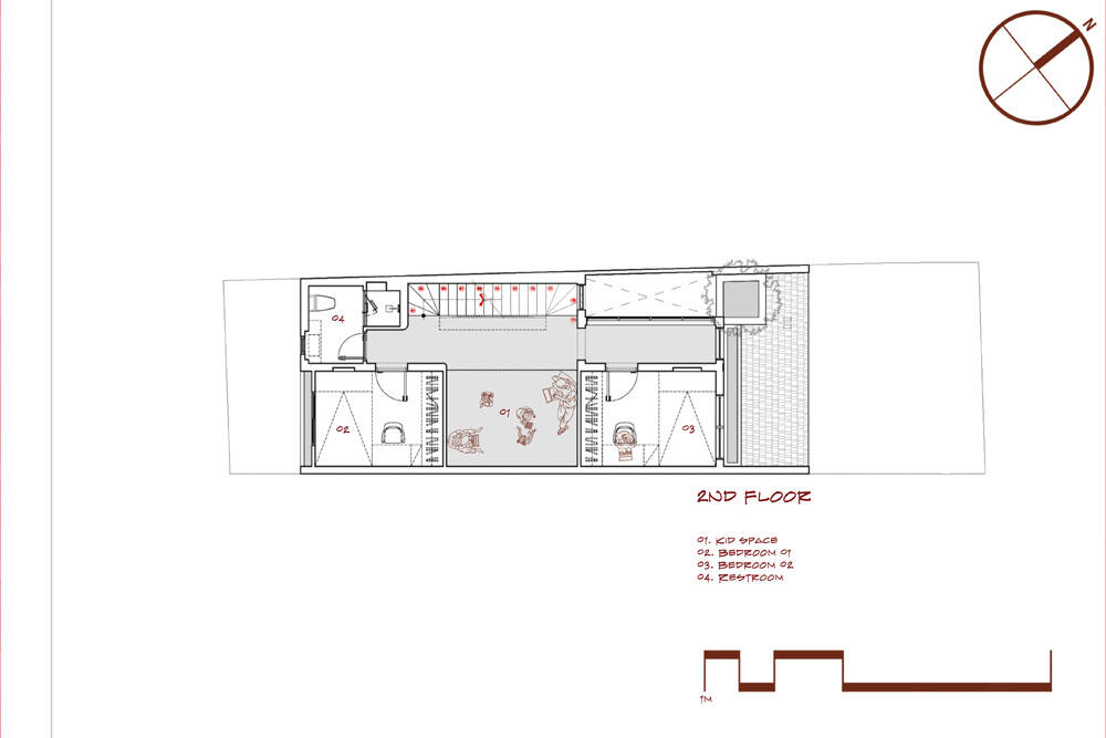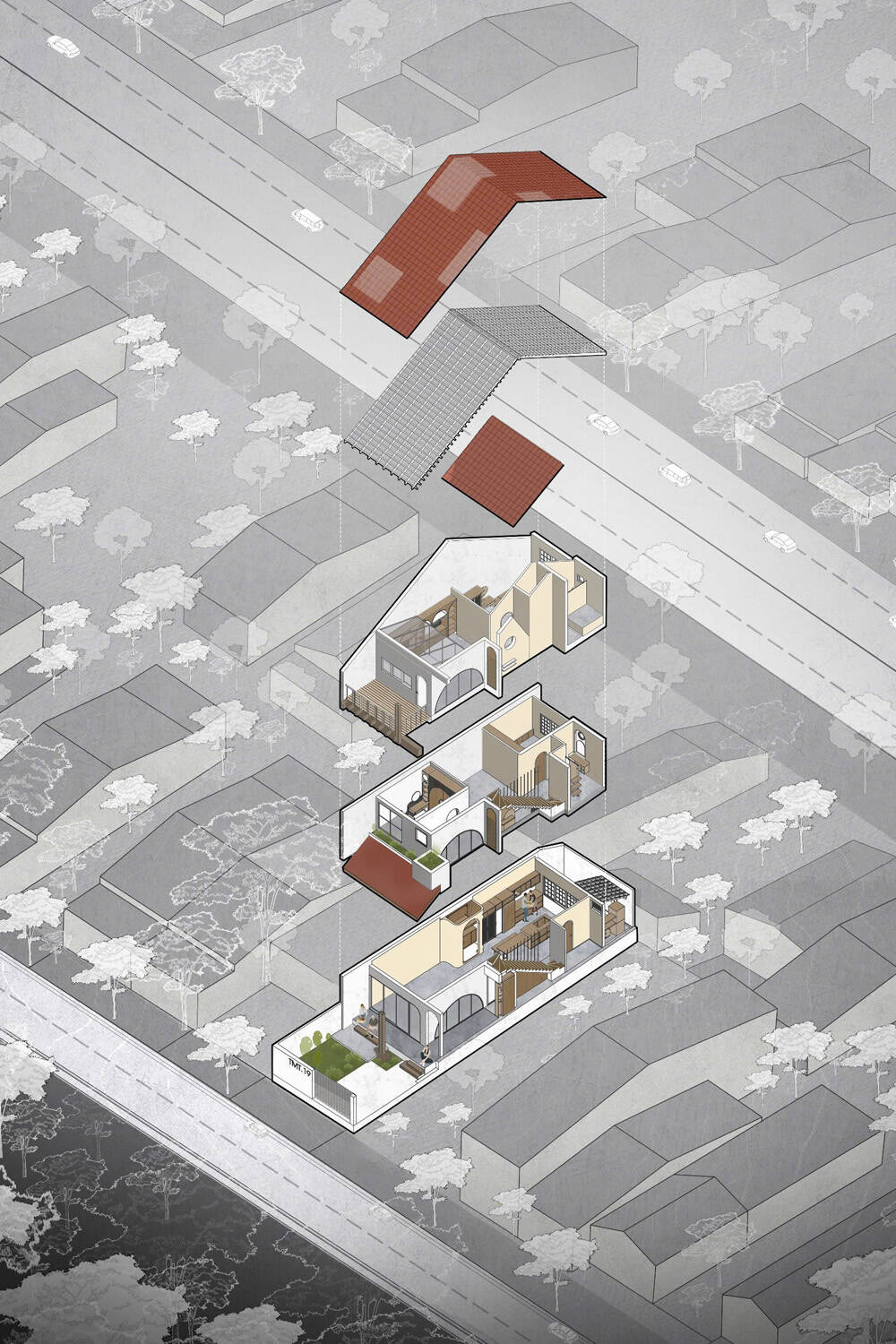Ngay từ đầu, M.Casa được định hướng là một giải pháp nhà ở quy mô nhỏ nhưng đầy đủ công năng. Thay vì mở rộng tối đa diện tích sàn, đội ngũ thiết kế đã gom ba phòng ngủ vào một khối liên thông gọn gàng, nhằm dành khoảng trống quý giá cho ánh sáng và gió tự nhiên. Hai khoảng lùi lớn trước và sau nhà trở thành những “vùng đệm sinh khí”, vừa đảm bảo sự riêng tư cần thiết, vừa tạo ra sự đối thoại nhẹ nhàng với môi trường đô thị xung quanh.
