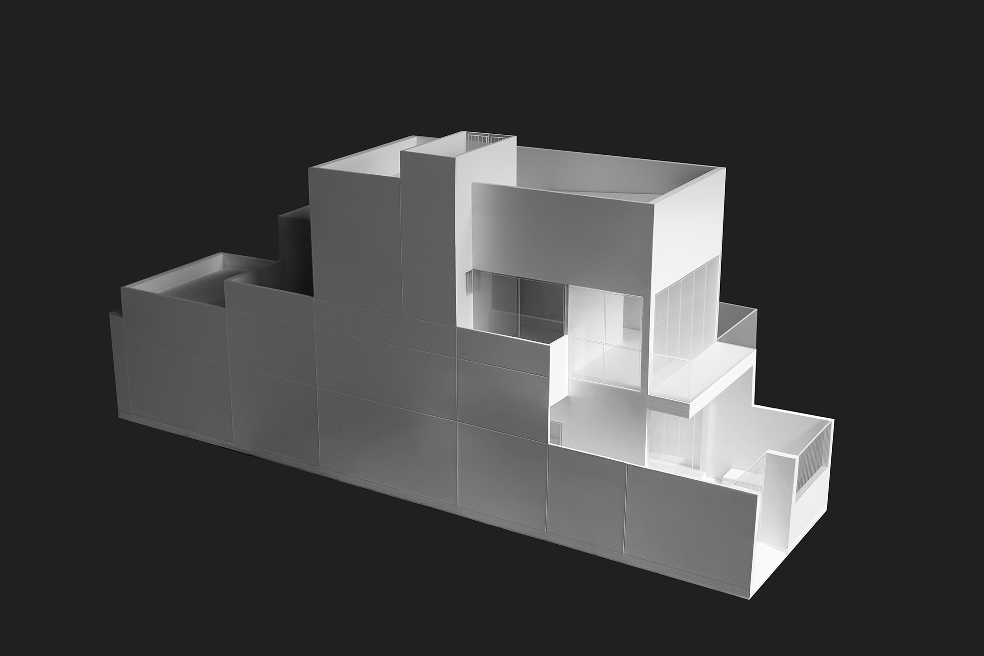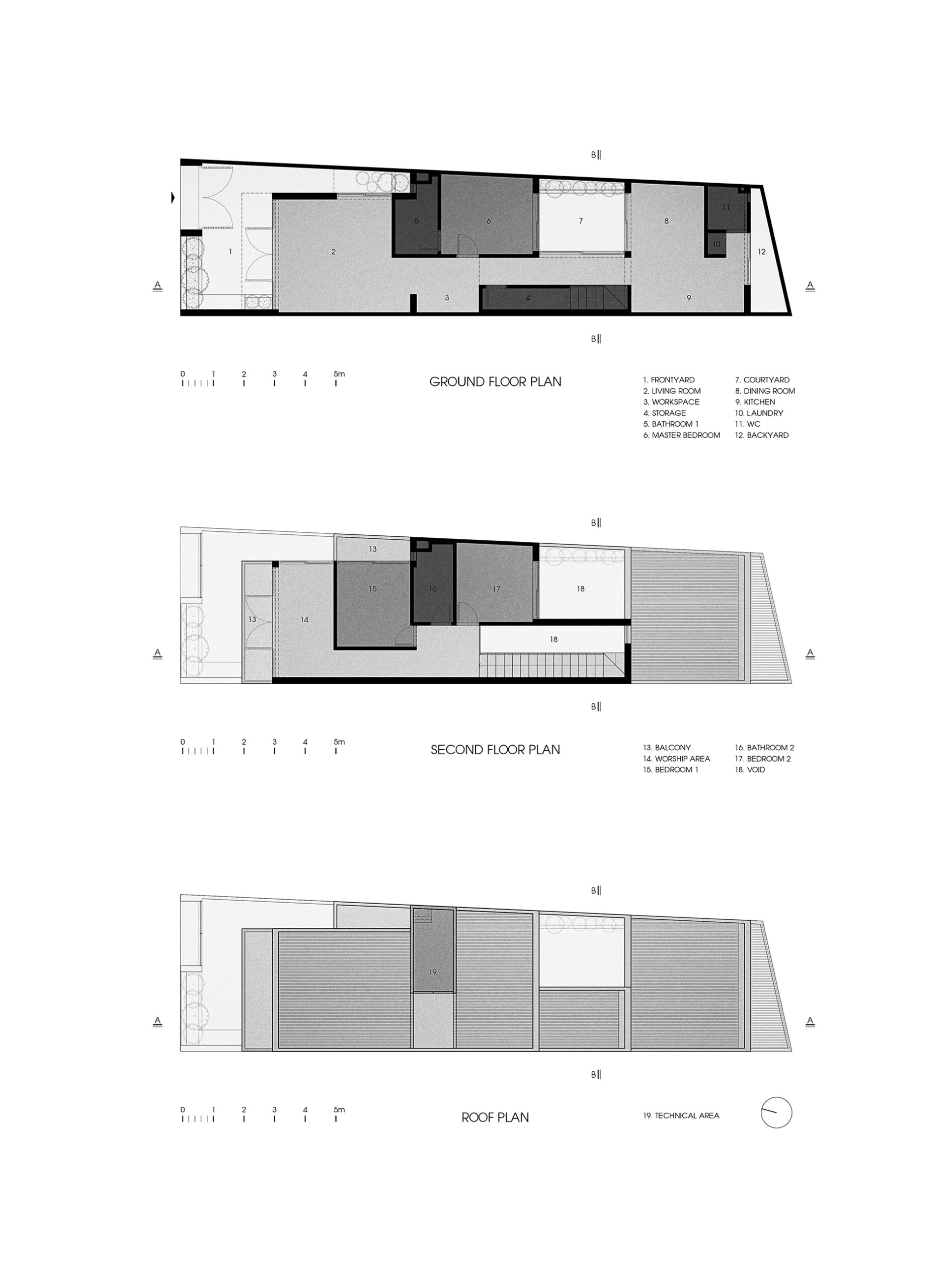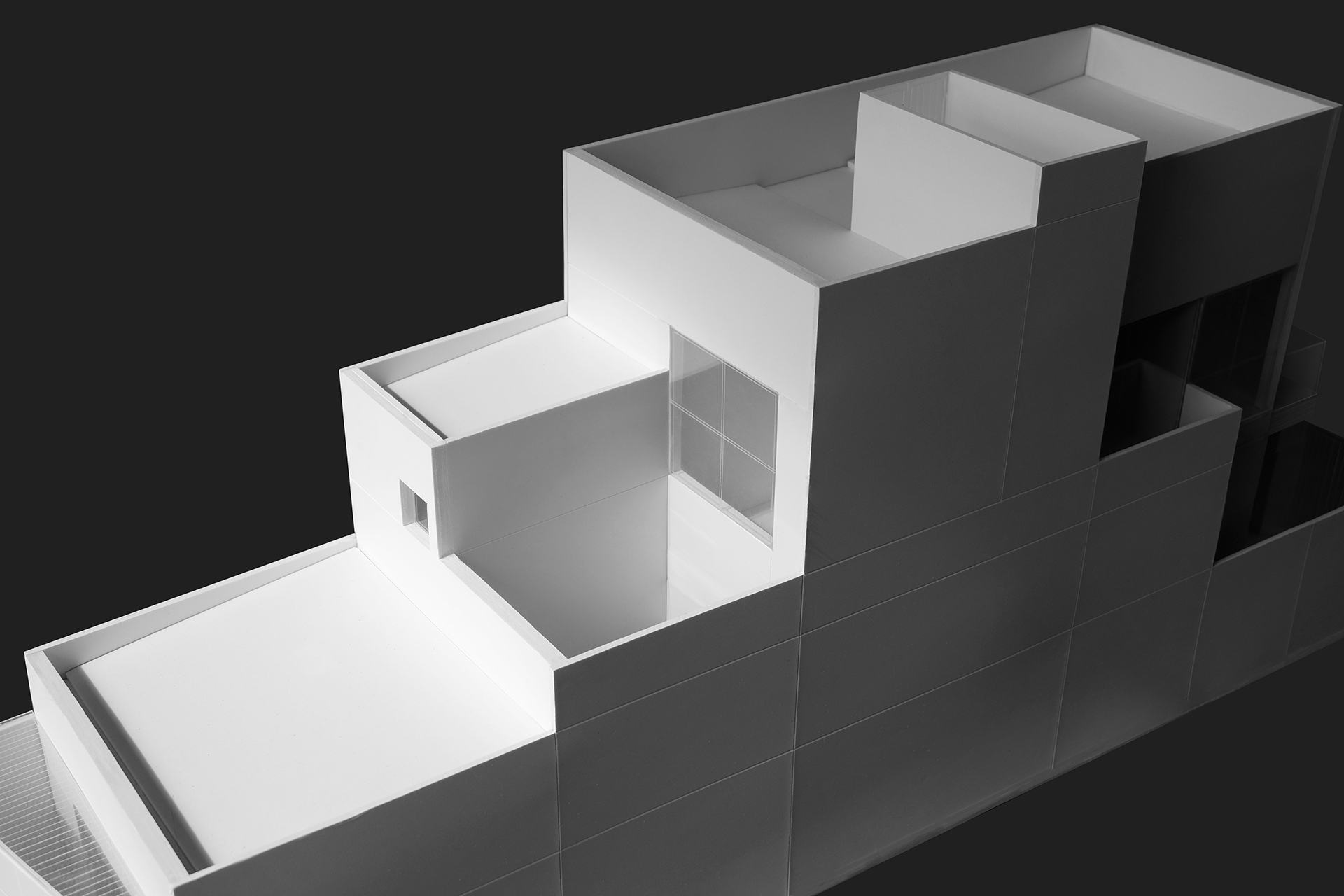 Cấu trúc hình khối của ngôi nhà dựa trên hình thái và vị trí khu đất. Cấu trúc này cao từ phía đường chính và phân cấp thấp dần về đường hẻm phía sau. Đây cũng là hướng mang lại nhiều phong vị của nơi chốn, được tổ chức các lỗ mở để đón ánh sáng và gió biển. Đặc tính của khu đất có một cạnh xiên nhẹ được khai thác để kiến tạo một cấu trúc hình học năng động về hướng Đông – Đông Nam.