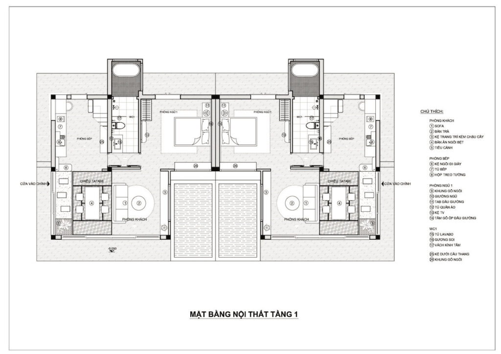Ở công trình này, song lập là một hình khối tốt ở mặt kiến trúc, làm hai căn hộ như một, bề thế và không bị lọt thỏm trong không gian lớn nhưng vẫn ấm cúng, cảm giác an toàn khi bên cạnh mình có hàng xóm, hai căn hộ có thể đi lại qua nhau bằng hiên nhà trước và sau.