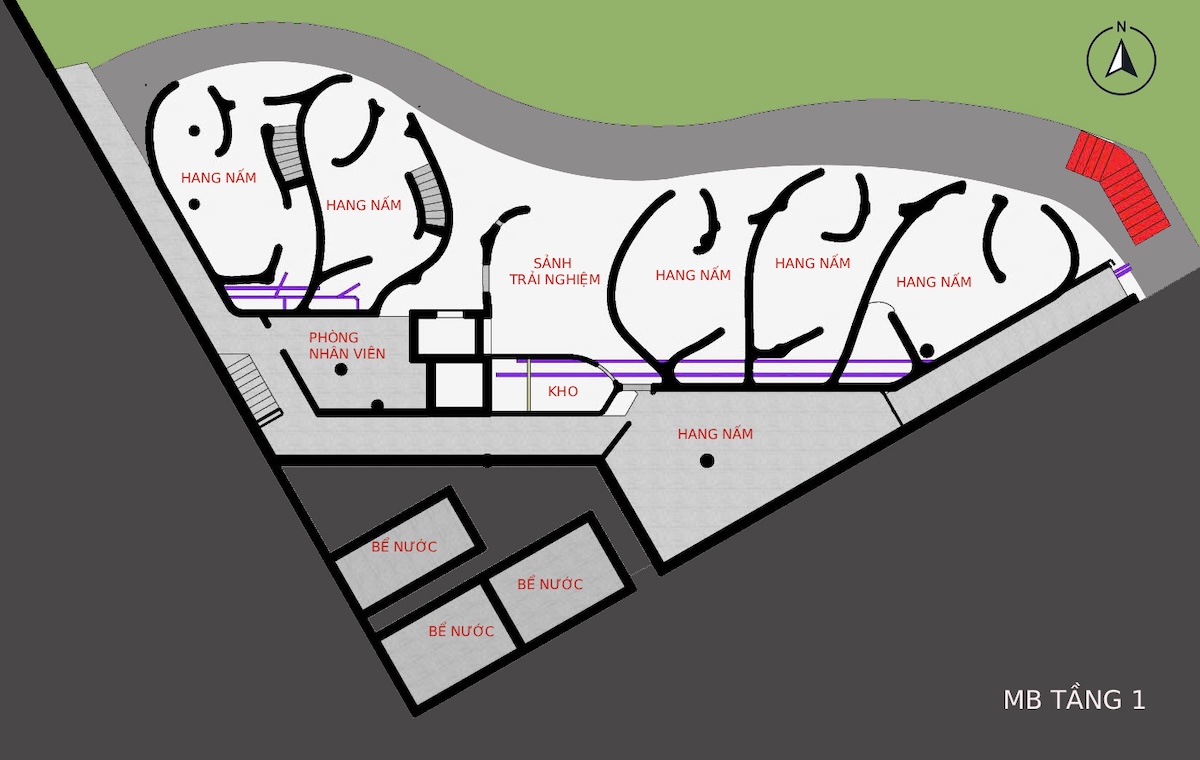 - Loại hình: Nhà hàng theo mô hình Farm to Table, kết hợp trồng nấm, sản xuất thực phẩm và trải nghiệm không gian sinh thái