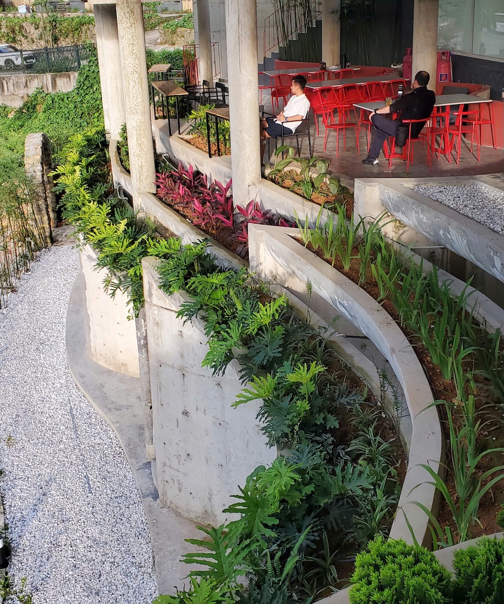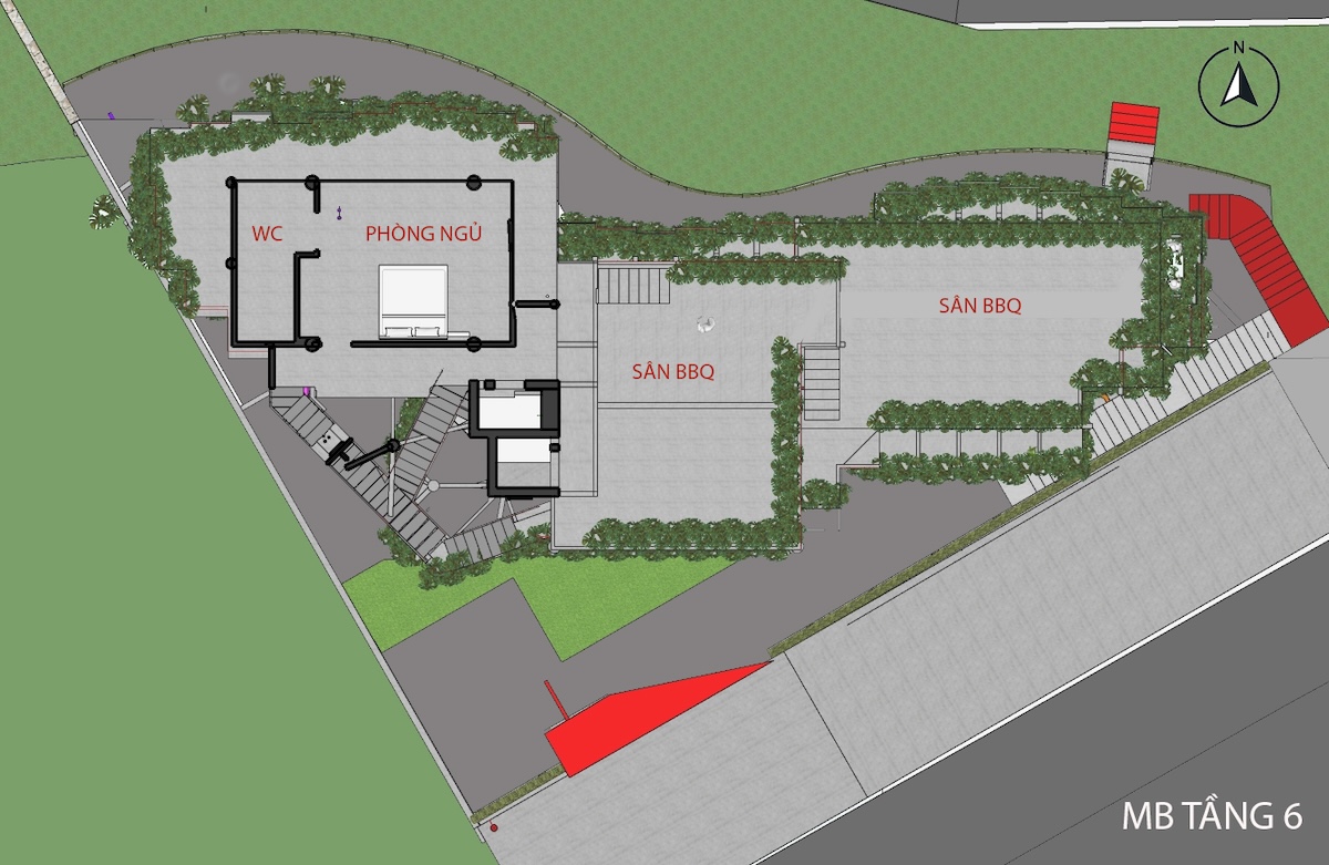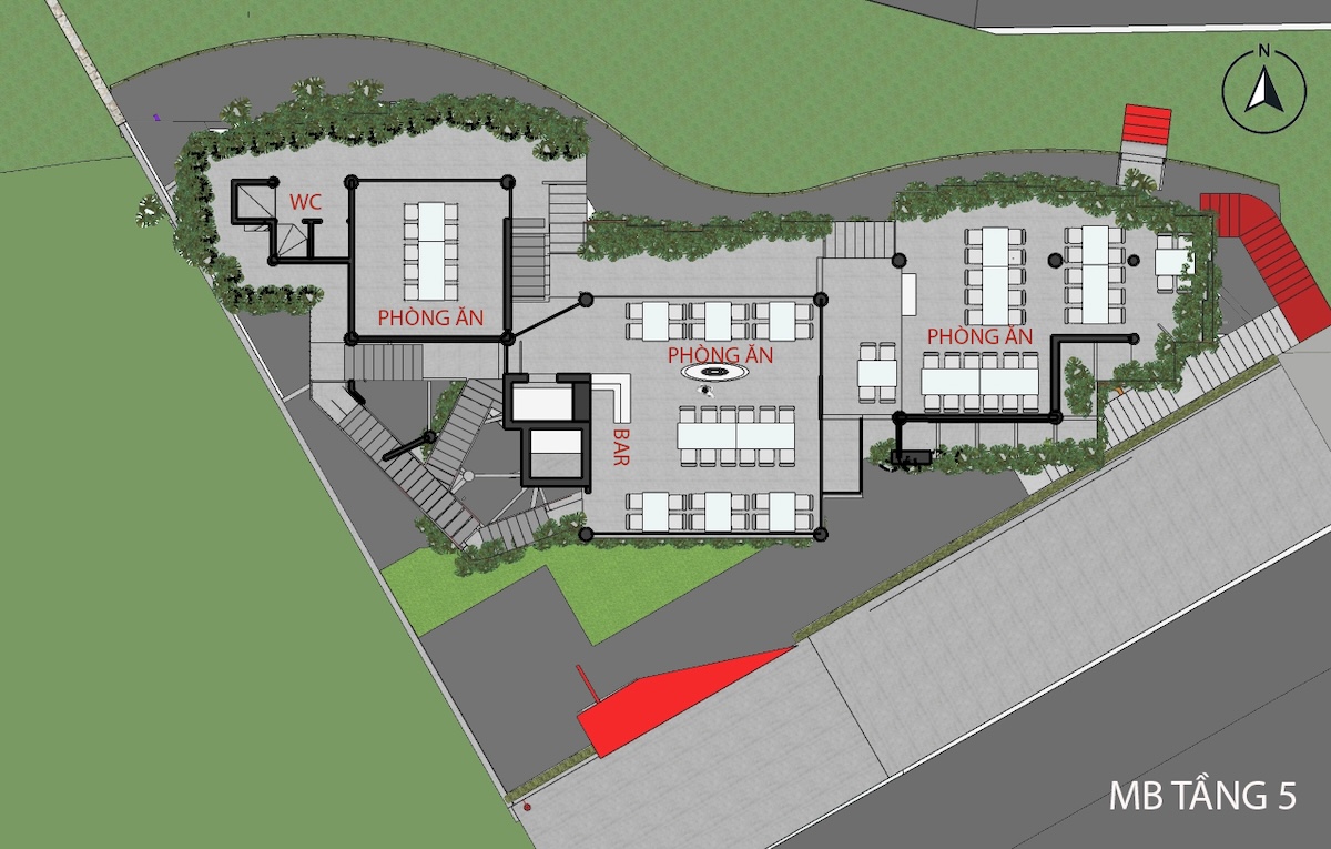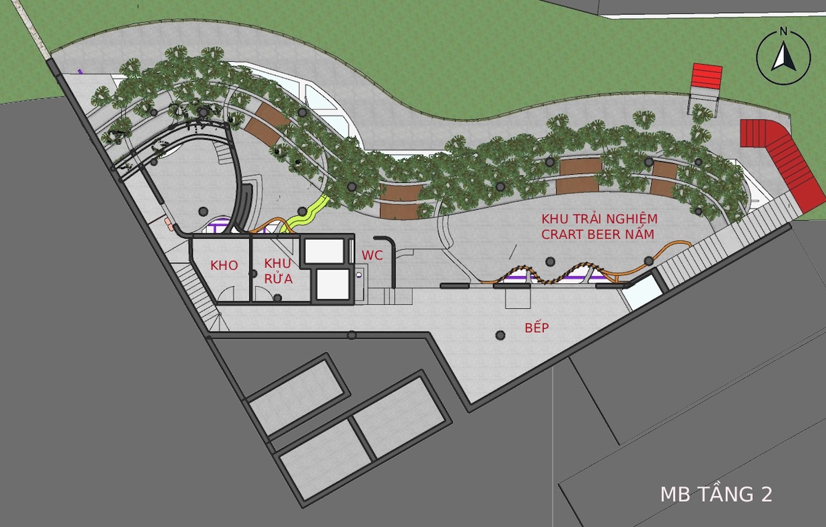 Cấu trúc cũ với nhiều đường thẳng và góc cạnh được giữ lại và can thiệp tối thiểu. Các đường cong và mảng xanh được đưa vào. Những mảng tường thô mộc được lựa chọn để giữ lại. Sau quá trình can thiệp, công trình gợi lên như một cây nấm khổng lồ. Chuyển động của con người trong công trình được dẫn dắt qua các đường cong liên tục, tạo cảm giác bước vào một môi trường sinh học hơn là một công trình kiến trúc truyền thống.