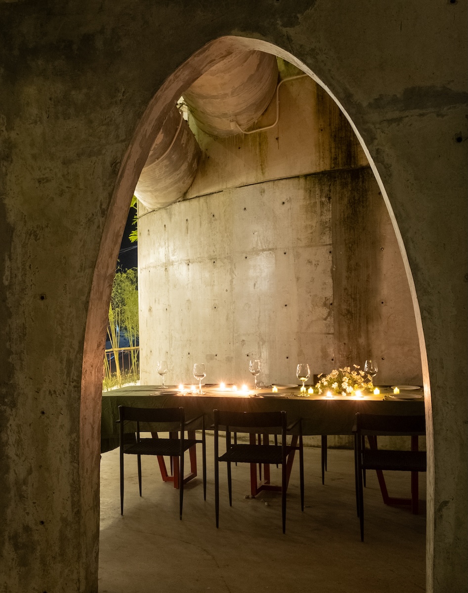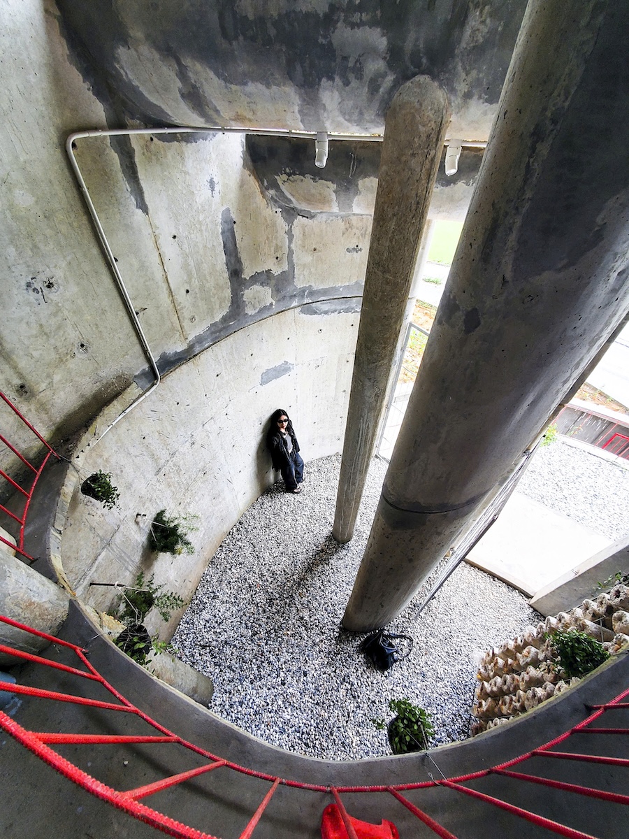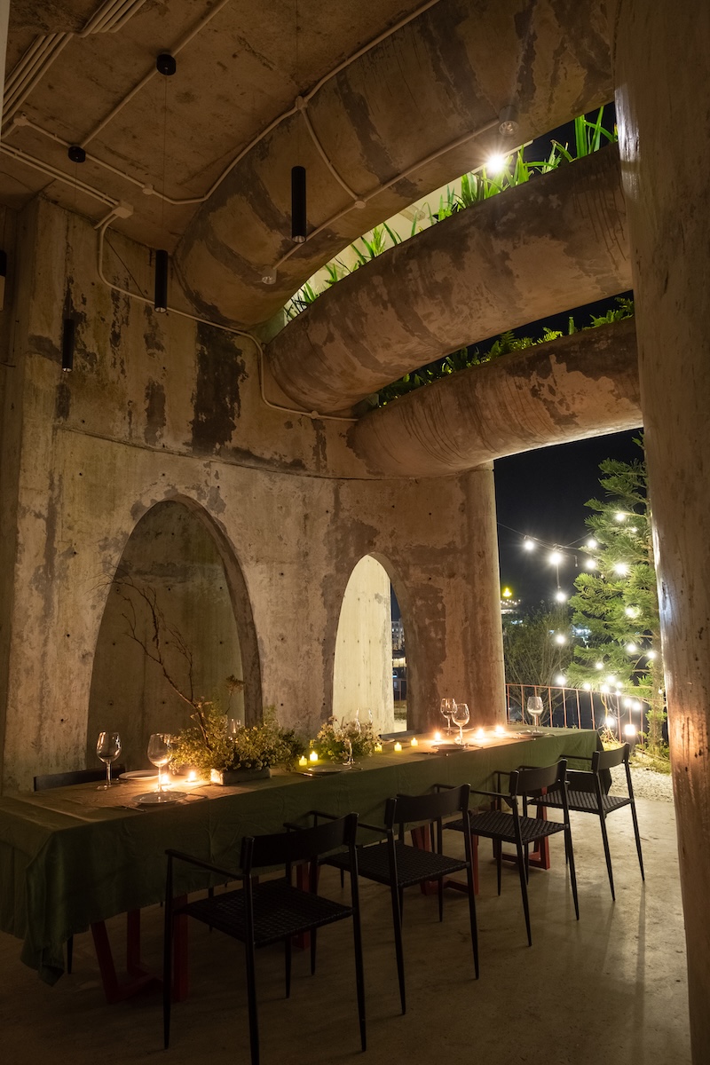 Đường cong tại MUFA không mang tính trang trí mà đóng vai trò cấu trúc và dẫn dắt chuyển động. Vật liệu tái sử dụng từ công trình cũ được chuyển hóa thành các yếu tố kiến trúc và tác phẩm nghệ thuật, tạo nên một không gian vừa thô mộc vừa giàu cảm xúc.