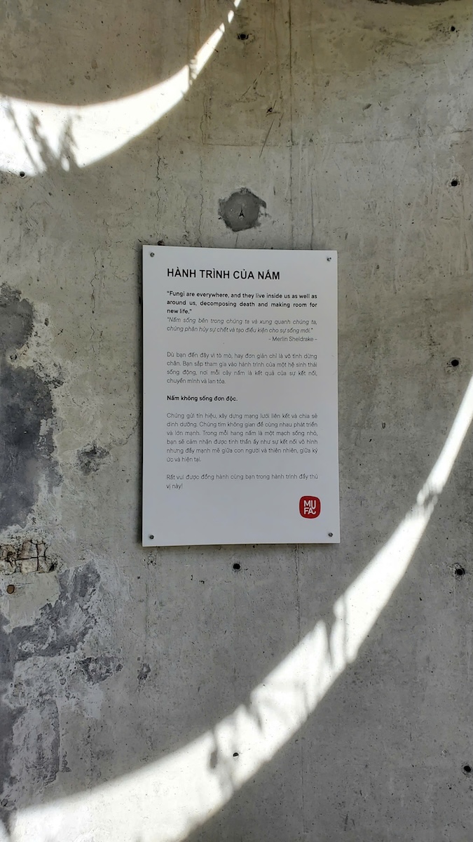 MUFA tọa lạc tại Tam Đảo, khu vực núi cao với độ ẩm lớn, sương mù dày và nền nhiệt mát quanh năm. Điều kiện vi khí hậu đặc thù này vừa là lợi thế tự nhiên, vừa là thách thức đối với các công trình kiến trúc. Công trình tiền thân của MUFA bị bỏ không trong nhiều năm, từng rơi vào trạng thái xuống cấp, ẩm thấp – những đặc điểm thường bị xem là bất lợi trong kiến trúc. Tuy nhiên, chính trong bối cảnh ấy, Kiến trúc sư nhận ra một khả năng khác: đây là môi trường lý tưởng cho nấm sinh trưởng – loài sinh thể phát triển mạnh trong điều kiện ẩm, tối và giàu vật chất hữu cơ.