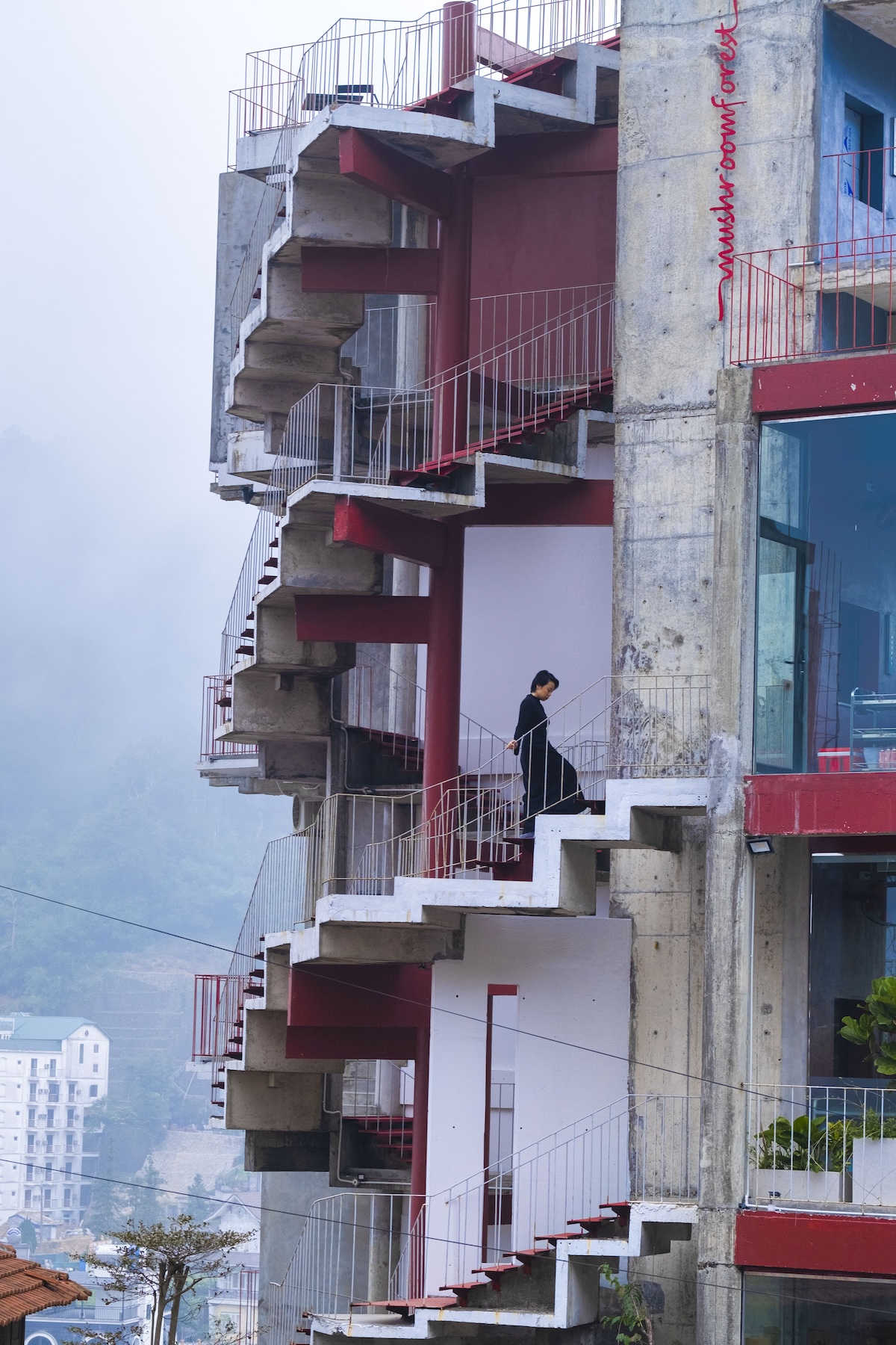 Thay vì chống lại điều kiện tự nhiên của Tam Đảo, MUFA lựa chọn đi cùng nó. Nấm không được đưa vào như một hình ảnh biểu tượng, mà như một giải pháp sinh học phù hợp với địa hình, khí hậu và trạng thái sẵn có của công trình.Thay vì cải tạo công trình theo hướng chống ẩm, tách biệt với môi trường, kiến trúc sư chủ động giữ lại trạng thái ẩm, thô và không hoàn hảo, coi đó là điều kiện khởi sinh cho một hệ sinh thái mới