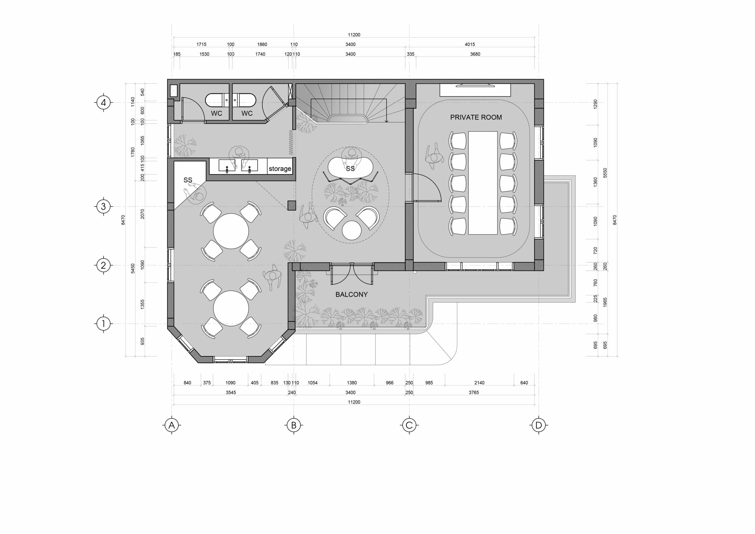 Một cách tình cờ, nhà hàng NEPHELE (có nghĩa là đám mây trong tiếng Hy Lạp) lại trùng hợp tọa lạc trên con đường Nguyễn Cửu Vân, con đường mang tên một danh tướng, danh thần và danh nhân dân tộc. Nắm bắt chi tiết đặc biệt này, Red5 chọn mây trở thành nguồn cảm hứng chủ đạo trong thiết kế. Từ đám mây – hình ảnh ẩn dụ của thứ bao trùm lên cuộc sống chúng ta, team liên tưởng đến chiếc lồng bàn – vật dụng bao trùm bữa cơm gia đình Việt. Từ đó, hai chi tiết này được kết hợp và tái hiện trong không gian nhà hàng.
