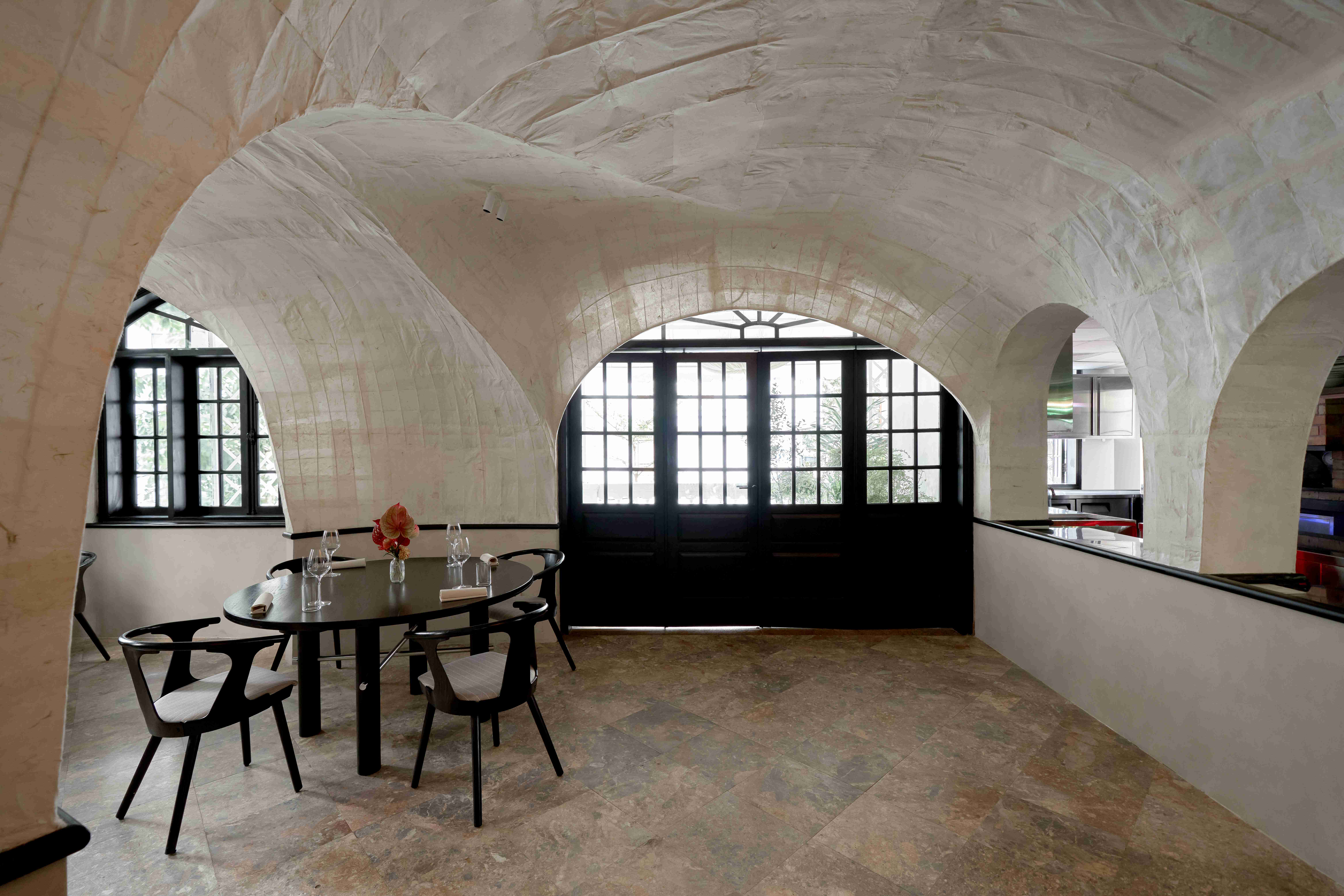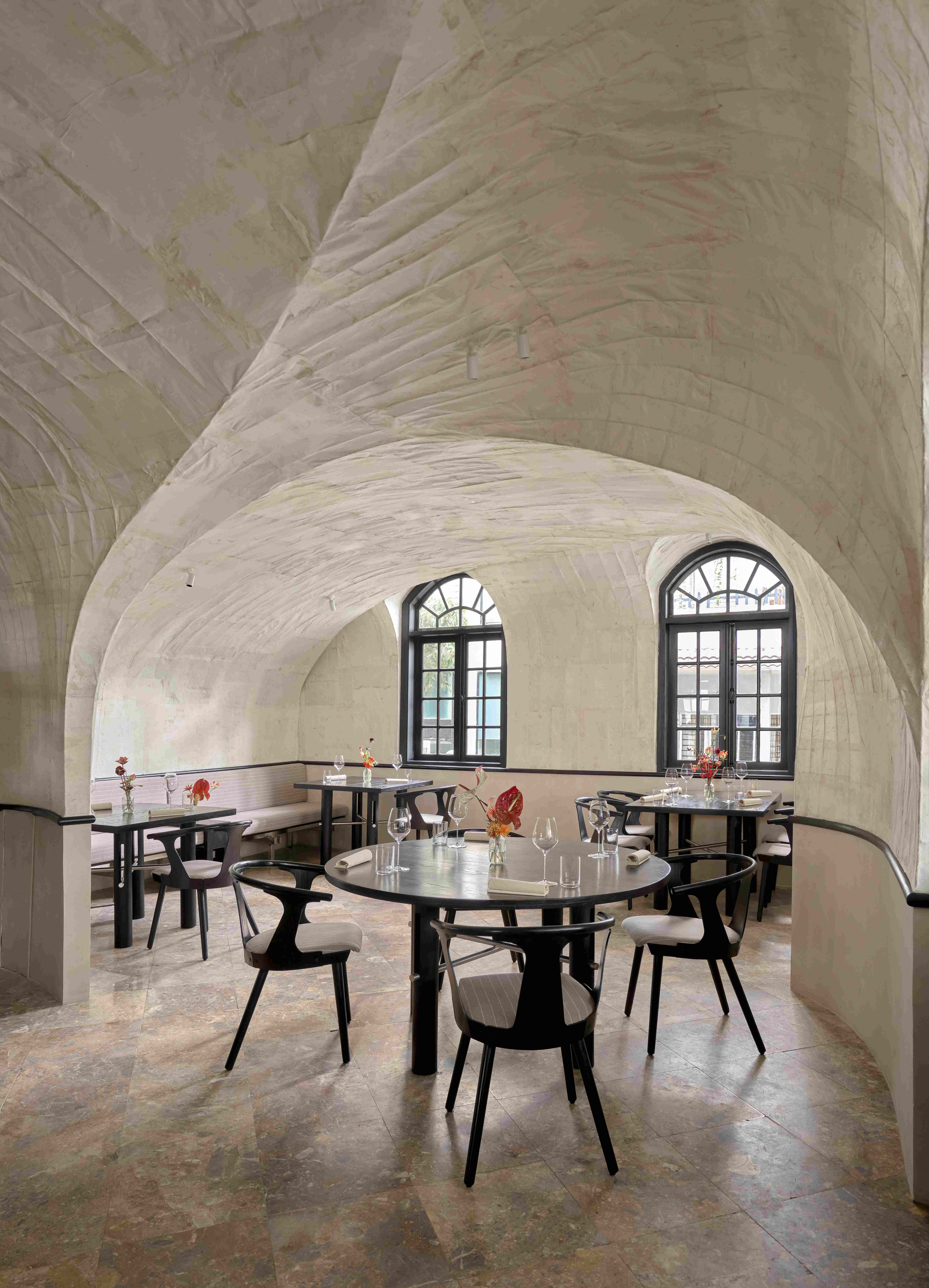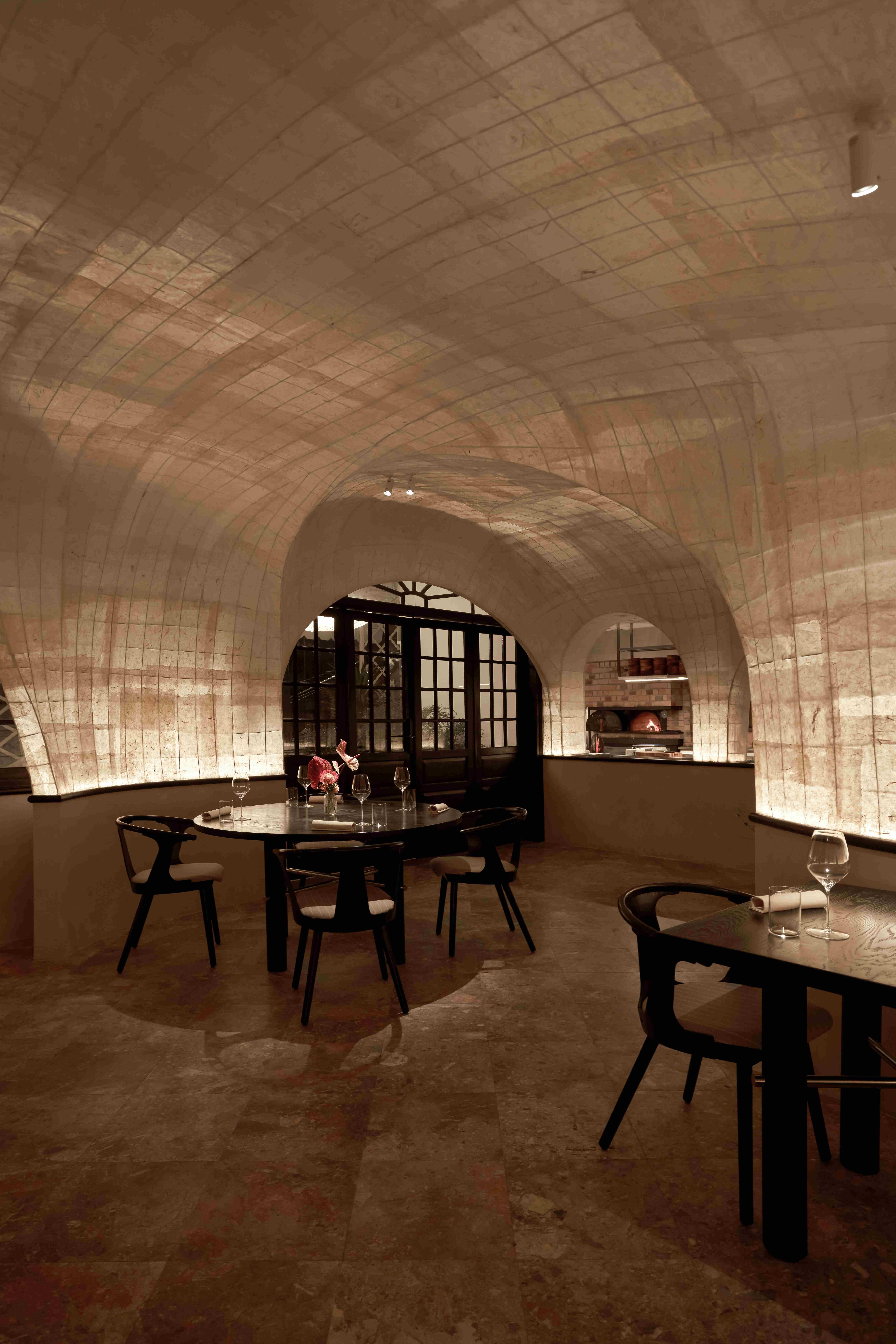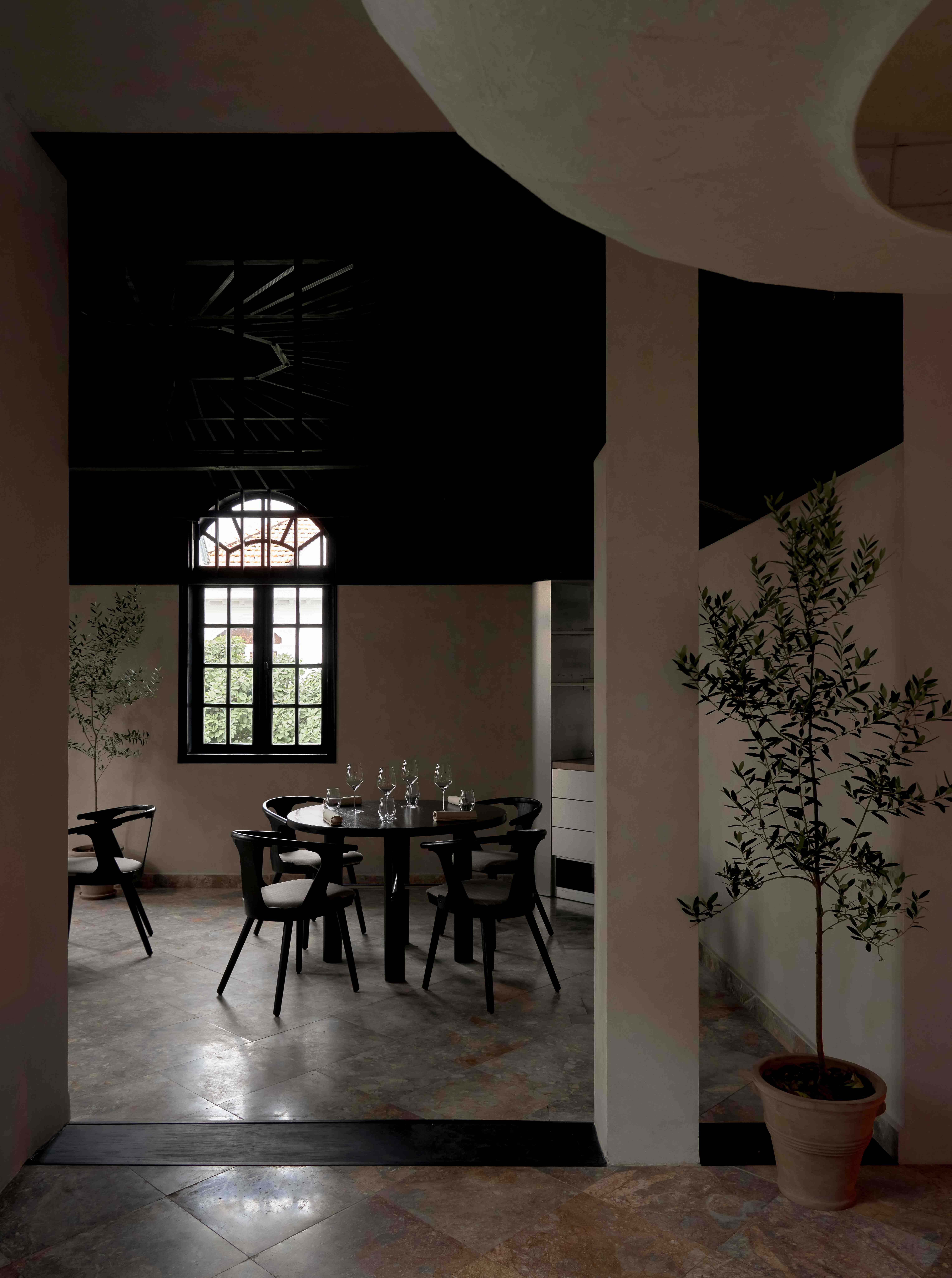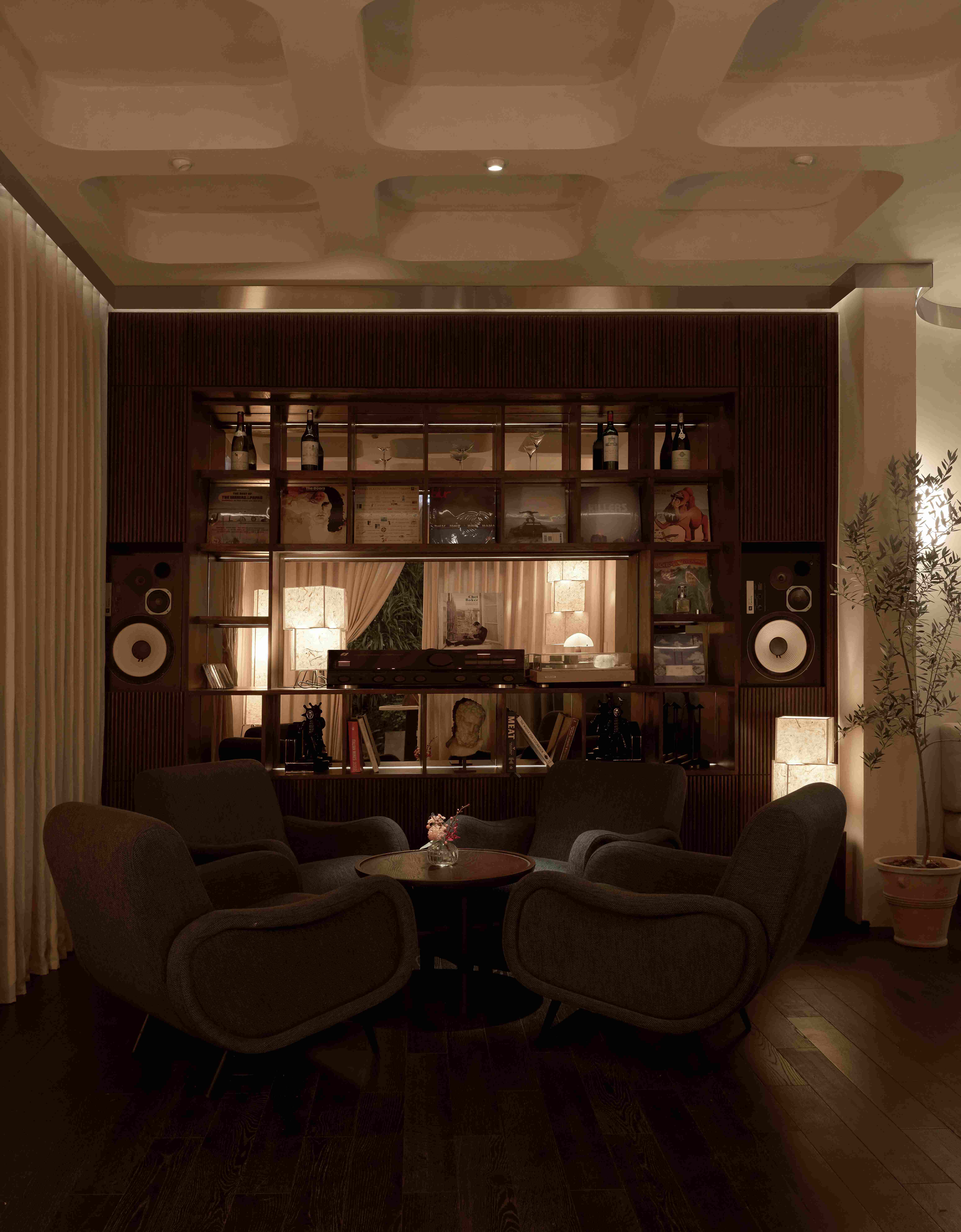 Các vòm cửa lớn trong không gian tạo ra bầu không khí thân thiện và chào đón, cùng với bộ sưu tập đĩa than mang tính cá nhân của chủ đầu tư trong phòng khách đã mở đầu cho hành trình dẫn dắt thực khách đi qua những cung bậc cảm xúc được gọi là “nhà” – gần gũi và ấm cúng.