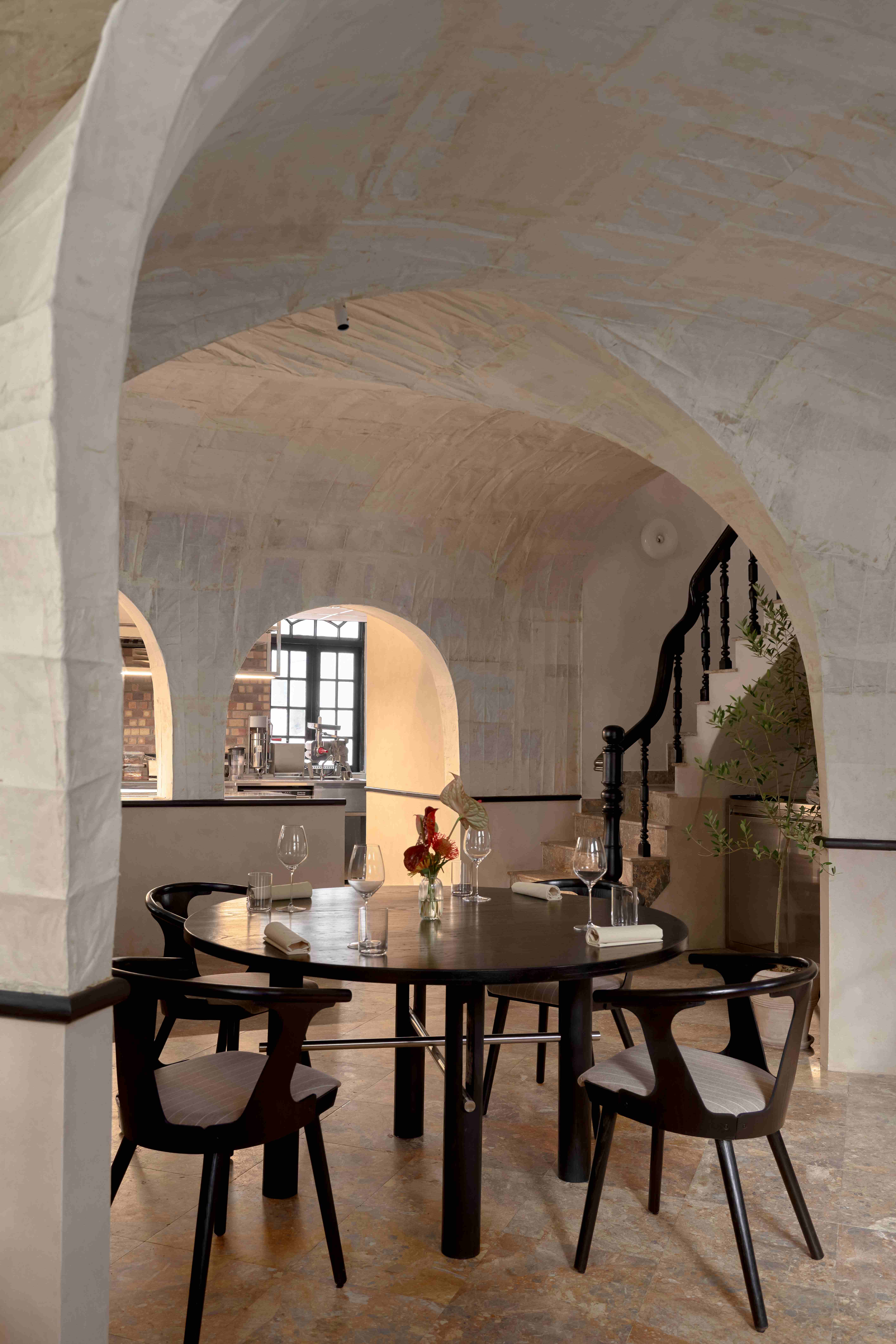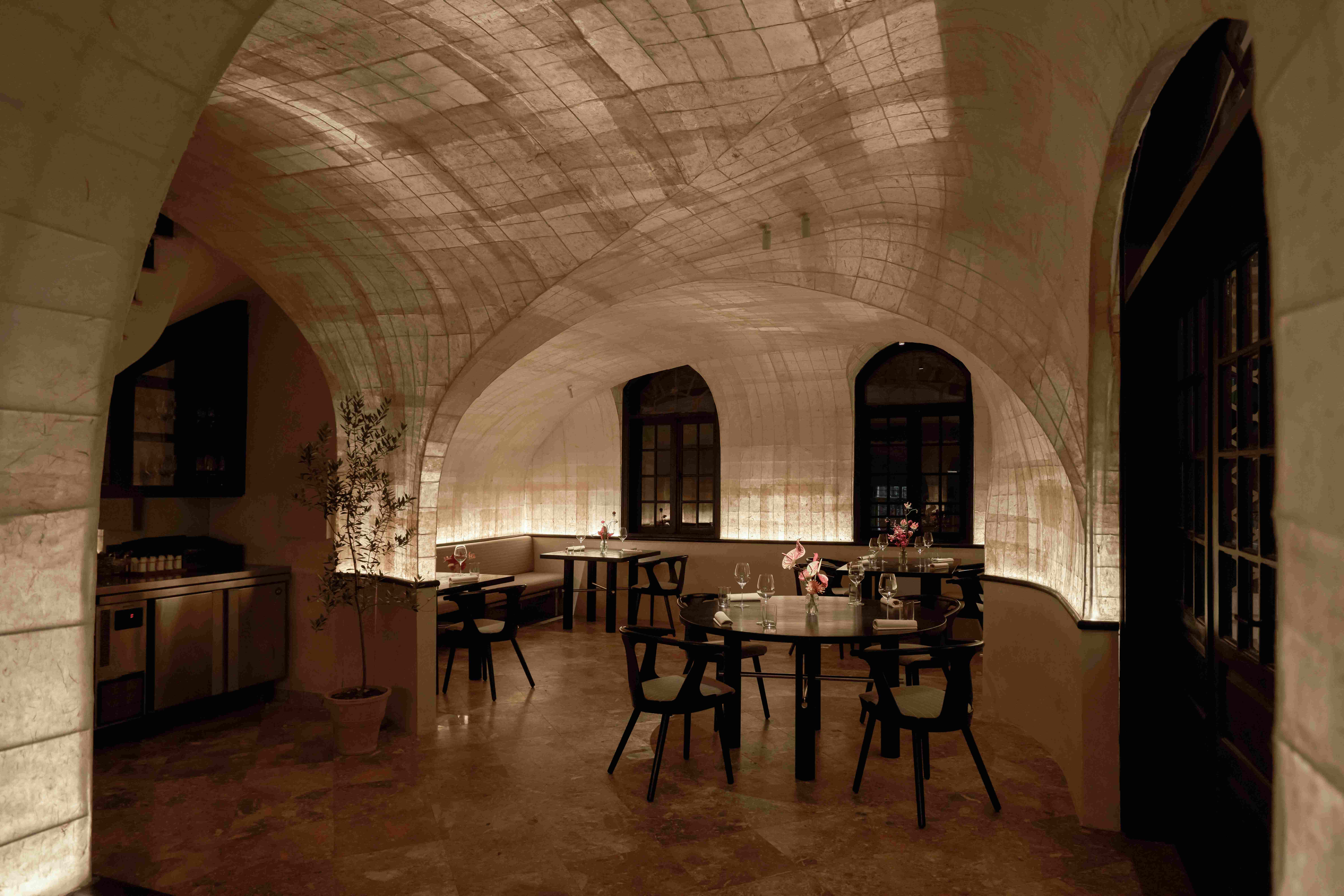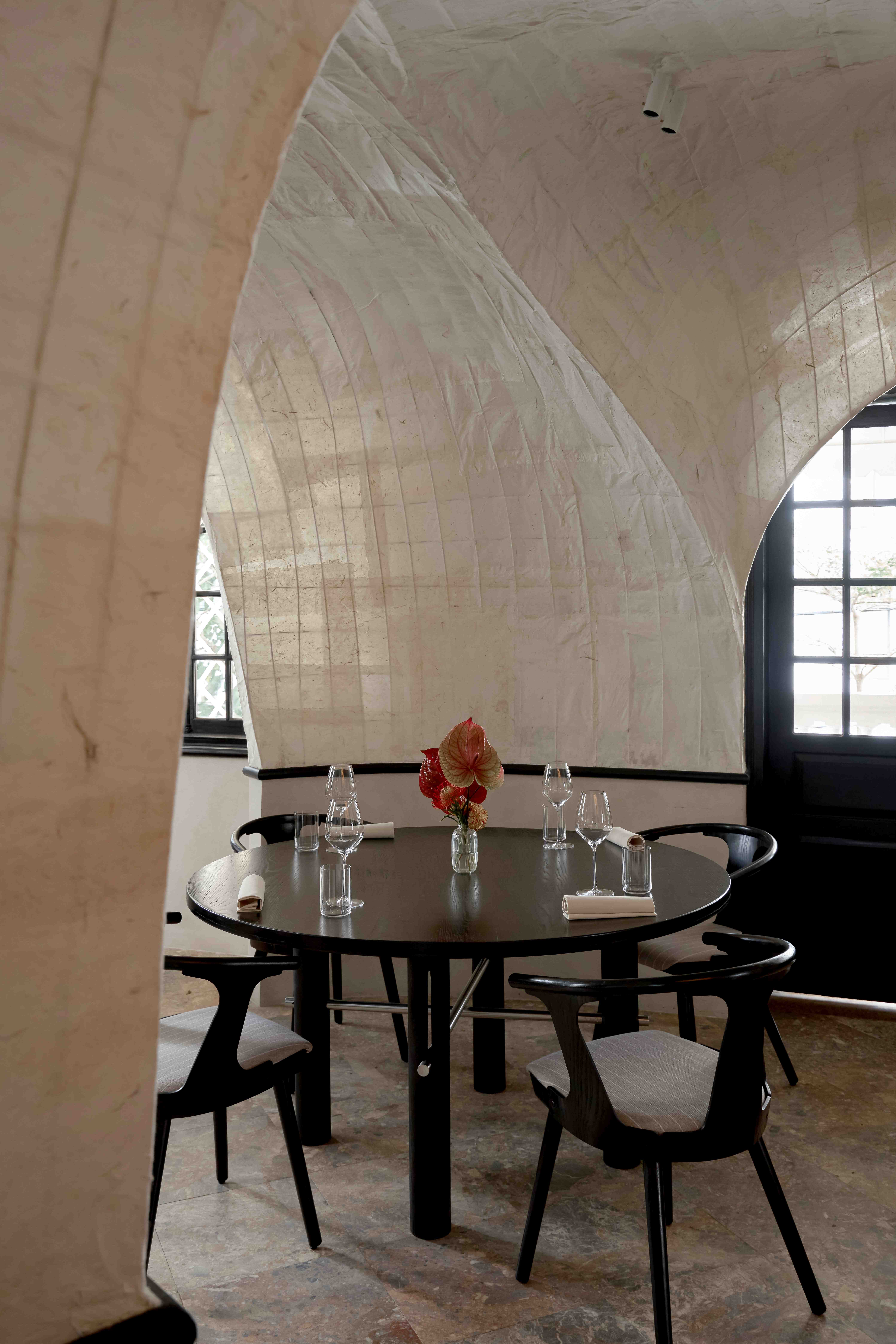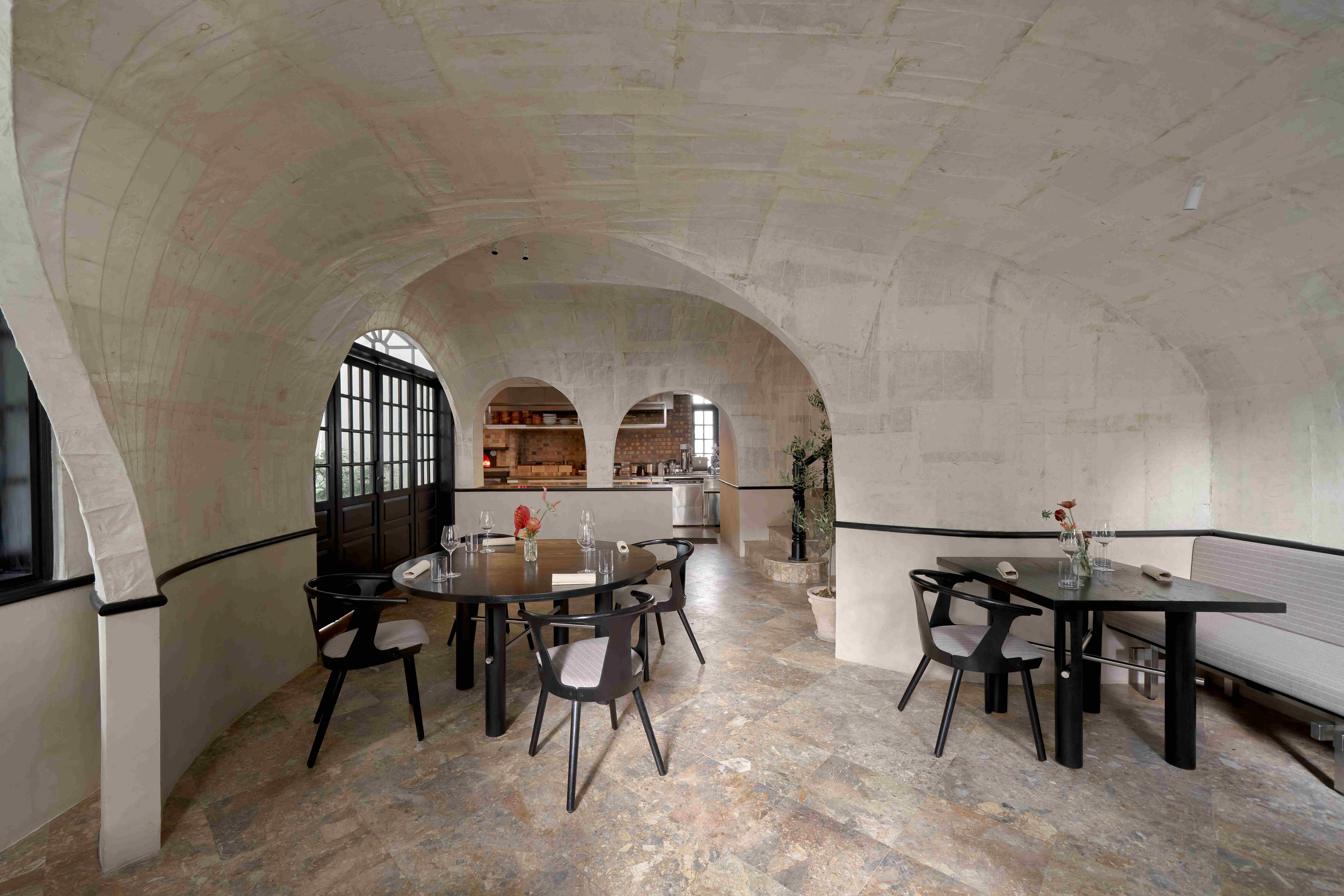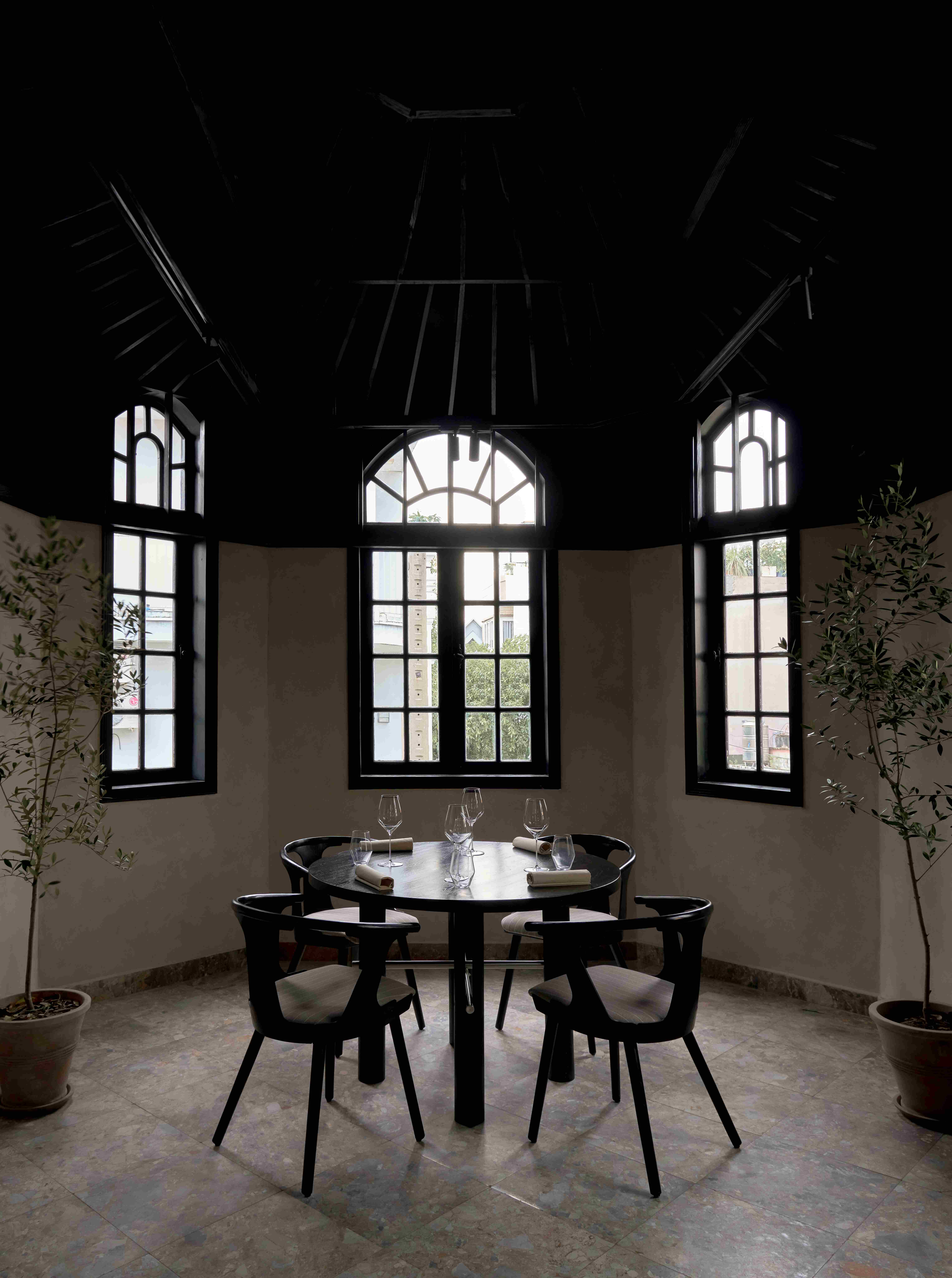 Các vòm cửa lớn trong không gian tạo ra bầu không khí thân thiện và chào đón, cùng với bộ sưu tập đĩa than mang tính cá nhân của chủ đầu tư trong phòng khách đã mở đầu cho hành trình dẫn dắt thực khách đi qua những cung bậc cảm xúc được gọi là “nhà” – gần gũi và ấm cúng.
