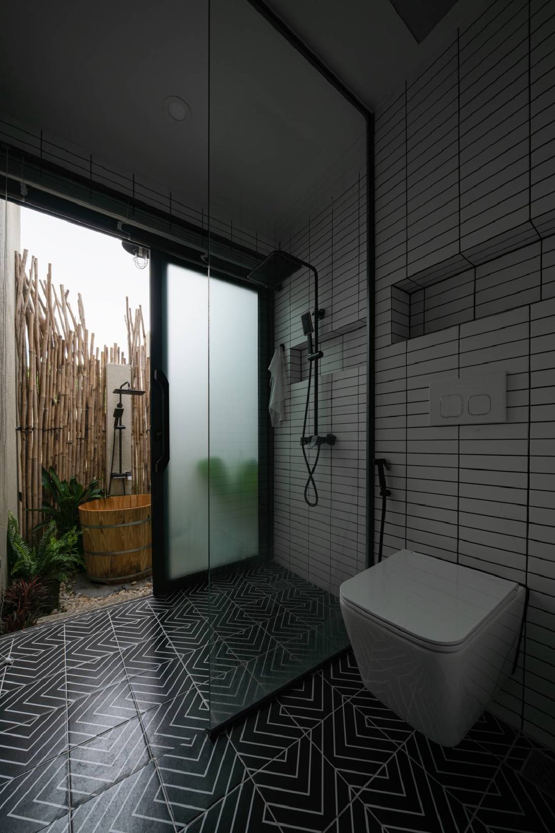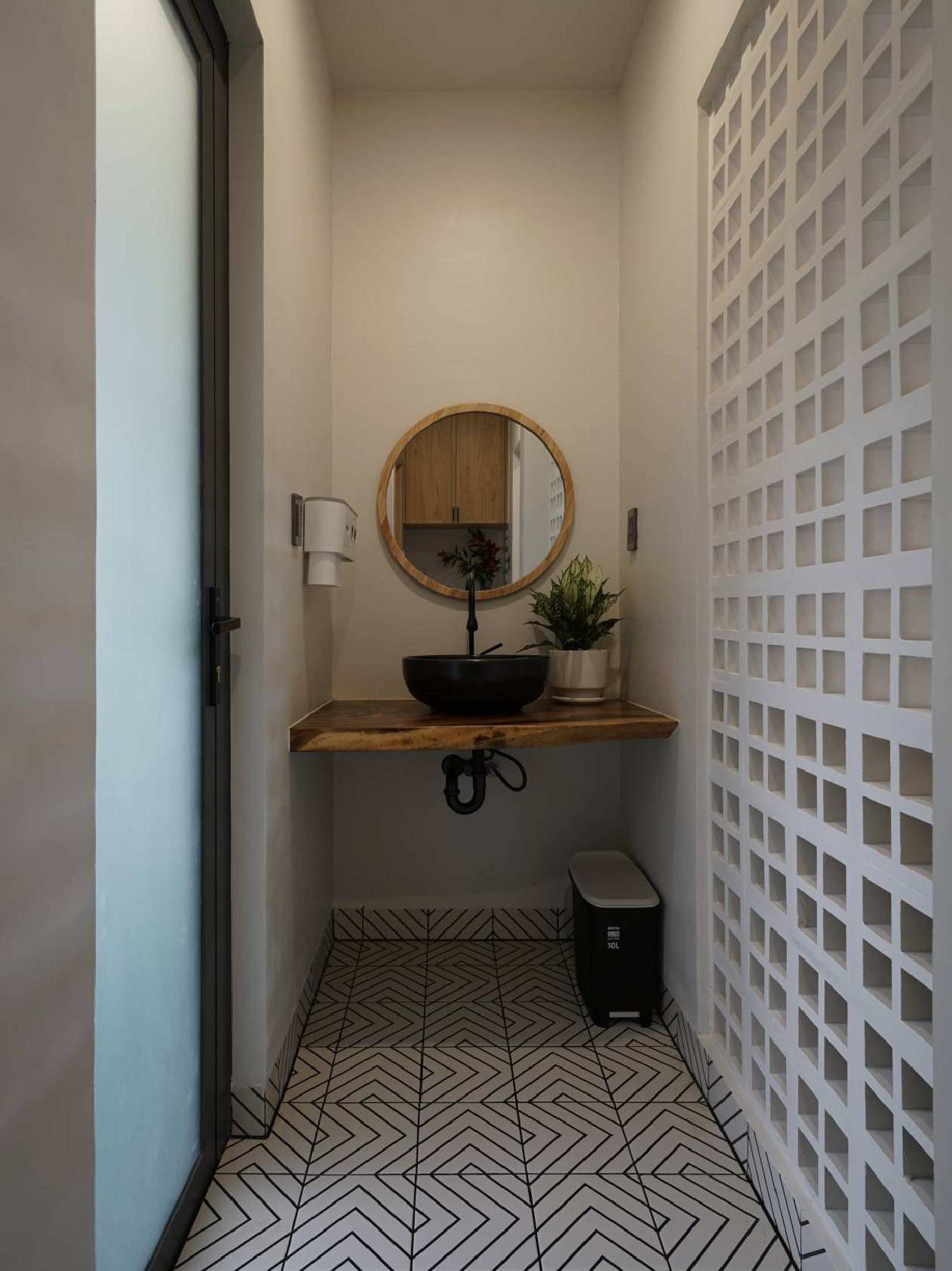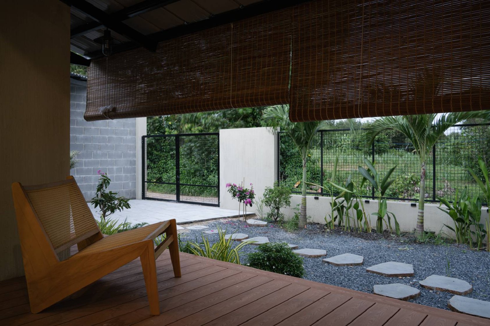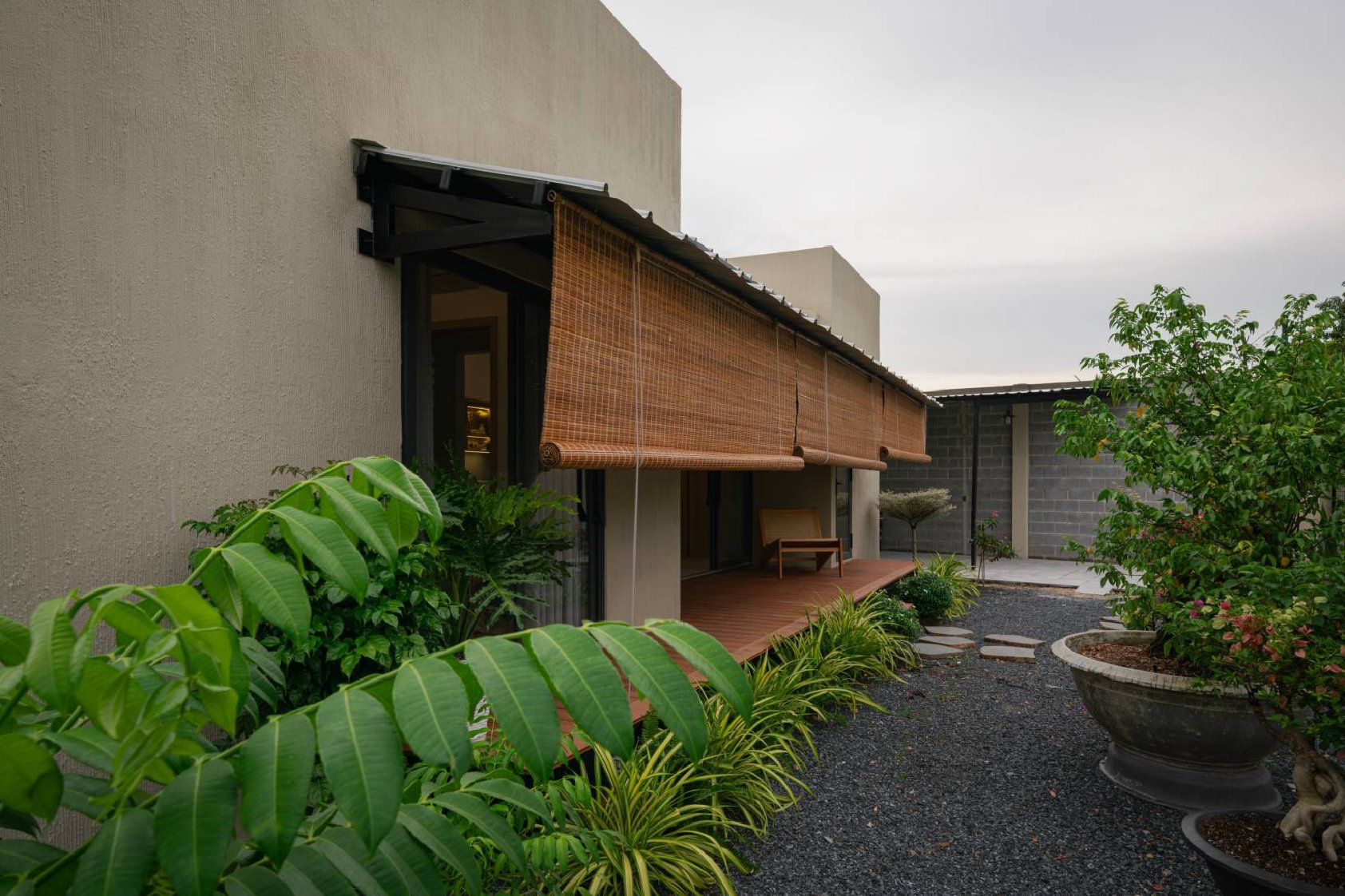Dù diện tích sàn được tối ưu hóa chỉ hơn $50m^2$, công trình vẫn thể hiện tư duy quy hoạch mạch lạc và linh hoạt. Mọi chi tiết kiến trúc, từ tỷ lệ hình khối đến sự chuyển tiếp giữa các diện đặc – rỗng, đều được xử lý tinh xảo để đạt được sự sang trọng trong tính tối giản. Sự kết hợp giữa vật liệu bản địa như gạch bông, gỗ, cùng hệ mái tôn hiện đại đã tạo nên một dòng chảy thị giác đầy hoài niệm nhưng không xa rời nhịp sống mới.