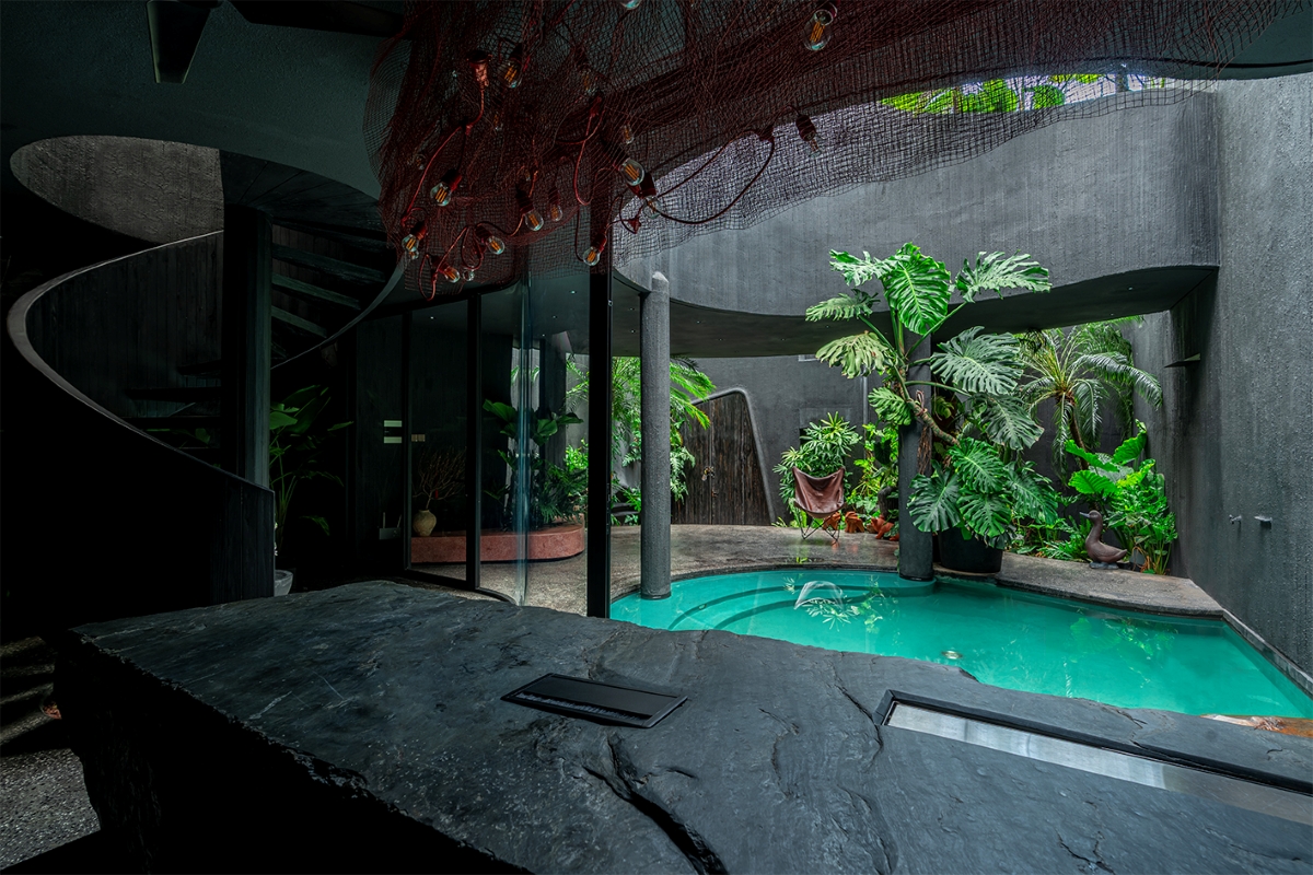 Tinh thần chủ đạo của công trình nằm ở sự tương phản: giữa thô ráp và tinh tế, giữa khép kín và mở thoáng, giữa cũ và mới. Những đối lập này không chỉ mang giá trị thẩm mỹ mà còn phản ánh lối sống đương đại, nơi ranh giới giữa con người và thiên nhiên dần được xóa nhòa.