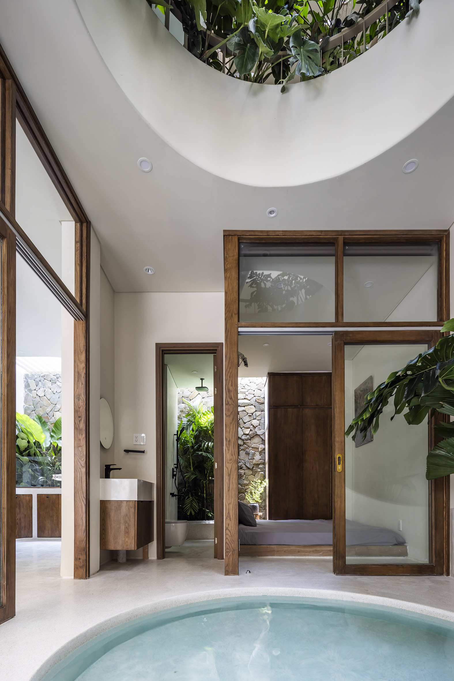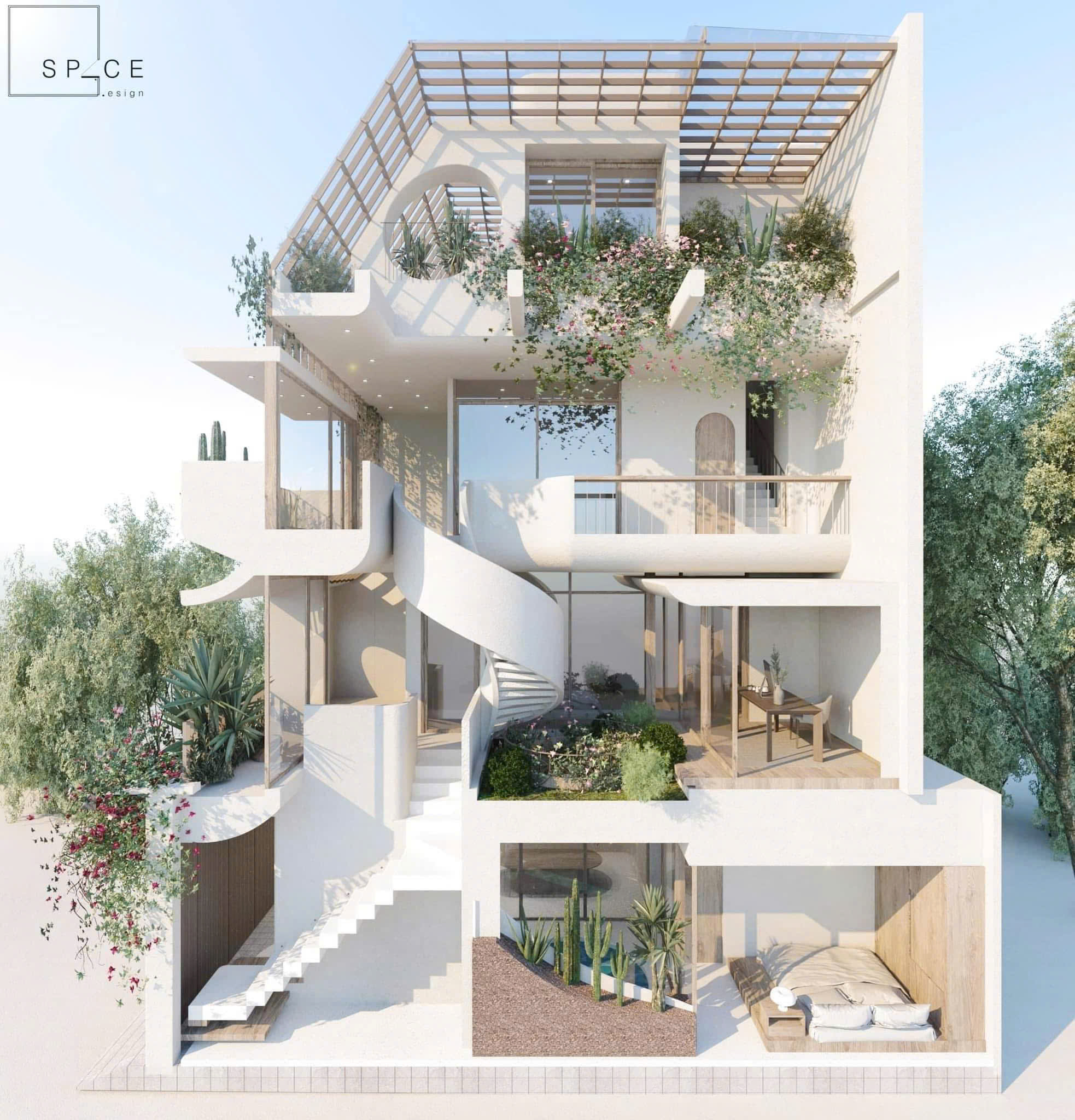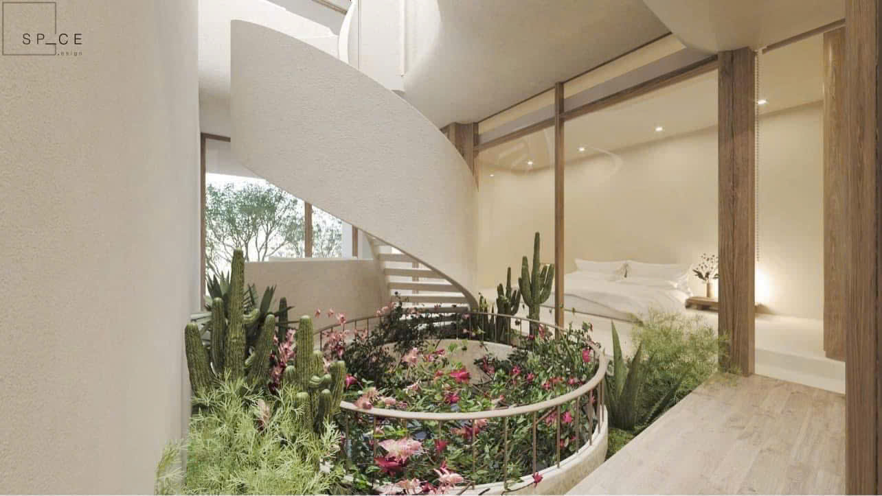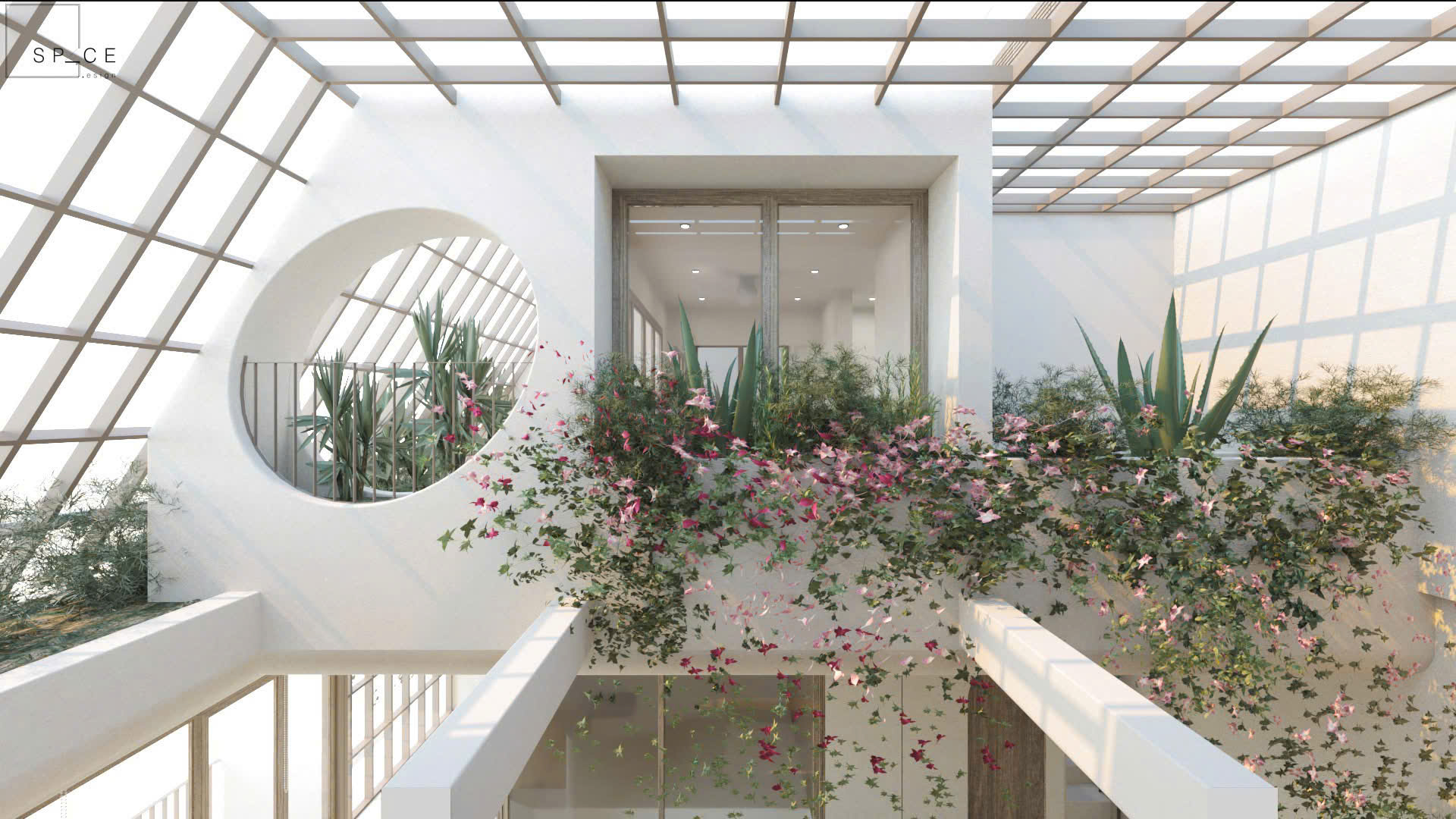 Điểm cốt lõi của dự án là việc thay thế trục giao thông truyền thống bằng một “lá phổi xanh” xuyên tâm. Từ hạt nhân này, các không gian chức năng được phát triển theo phương đứng, tạo ra một hệ sinh thái chuyển động liên tục. Ý tưởng chủ đạo xoay quanh cấu trúc “nhà trong nhà” – nơi các khối tích có quy mô và cao độ khác biệt được sắp đặt đan xen, tạo nên một trải nghiệm không gian đa lớp, biến đổi linh hoạt theo từng góc nhìn và nhịp điệu chuyển động của người sử dụng.