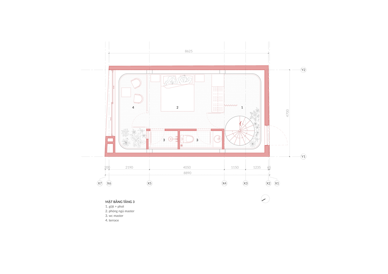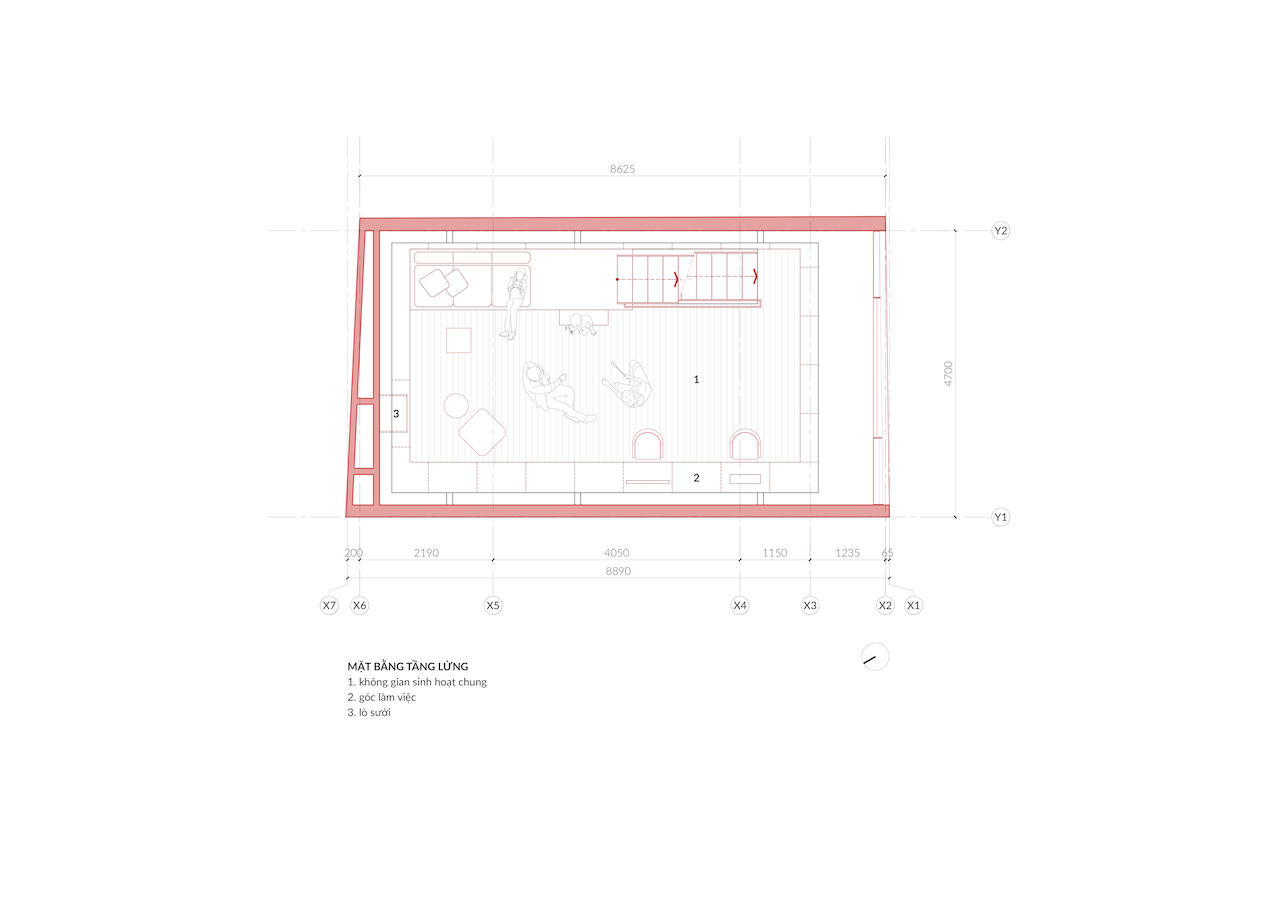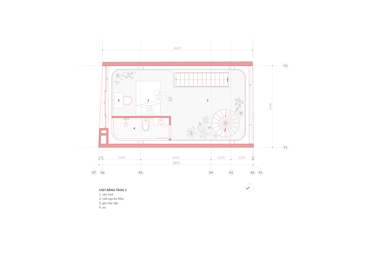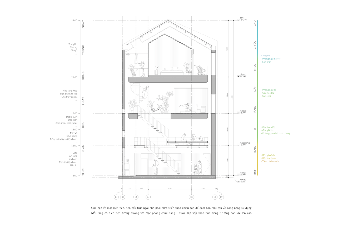 Trên diện tích khiêm tốn 43.6 m2, “Nhà của Mây” là một thực thể kiến trúc hướng tới mô hình nhà ở bền vững trong vùng lõi đô thị Đà Lạt. Logic thiết kế tập trung vào việc giải phóng cảm giác chật chội bằng cách phá vỡ cấu trúc sàn – tường – trần thông thường.