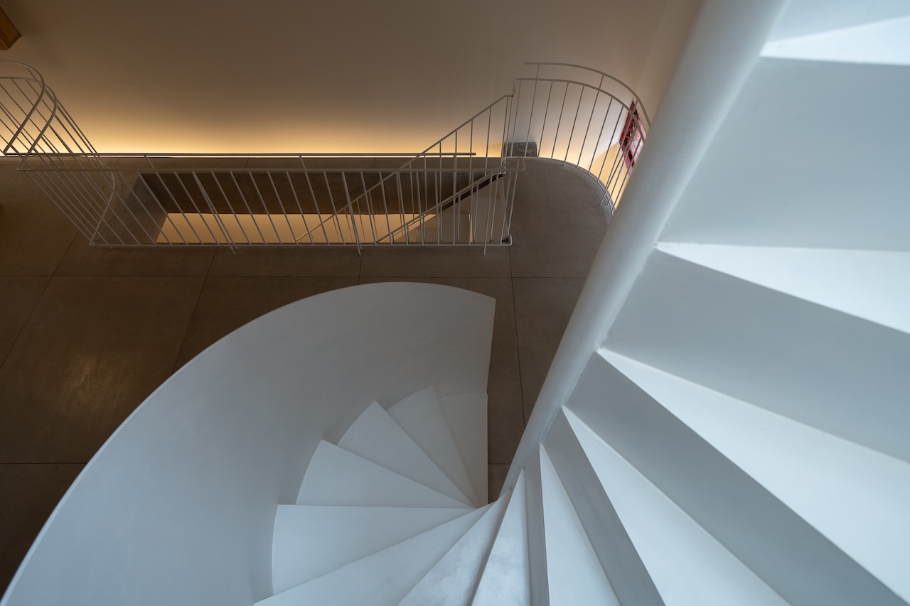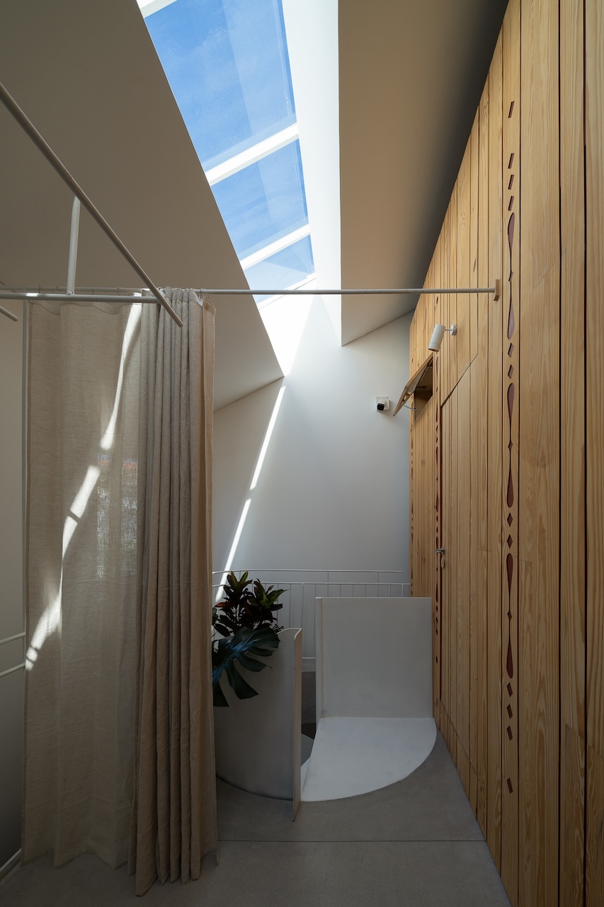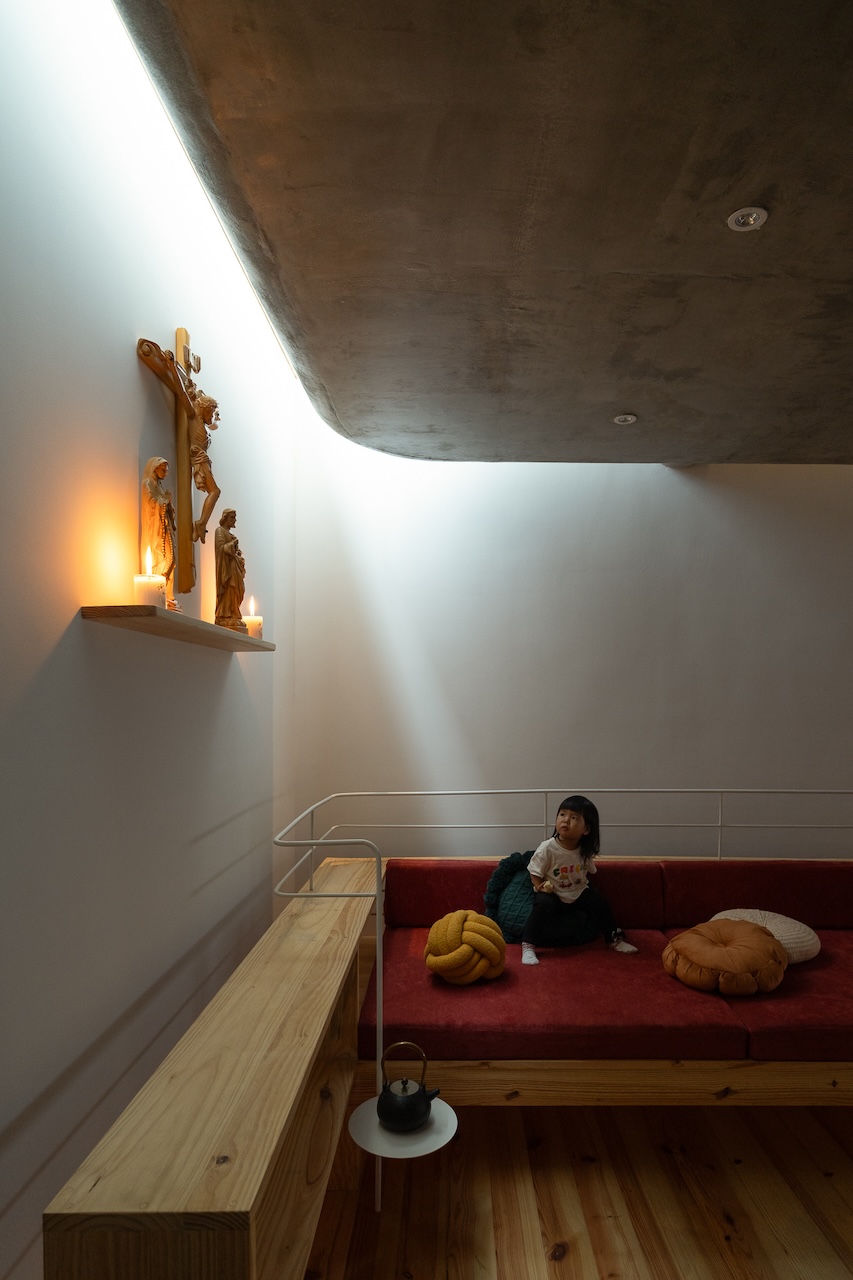 Ranh giới các phòng được thiết lập bằng những khoảng hở tinh tế giữa sàn và lớp vỏ bao che, tạo nên vùng ánh sáng khuếch tán giúp không gian nội thất như được nới rộng và vận động liên tục theo nhịp điệu của bầu trời.
