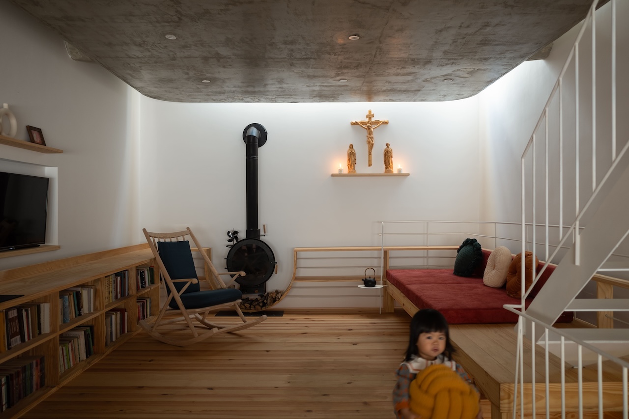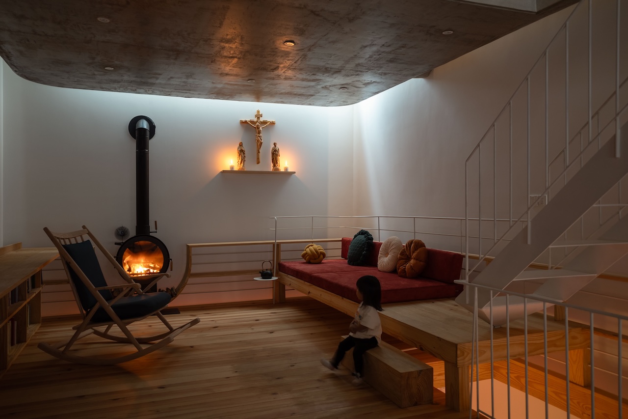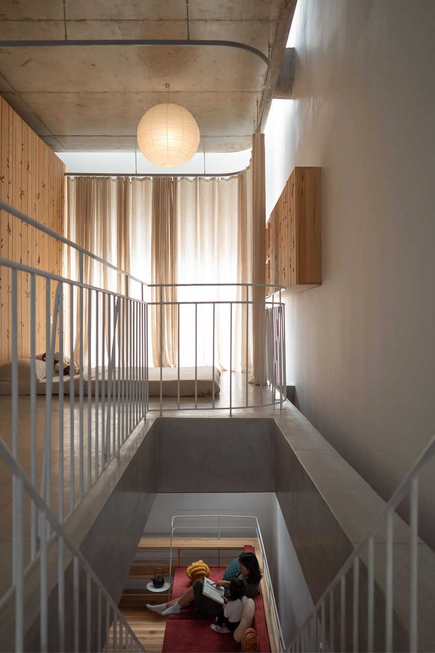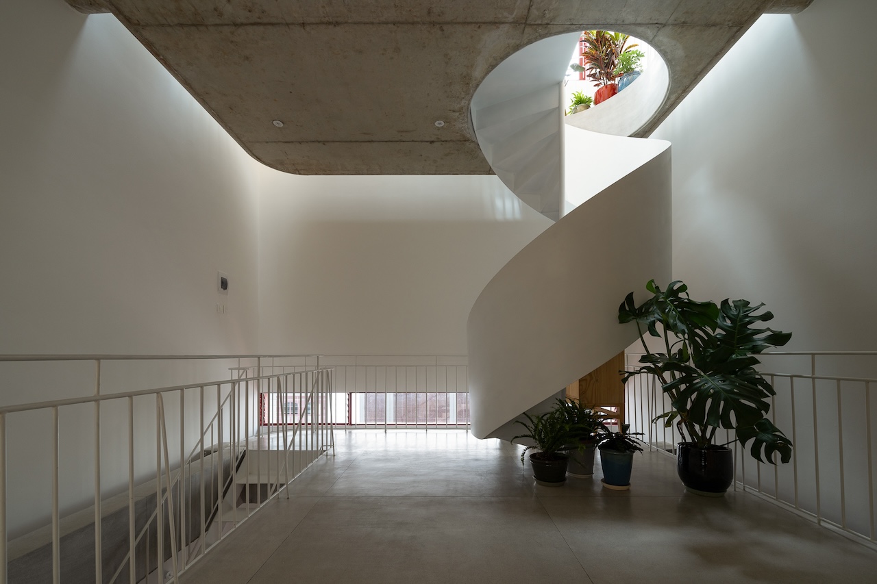 Ranh giới các phòng được thiết lập bằng những khoảng hở tinh tế giữa sàn và lớp vỏ bao che, tạo nên vùng ánh sáng khuếch tán giúp không gian nội thất như được nới rộng và vận động liên tục theo nhịp điệu của bầu trời.